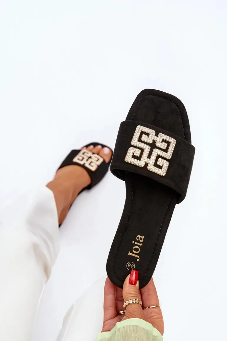 Klapki damskie osadzone na płaskim obcasie zapewniają wygodę noszenia przez cały dzień. Ozdoba z błyszczącymi cyrkoniami umieszczona z przodu dodaje im subtelnego blasku. Ten fason z pewnością podkreśli wyjątkowy charakter Twojej letniej stylizacji. Przy wyborze rozmiaru prosimy sugerować się tabelą rozmiarów.