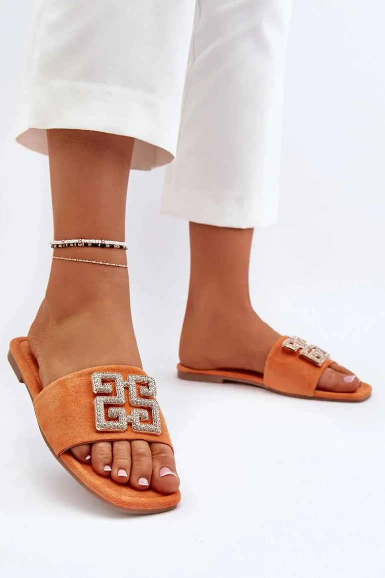 Klapki damskie osadzone na płaskim obcasie zapewniają wygodę noszenia przez cały dzień. Ozdoba z błyszczącymi cyrkoniami umieszczona z przodu dodaje im subtelnego blasku. Ten fason z pewnością podkreśli wyjątkowy charakter Twojej letniej stylizacji. Przy wyborze rozmiaru prosimy sugerować się tabelą rozmiarów.
