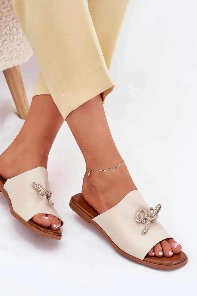 Klapki damskie z eko skóry, osadzone na płaskim obcasie, to elegancka propozycja na ciepłe dni. Model ten wyróżnia się subtelnym ozdobnym wiązaniem, które dodaje im wyjątkowego charakteru. Ich klasyczny fason sprawia, że doskonale komponują się zarówno z sukienkami, jak i spodniami materiałowymi, tworząc stylowy i wygodny look. Przy wyborze rozmiaru prosimy sugerować się tabelą rozmiarów.