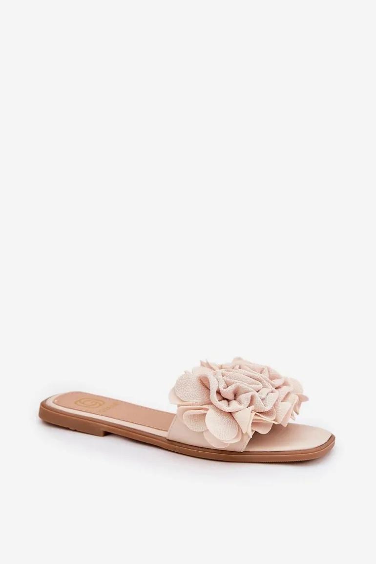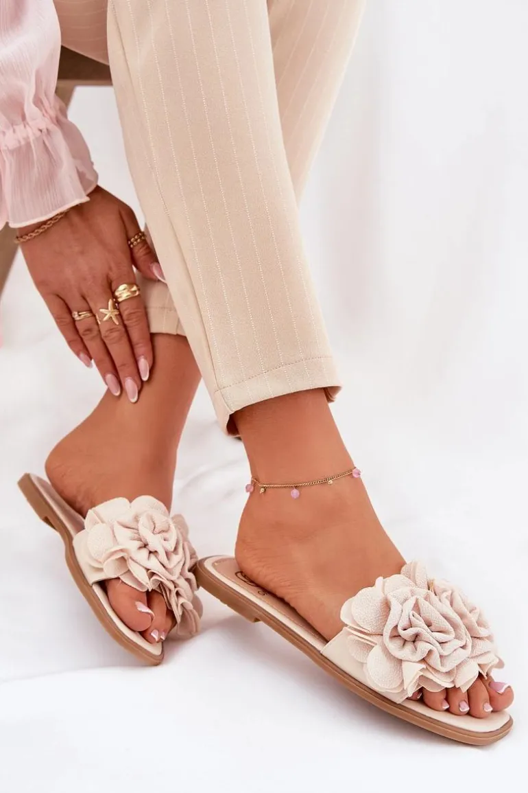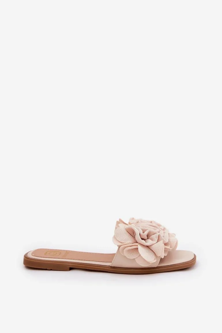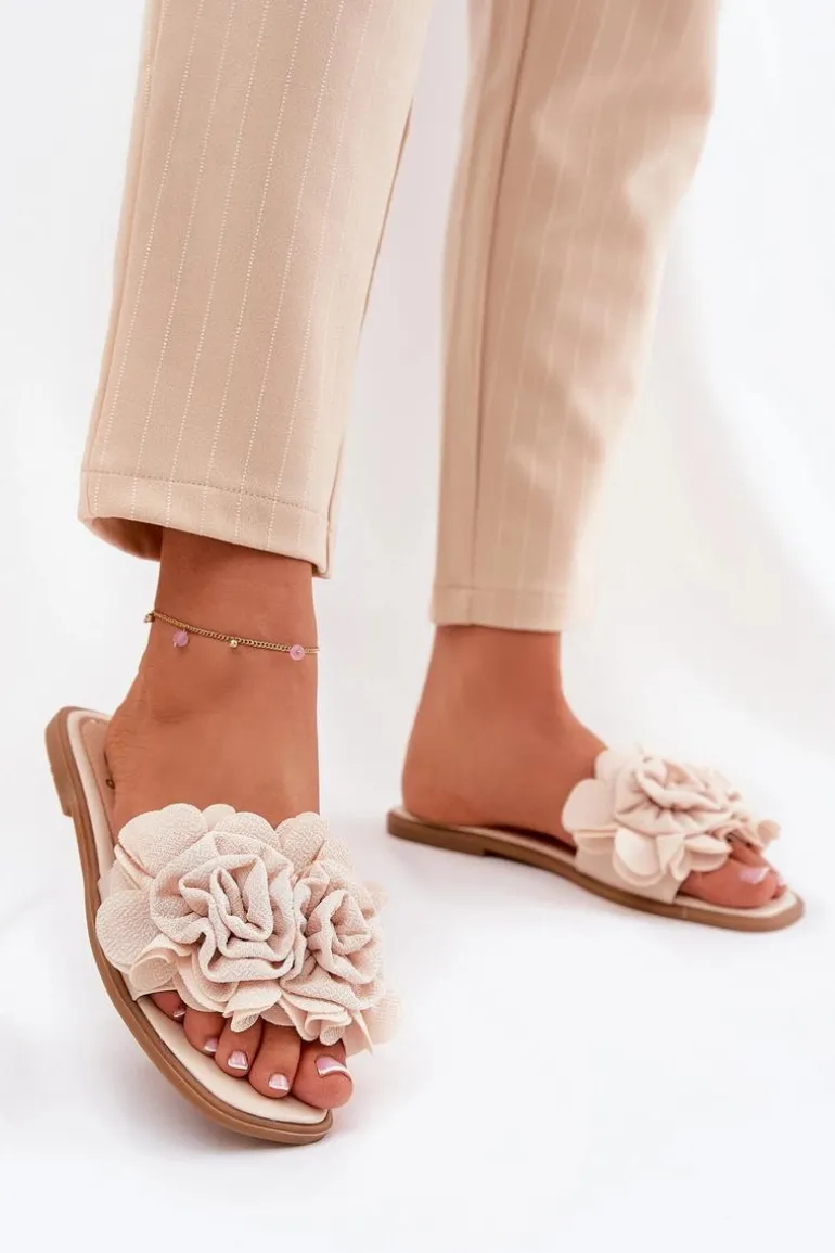 Klapki Damskie Na Płaskim Obcasie Z Ozdobnymi Kwiatami Beżowe Misorsse
