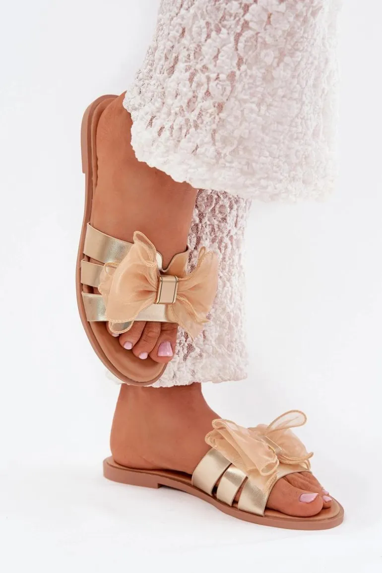 Klapki damskie z eko skóry, osadzone na płaskim obcasie, to doskonała propozycja na co dzień. Wyróżniają się tiulową kokardą. Idealne do letnich stylizacji, doskonale komponują się z sukienkami, spódnicami czy spodniami, łącząc prostotę z subtelnym urokiem. Przy wyborze rozmiaru prosimy sugerować się tabelą rozmiarów.