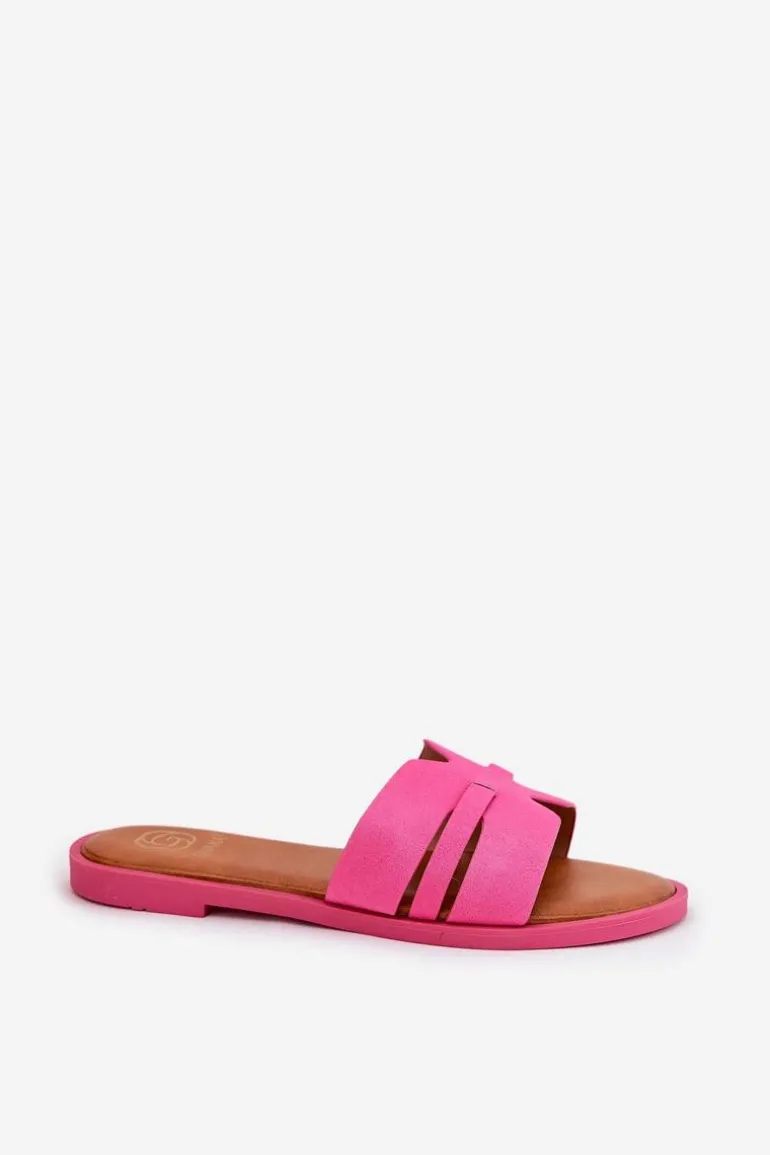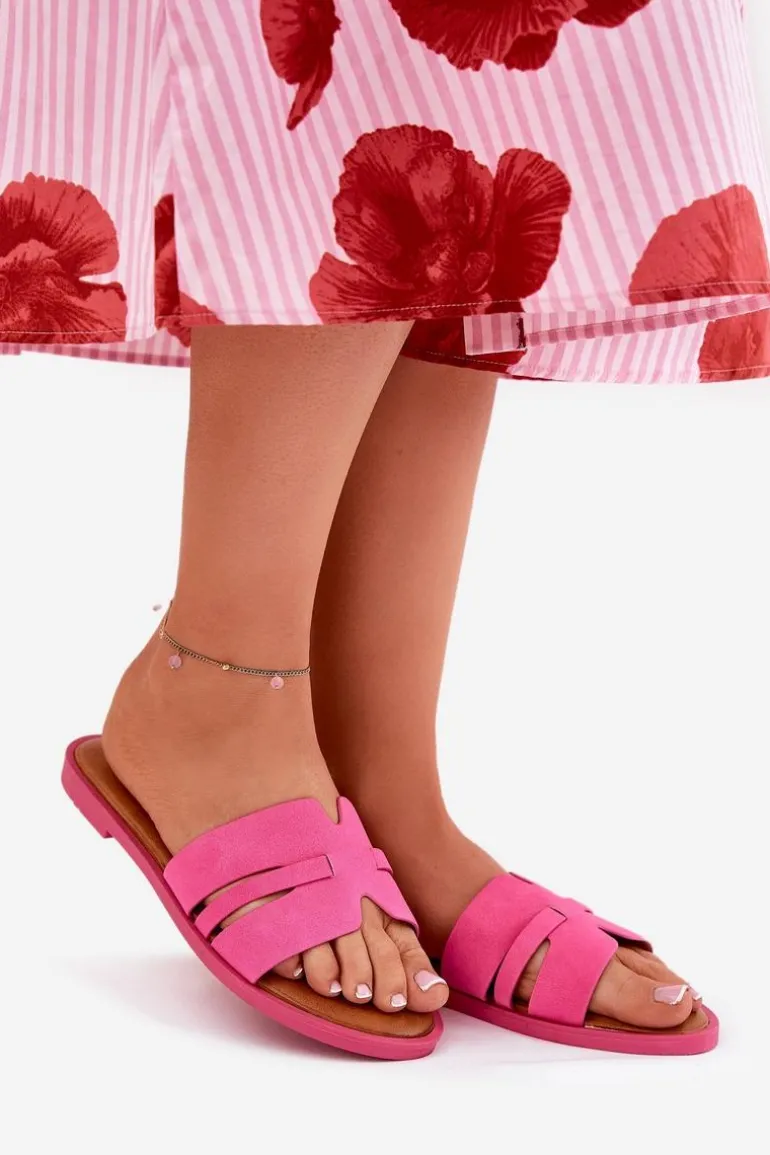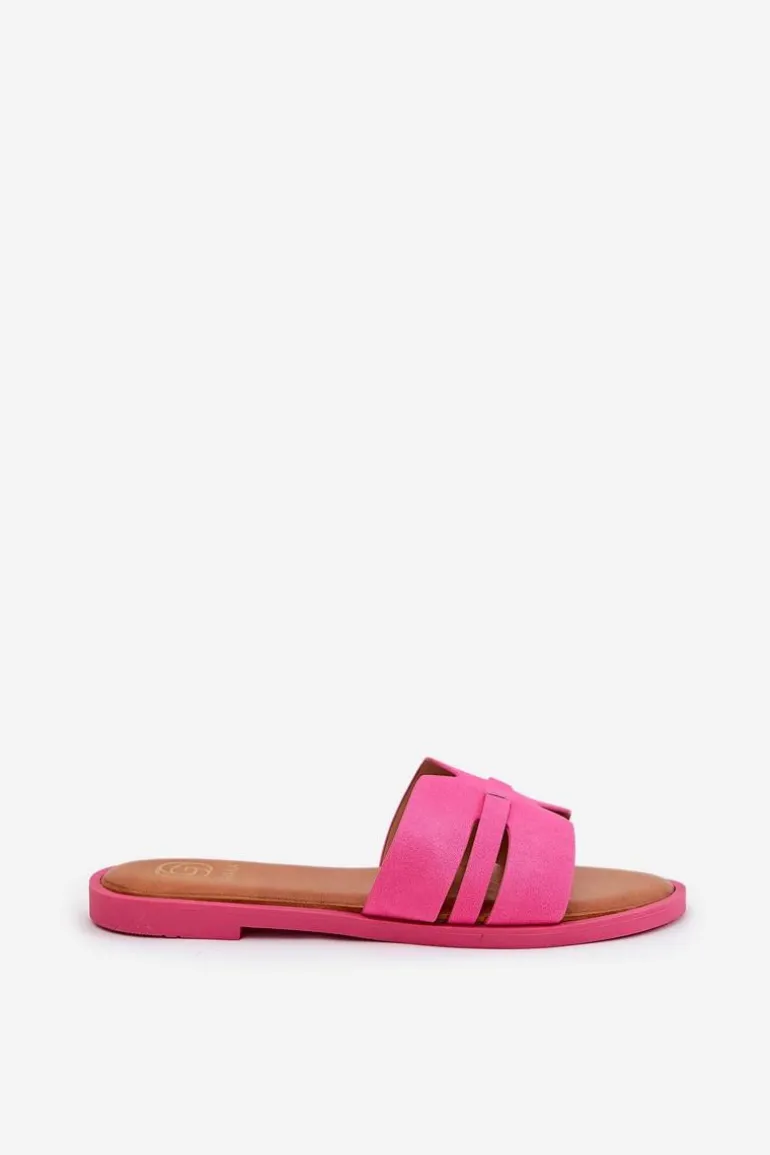 Klapki Damskie Na Płaskim Obcasie Z Wycięciami Eko Zamszowe Fuksja Teterre