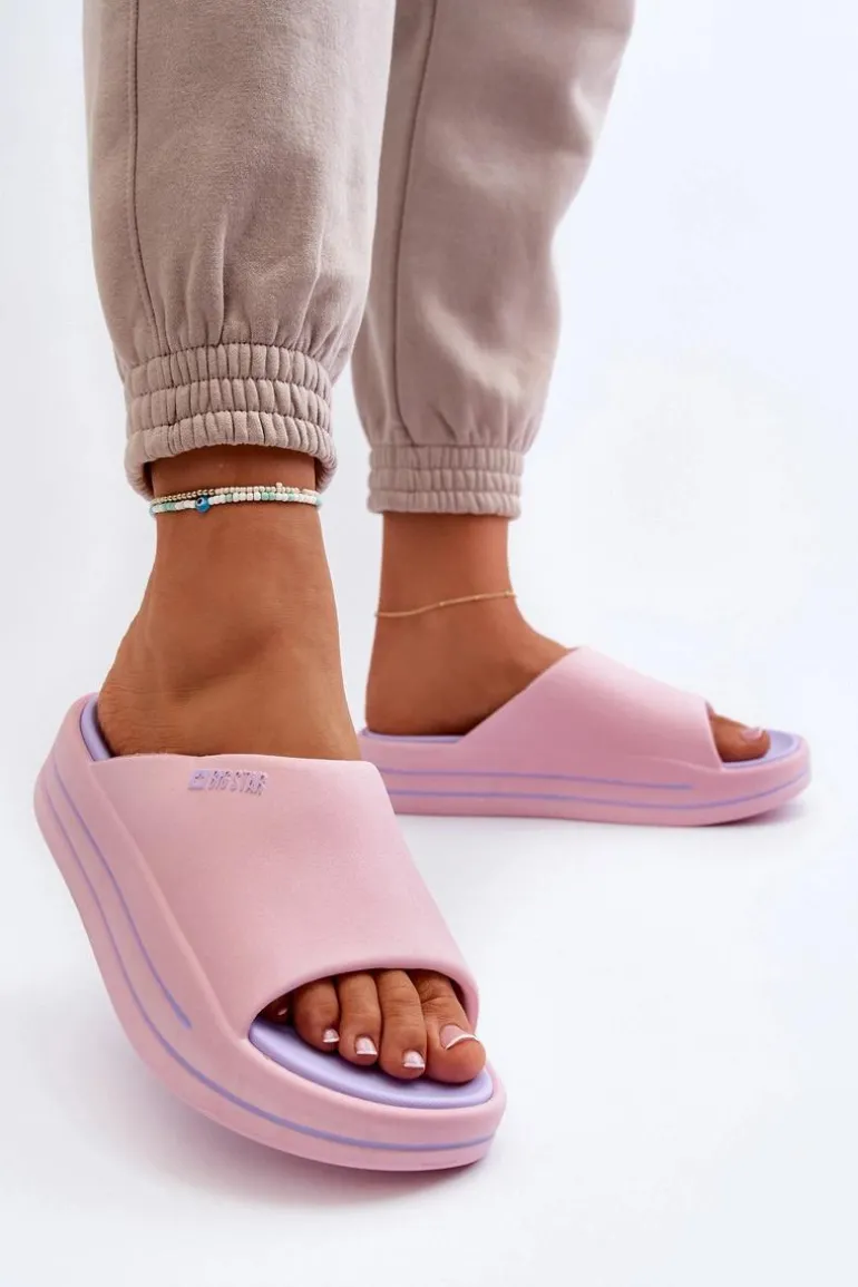 Damskie klapki od marki Big Star wykonane z miękkiej i przyjemnej w dotyku pianki. Wysoka podeszwa dodaje kilka centymetrów wzrostu, co sprawia, że są nie tylko wygodne, ale także idealnie na letnie dni. Doskonałe zarówno na plażę, jak i na codzienne wyjścia, pasują do różnorodnych casualowych stylizacji, podkreślając swobodny charakter letnich dni. Przy wyborze rozmiaru prosimy sugerować się tabelą rozmiarów.