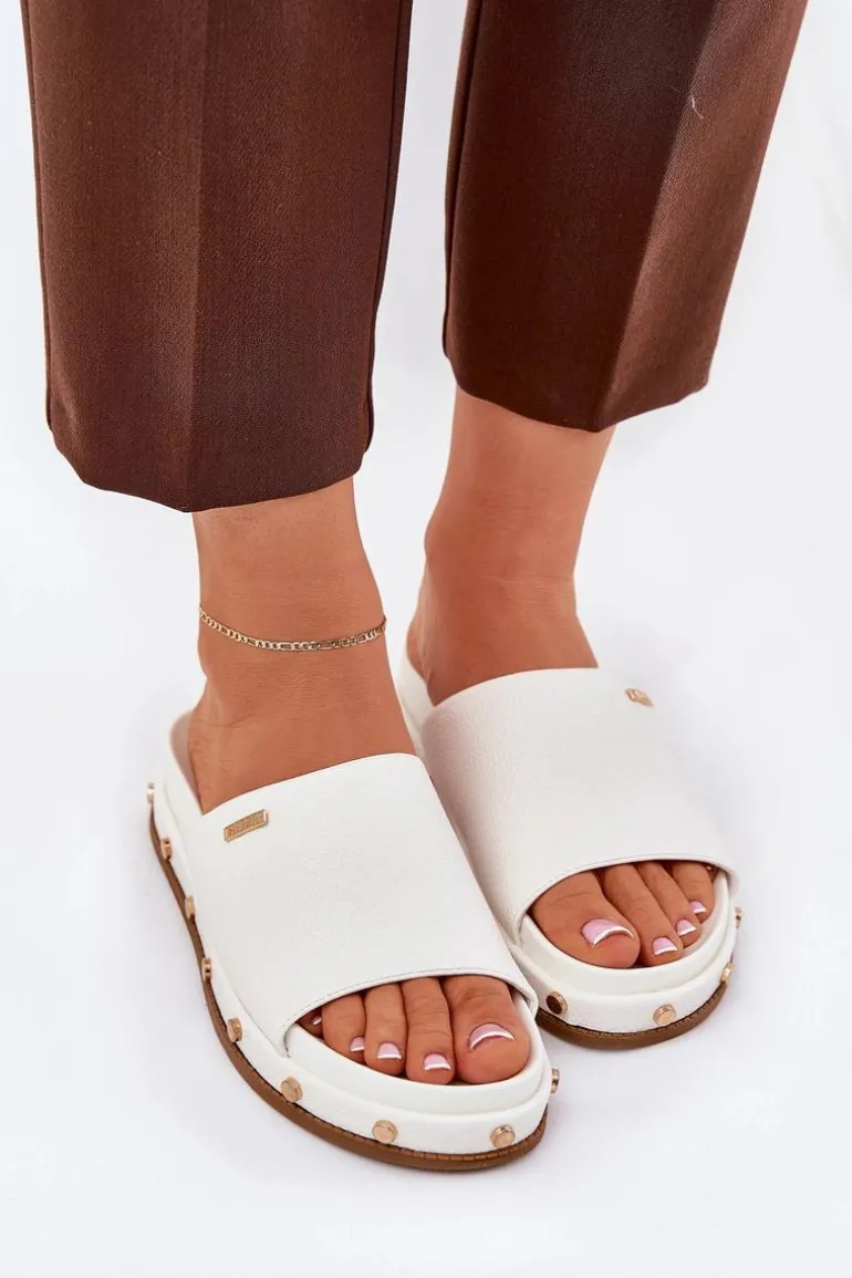 Klapki damskie marki Big Star to stylowe obuwie, które doskonale komponuje się z letnią garderobą. Wykonane z eko skóry, osadzone na platformie, która dodaje im charakteru i komfortu. Ozdobione ćwiekami, które nadają nowoczesnego, odważnego wyglądu. Te klapki doskonale pasują do letnich stylizacji, łącząc elegancję z modowym akcentem, idealne na co dzień. Przy wyborze rozmiaru prosimy sugerować się tabelą rozmiarów.