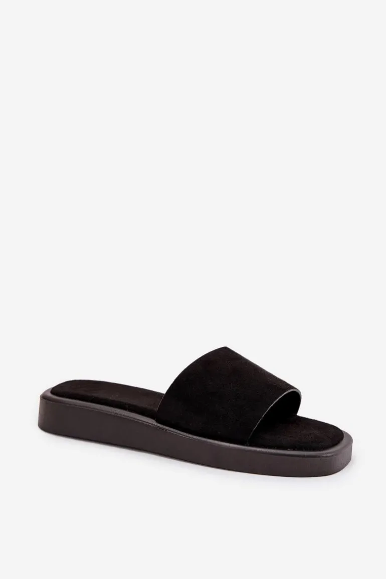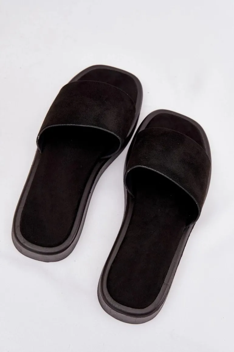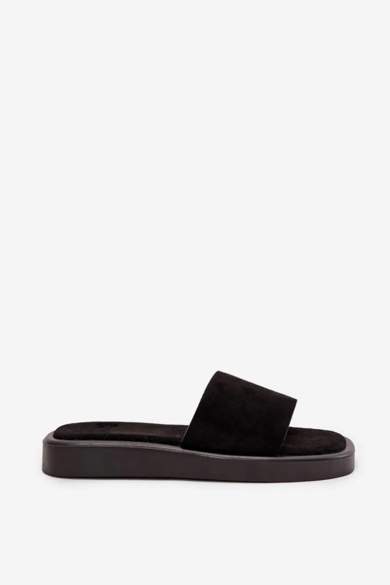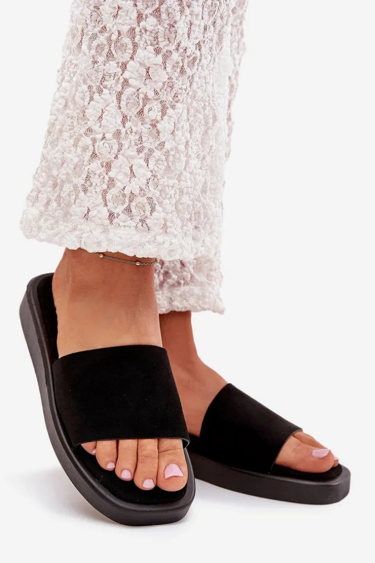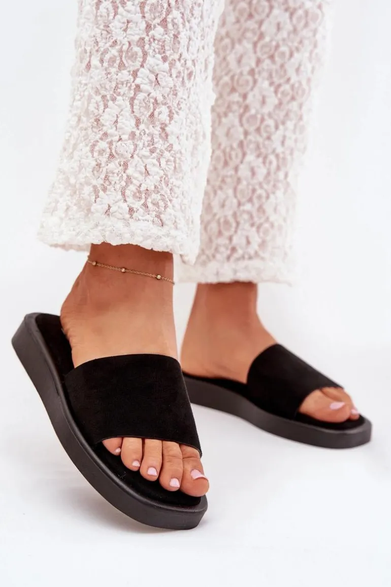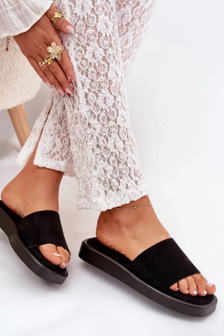 Klapki Damskie Na Platformie Z Eko Zamszu Czarne Jorina