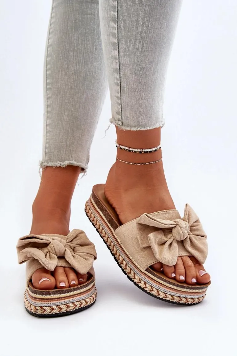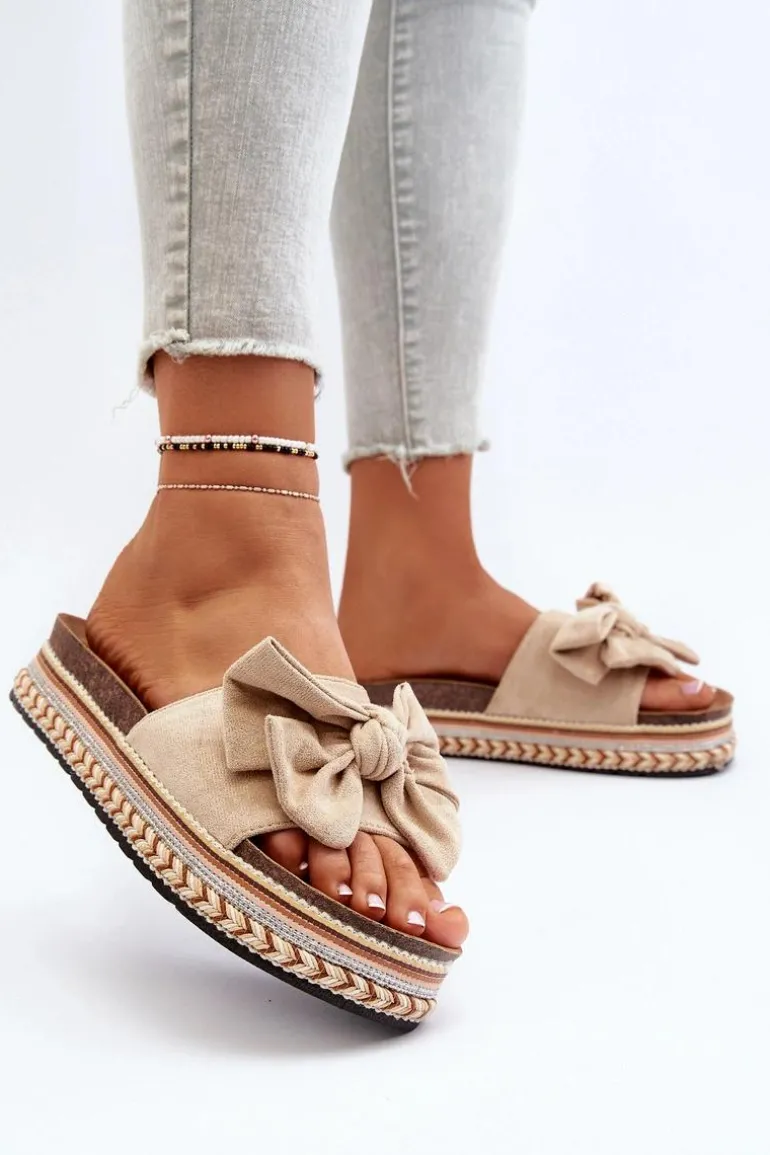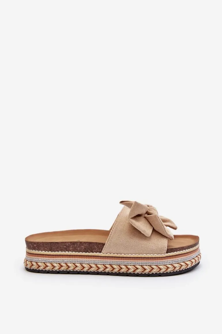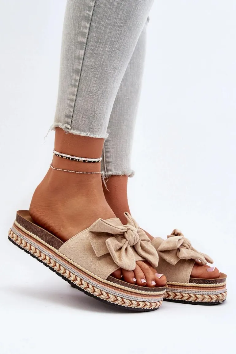 Klapki Damskie Na Platformie Z Kokardą Beżowe Evatria