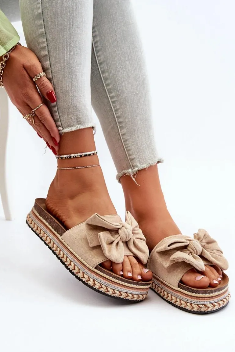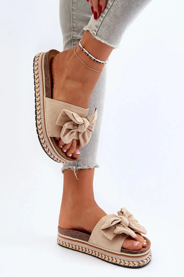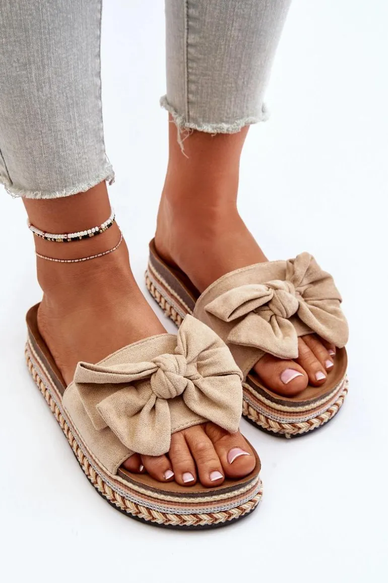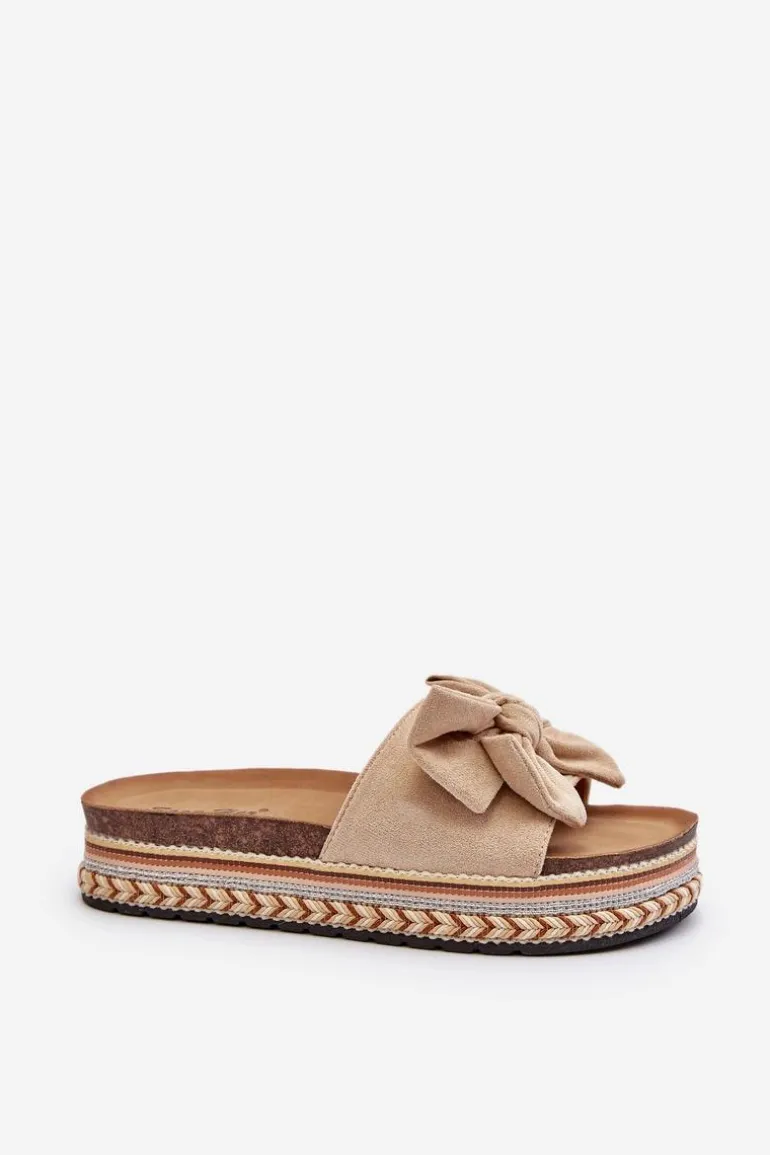 Klapki Damskie Na Platformie Z Kokardą Beżowe Evatria