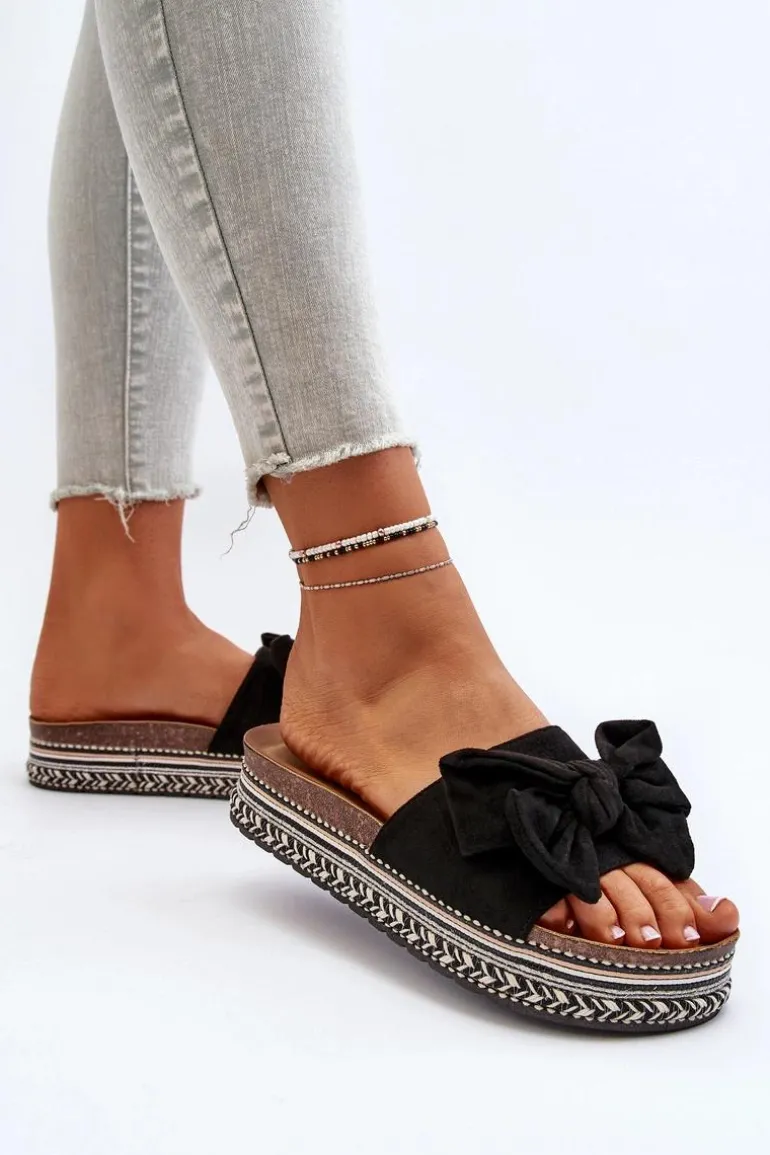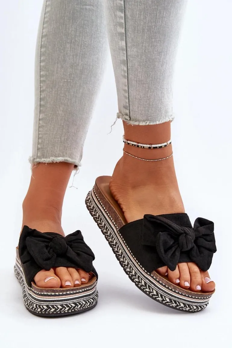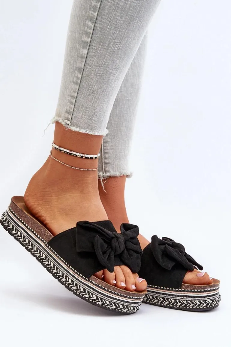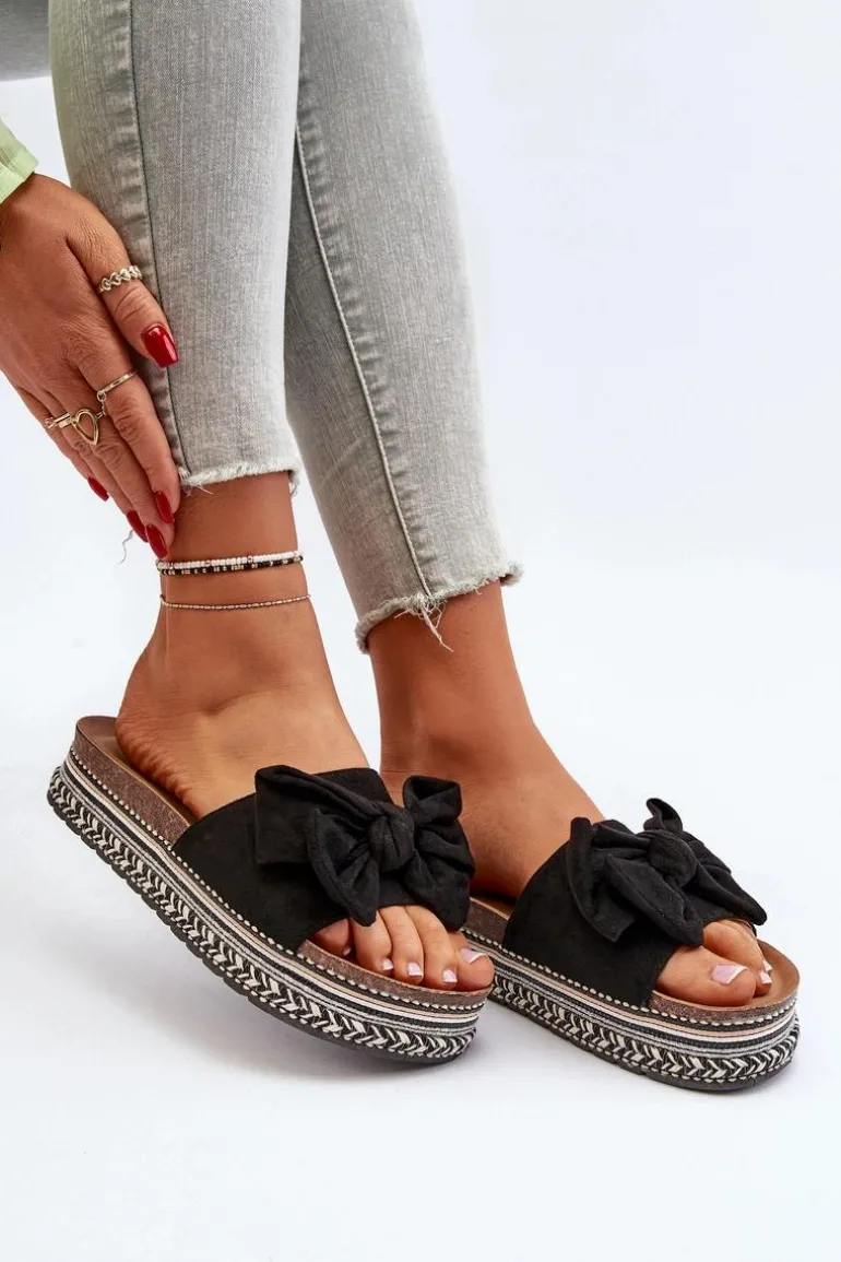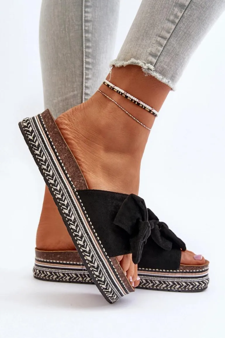Klapki damskie na zdobionej platformie są nie tylko modne, ale także wyjątkowo wygodne. Wykonane z przyjemnego w dotyku eko zamszu, zapewniają one nie tylko atrakcyjny wygląd, ale także komfort noszenia. To ponadczasowy model, który doskonale podkreśli każdą letnią stylizację. Model ten posiada profilowaną wkładkę. Nie zapomnij zajrzeć także do naszej pełnej kolekcji damskich klapek! Przy wyborze rozmiaru prosimy sugerować się tabelą rozmiarów.