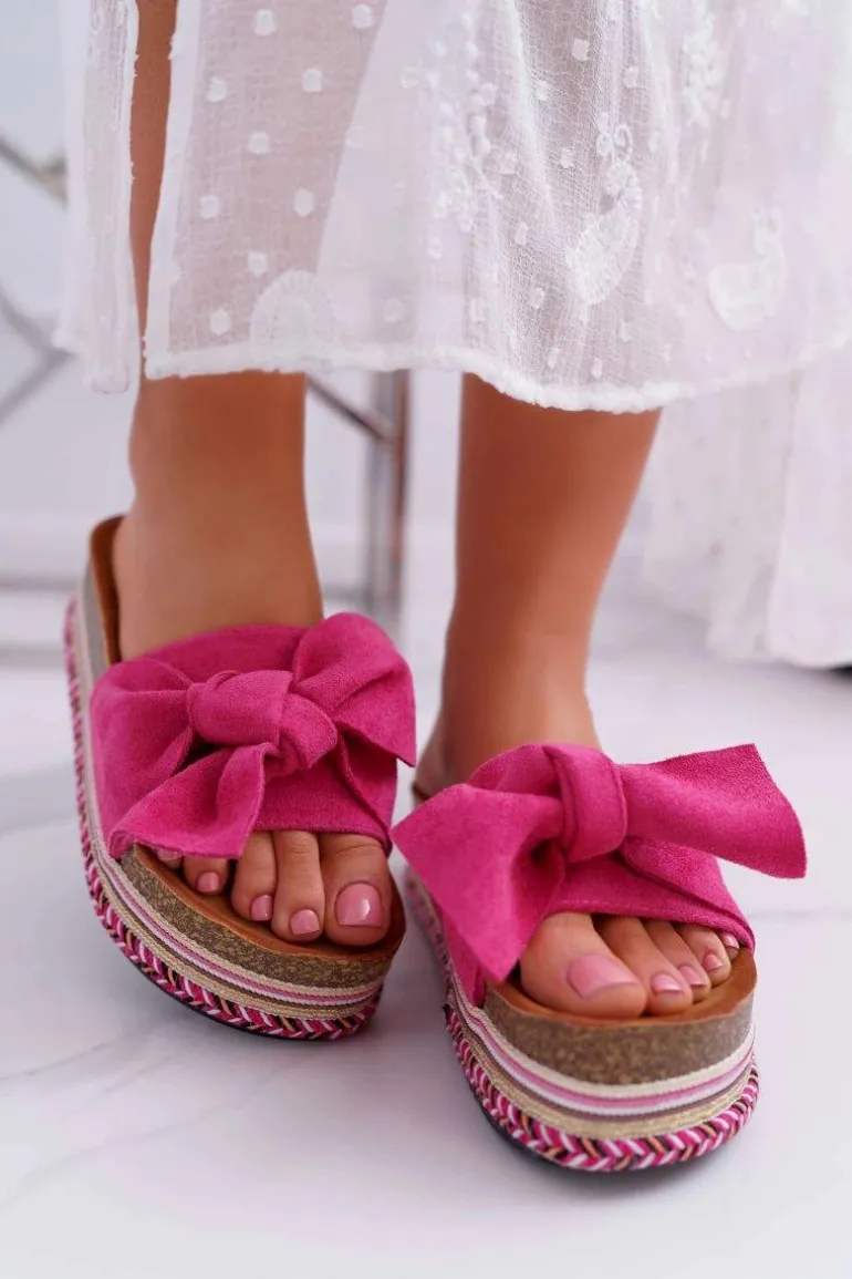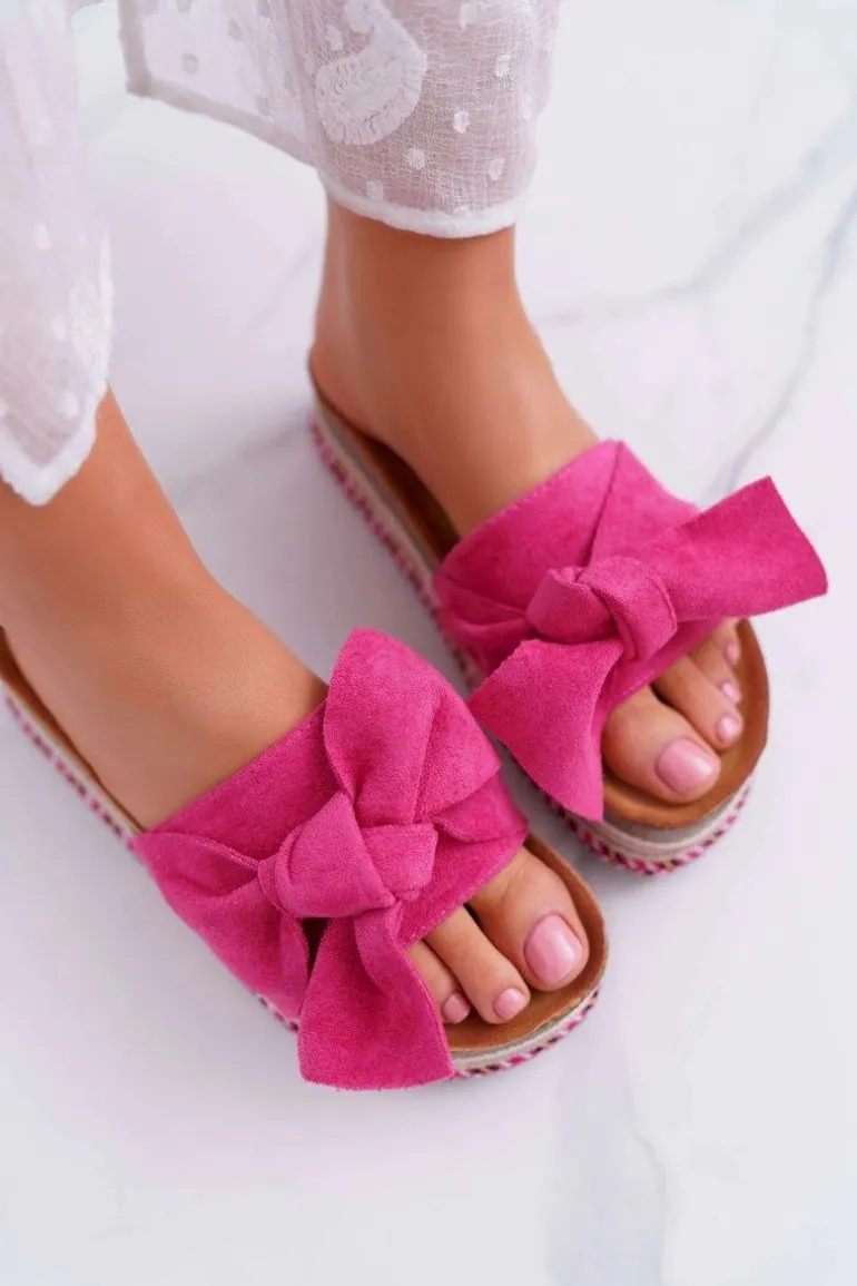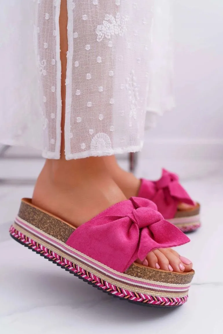 Klapki Damskie Na Platformie Z Kokardą Fuksja Chantal