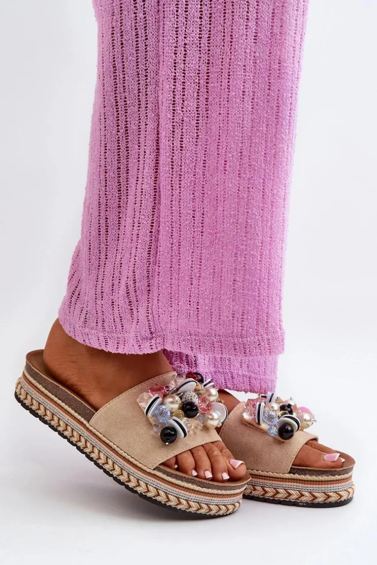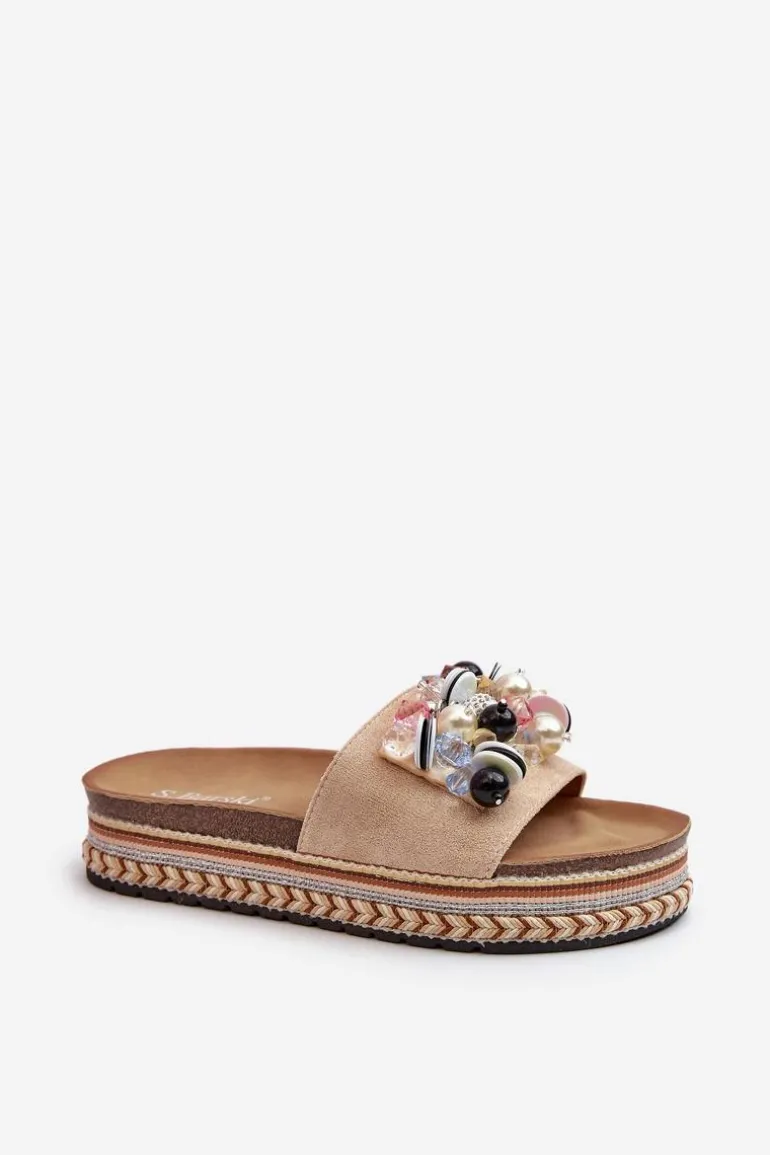 Stylowe klapki damskie od marki S.Barski. Osadzone na zdobionej platformie. Na pasku liczne ozdoby. Model ten posiada profilowaną wkładkę, która zapewni wygodę na każdym kroku. Idealne do letnich sukienek i spodni! Przy wyborze rozmiaru prosimy sugerować się tabelą rozmiarów.