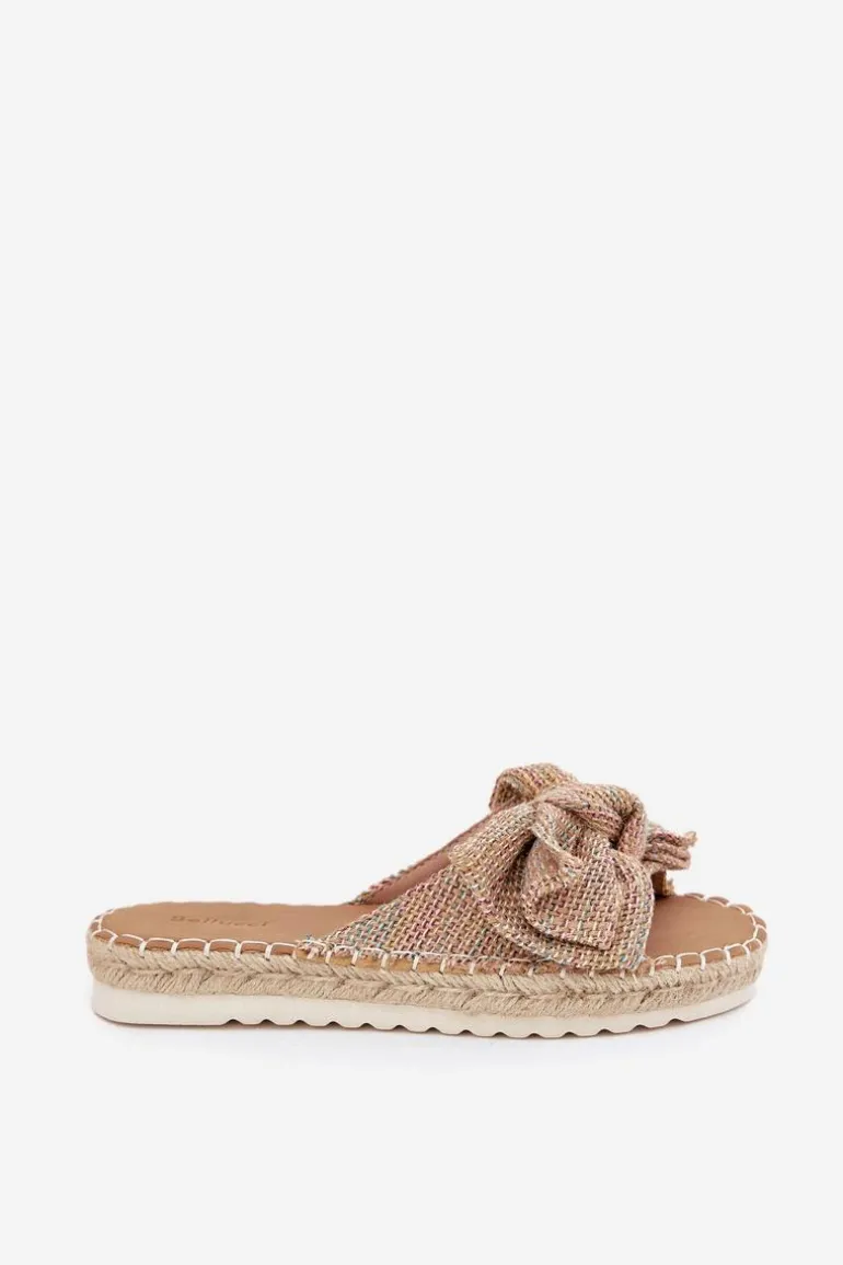 Klapki damskie wykonane z tworzywa. Osadzone na platformie z plecionką to stylowa i wygodna propozycja na ciepłe dni. Z przodu znajduje się subtelna kokardka, która dodaje im uroku. Lekkie i komfortowe, doskonale pasują do sukienek, spódnic oraz spodni. Przy wyborze rozmiaru rosimy sugerować się tabelą rozmiarów.