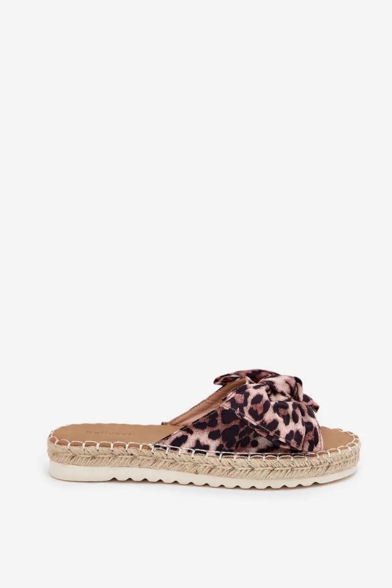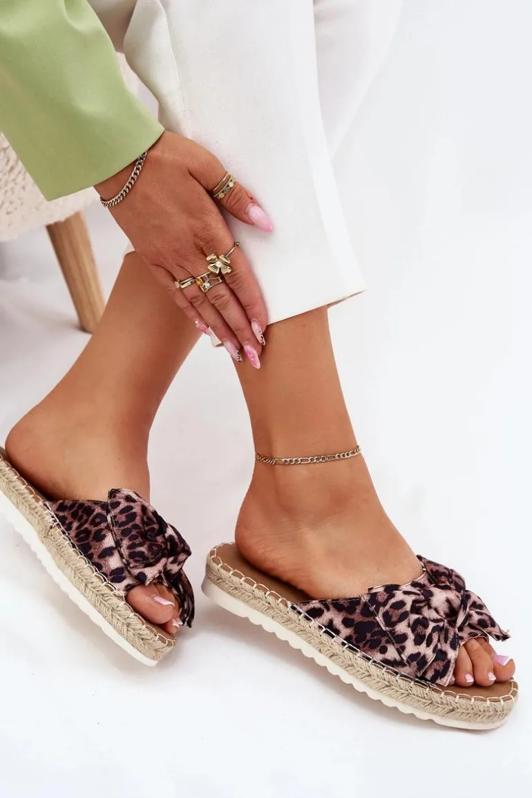 Klapki damskie wykonane z materiału tekstylnego. Osadzone na platformie z plecionką to stylowa i wygodna propozycja na ciepłe dni. Z przodu znajduje się subtelna kokardka, która dodaje im uroku. Lekkie i komfortowe, doskonale pasują do sukienek, spódnic oraz spodni. Przy wyborze rozmiaru rosimy sugerować się tabelą rozmiarów.