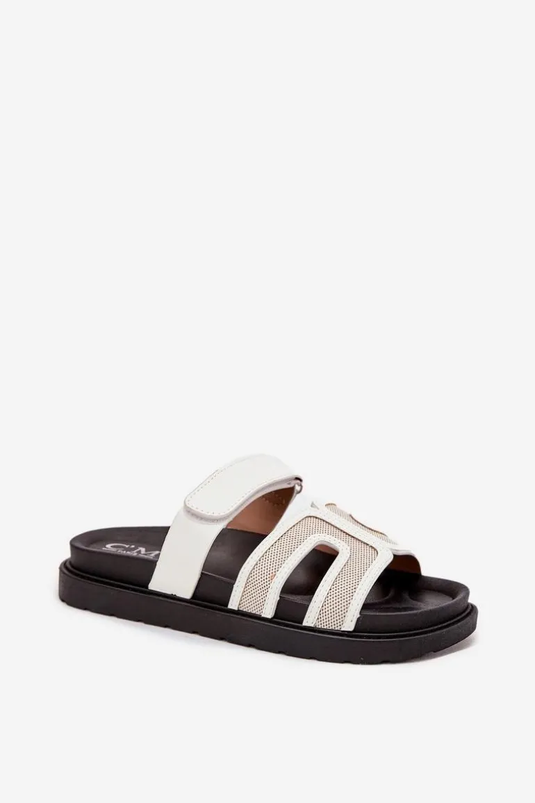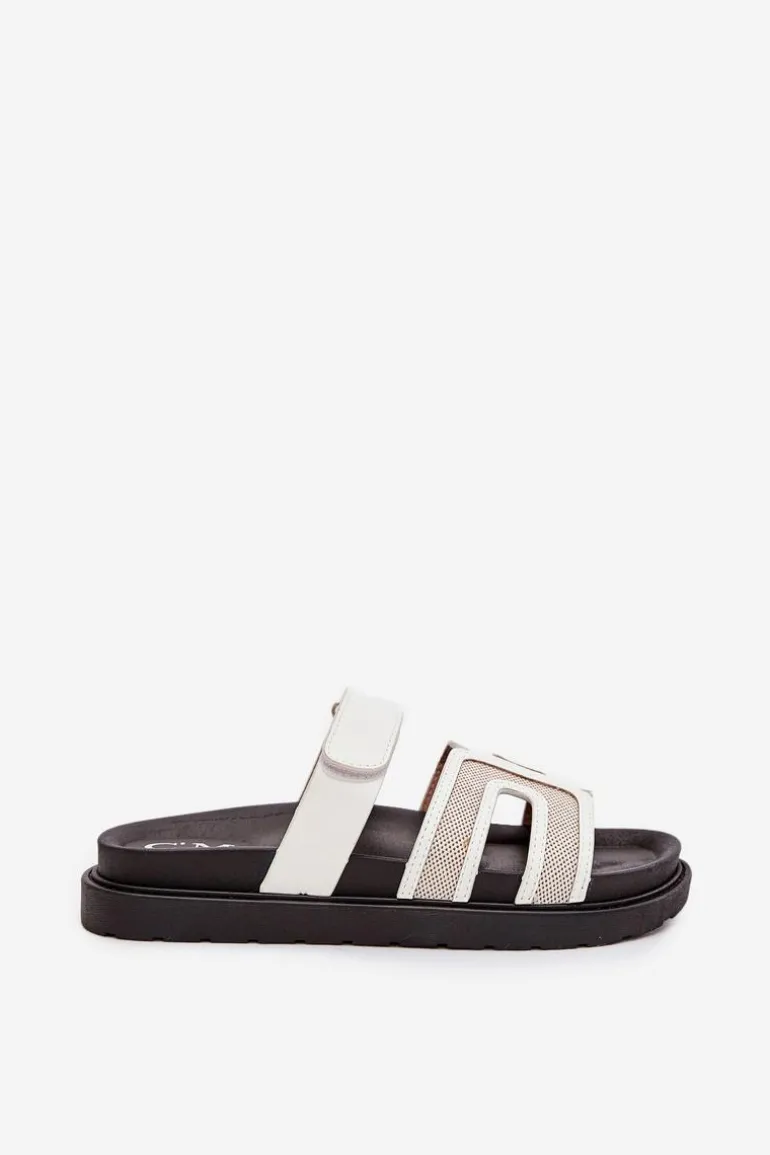 Klapki damskie wykonane z połączenia eko skóry i materiału tekstylnego. Osadzone na platformie. Pasek z rzepem umożliwia łatwe dopasowanie do stopy, gwarantując komfort przez cały dzień. Doskonałe na letnie dni, świetnie komponują się z casualowymi stylizacjami. Przy wyborze rozmiaru prosimy sugerować się tabelą rozmiarów.