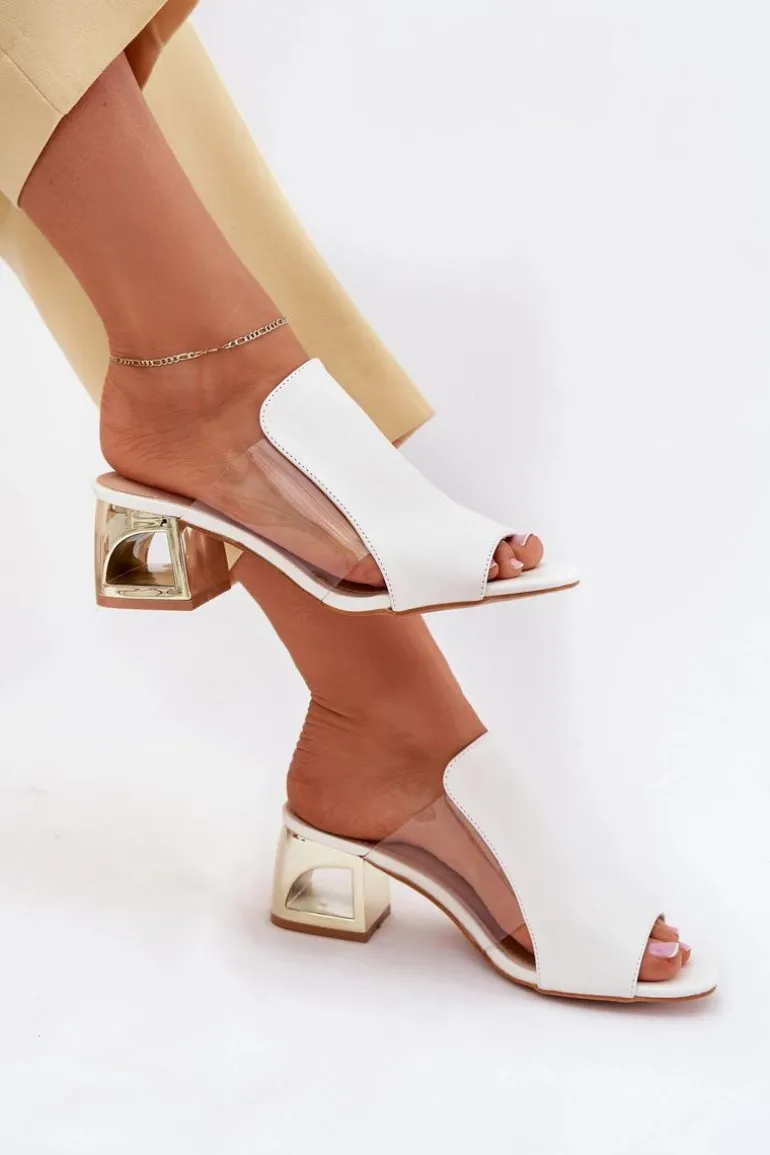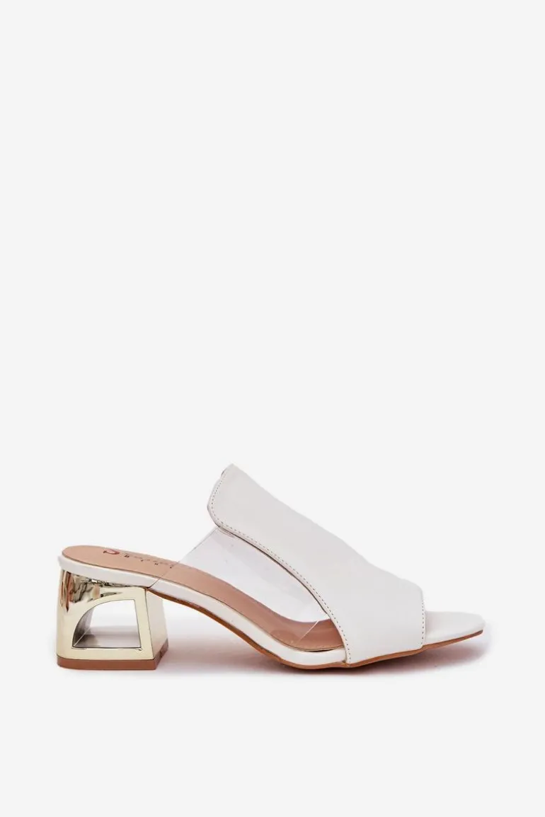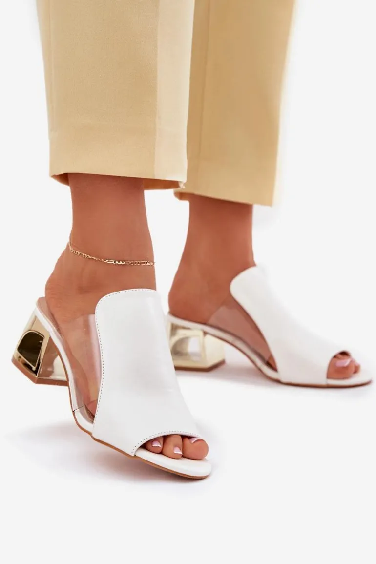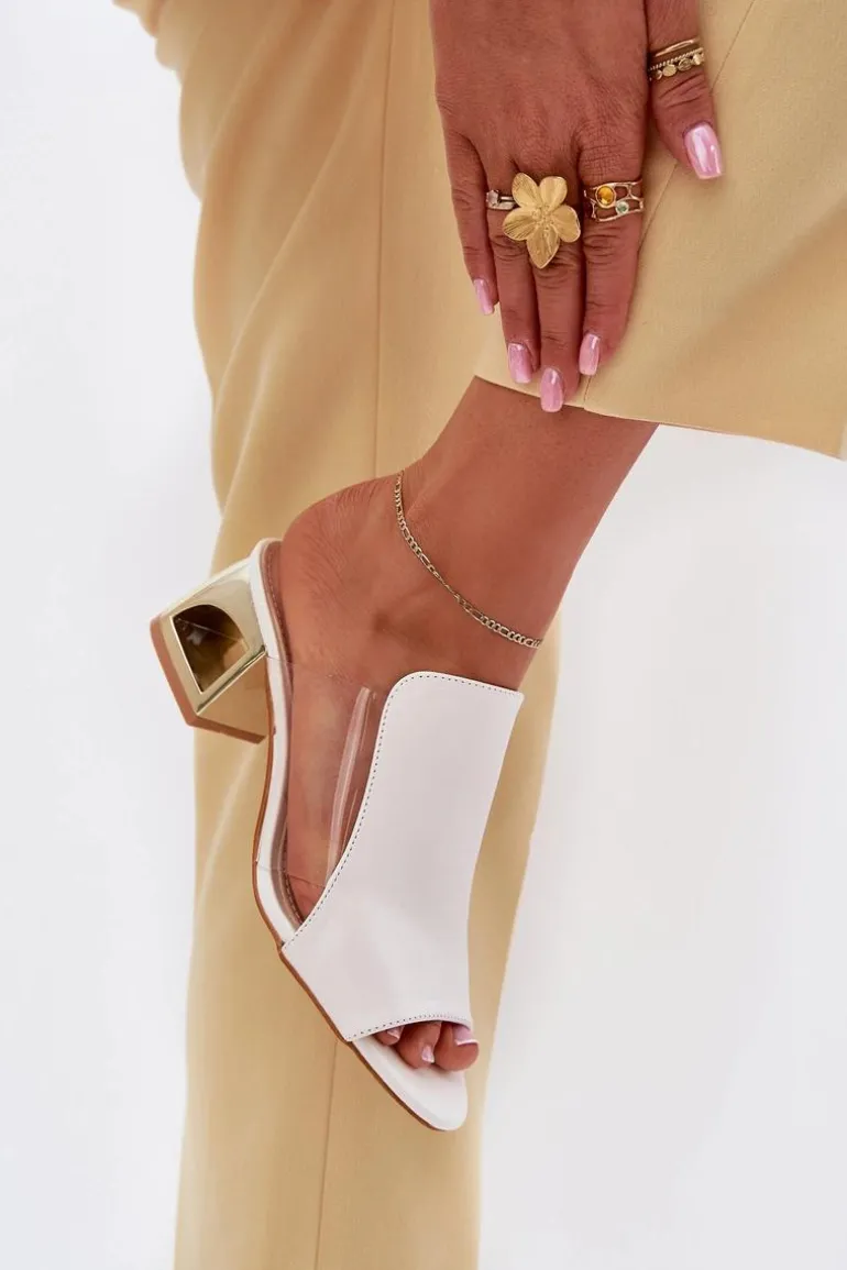 Klapki damskie z eko skóry, osadzone na złotym słupkowym obcasie, to elegancka propozycja na cieplejsze dni. Połączenie klasycznego materiału z nowoczesnym akcentem złotego obcasa sprawia, że idealnie pasują do sukienek oraz spodni materiałowych, dodając stylu i szyku każdej stylizacji. Komfort i modny wygląd w jednym! Przy wyborze rozmiaru prosimy kierować się tabelą rozmiarów.