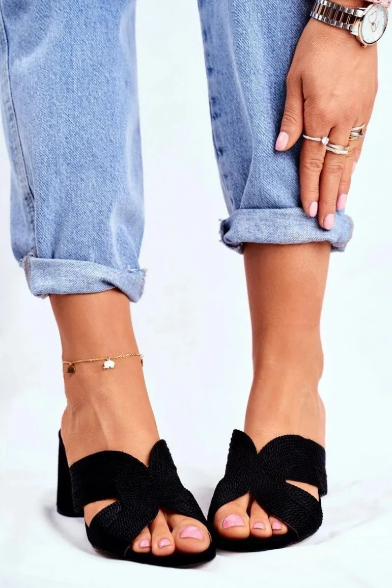 Klapki Damskie Na Słupku Wsuwane Czarne Guest
