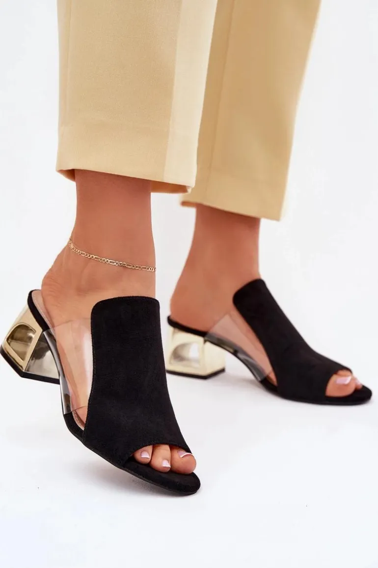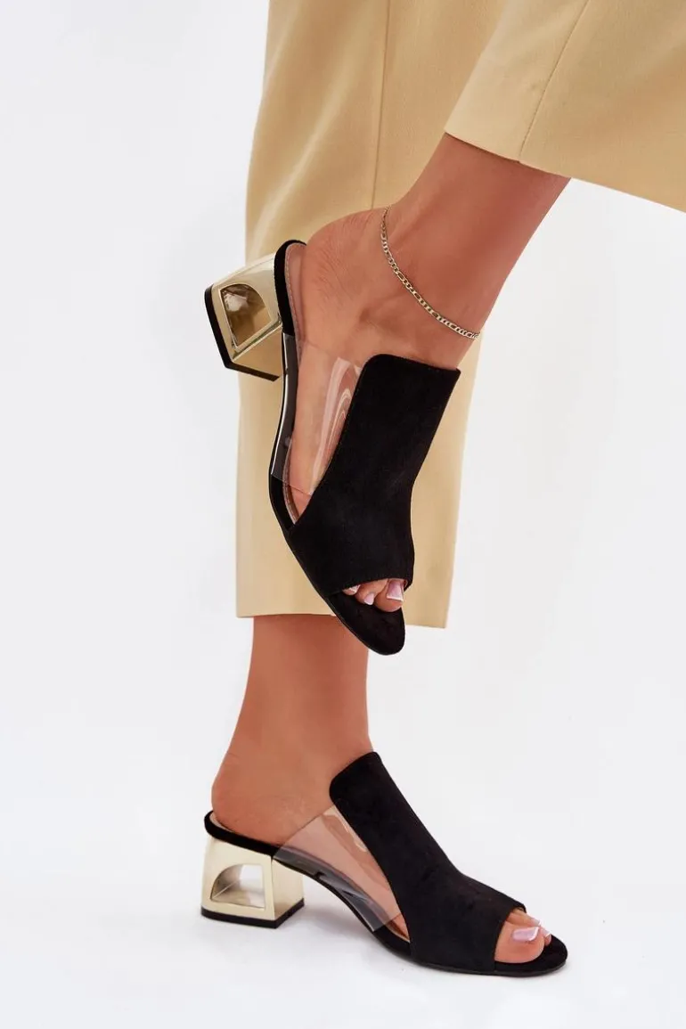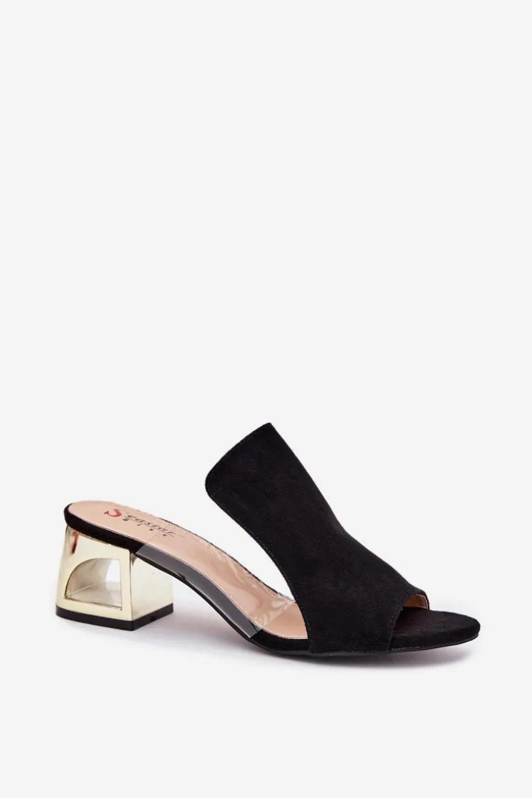 Klapki Damskie Na Złotym Słupku Czarne Tessira