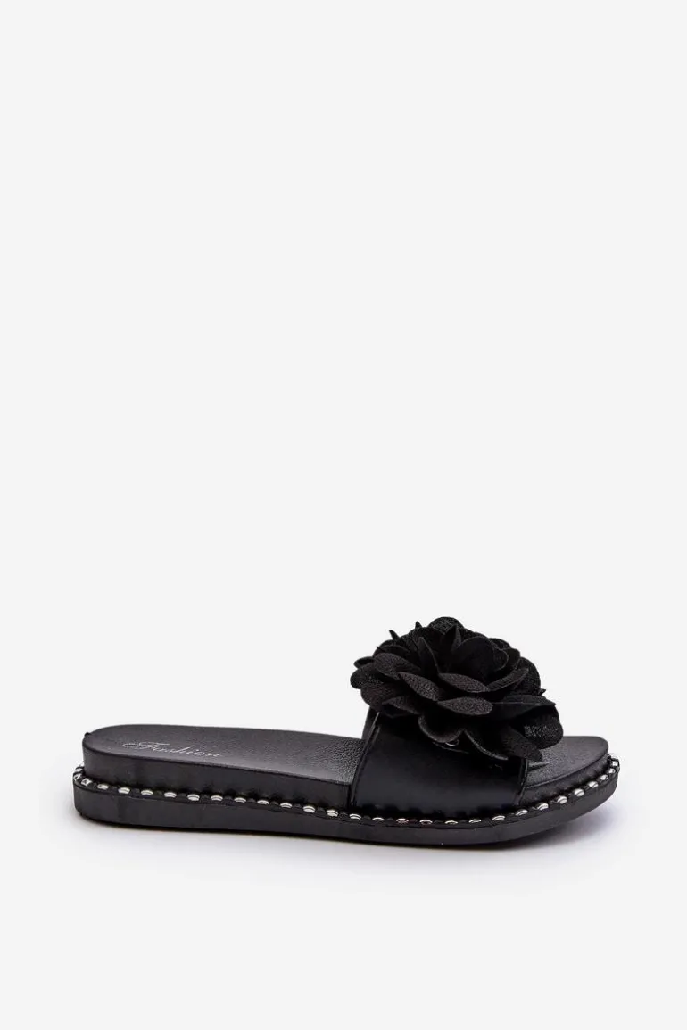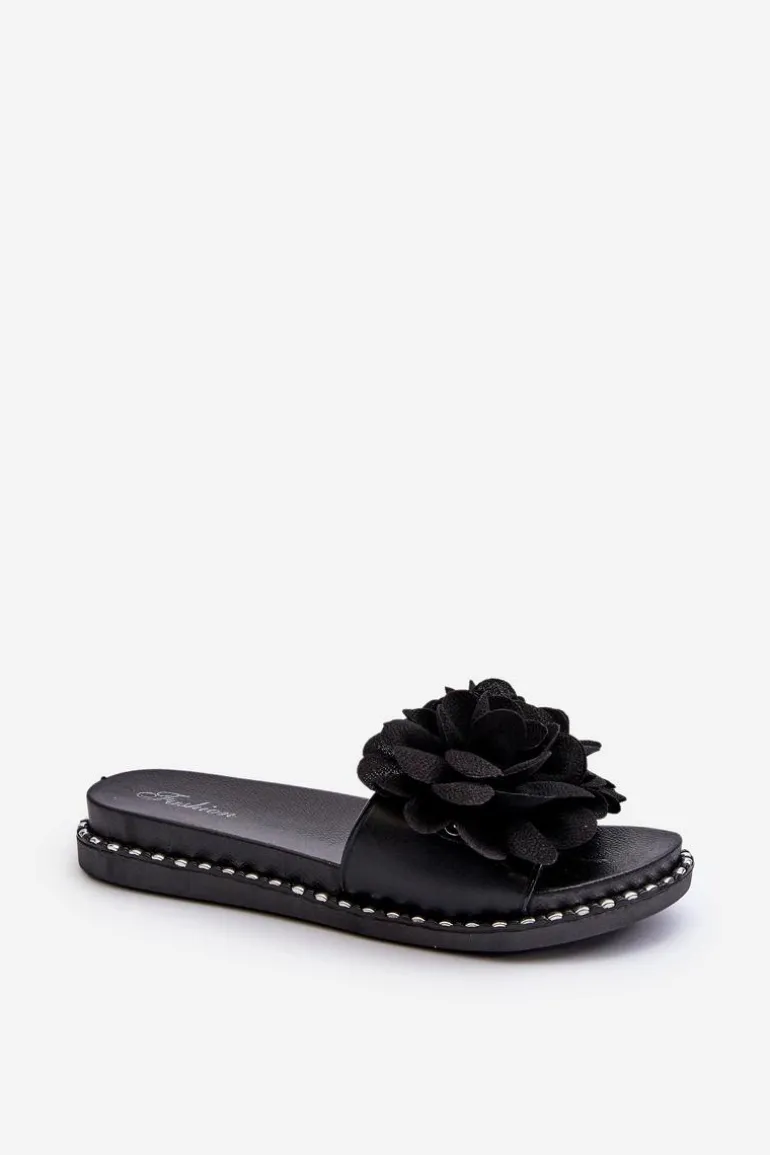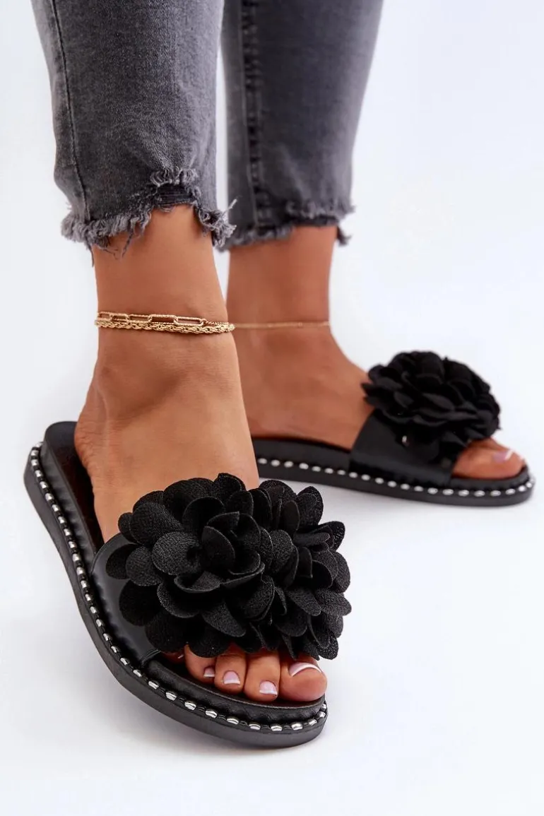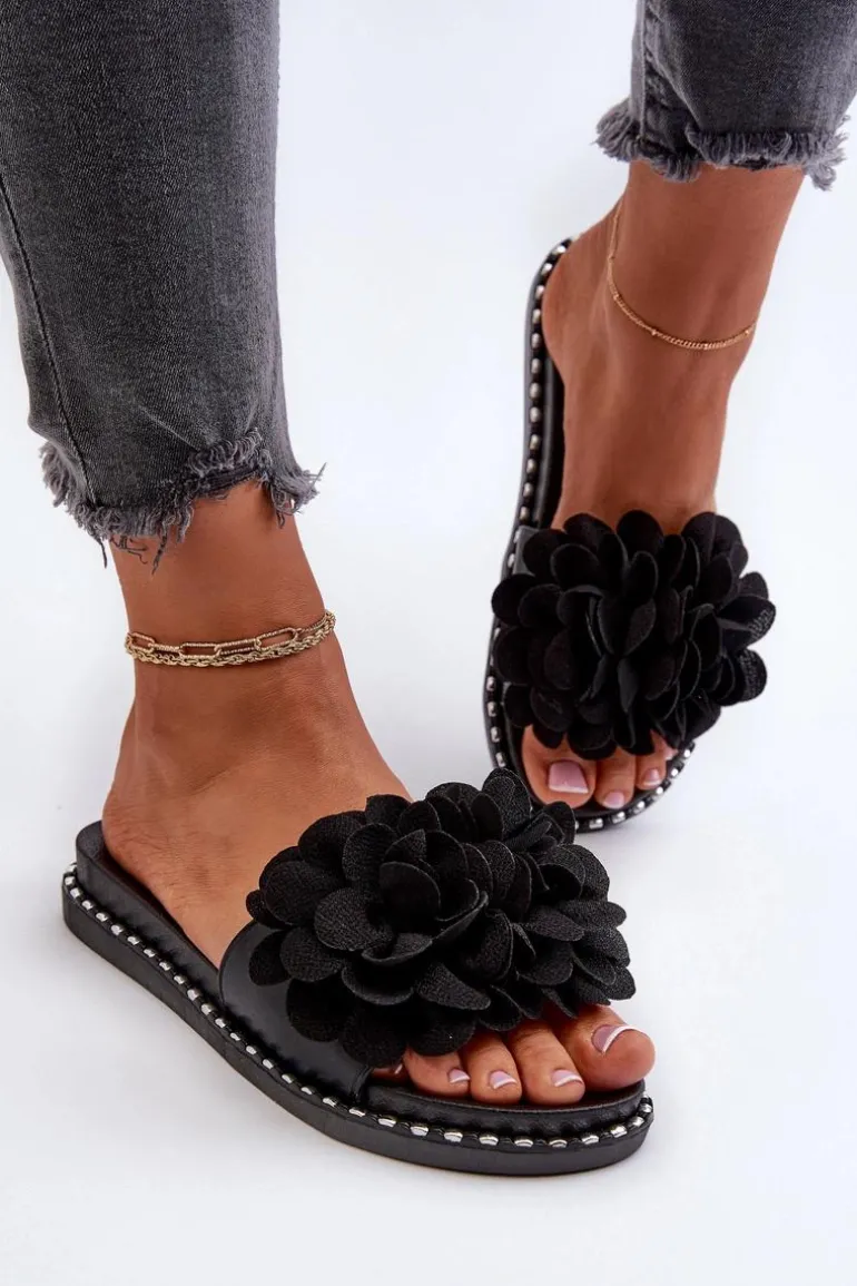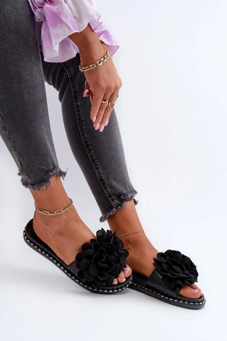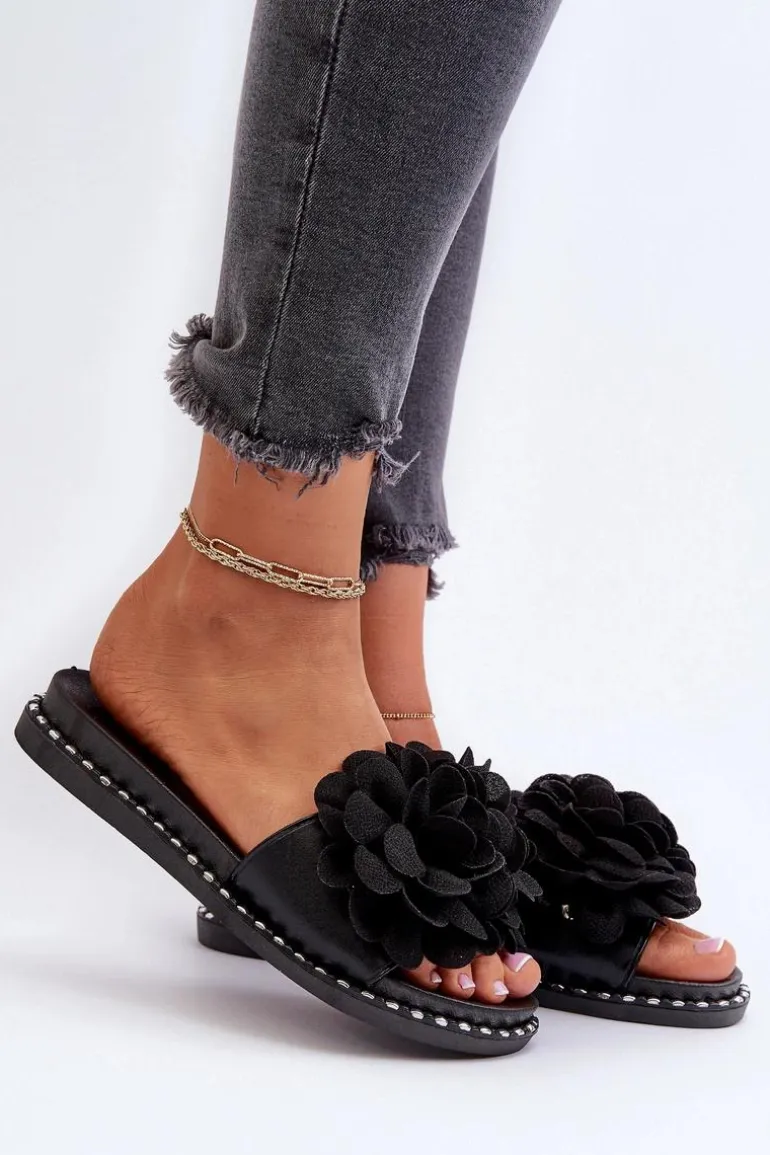 Klapki Damskie Ozdobione Kwiatami Czarne Cellanen