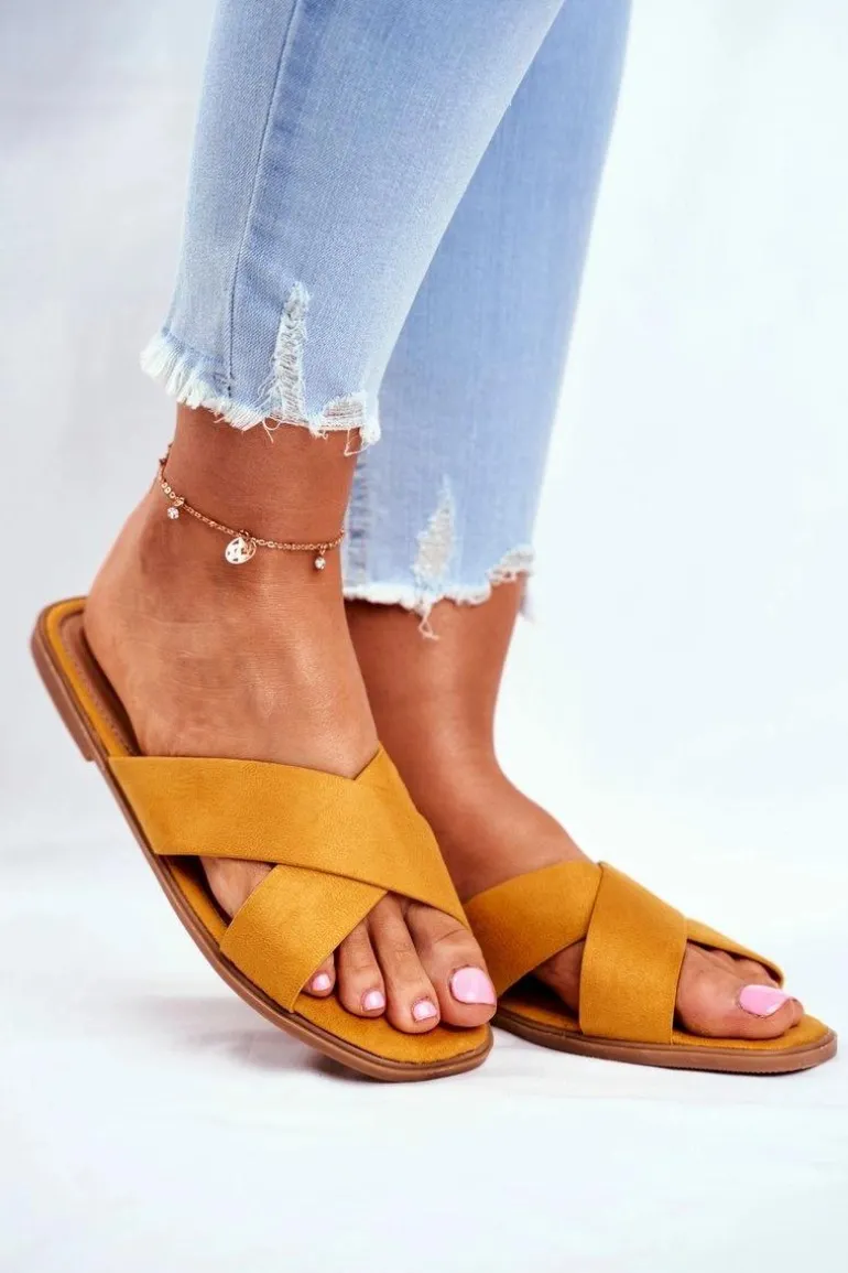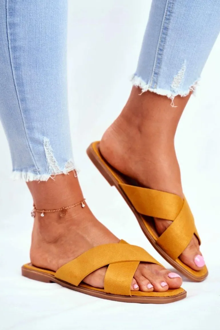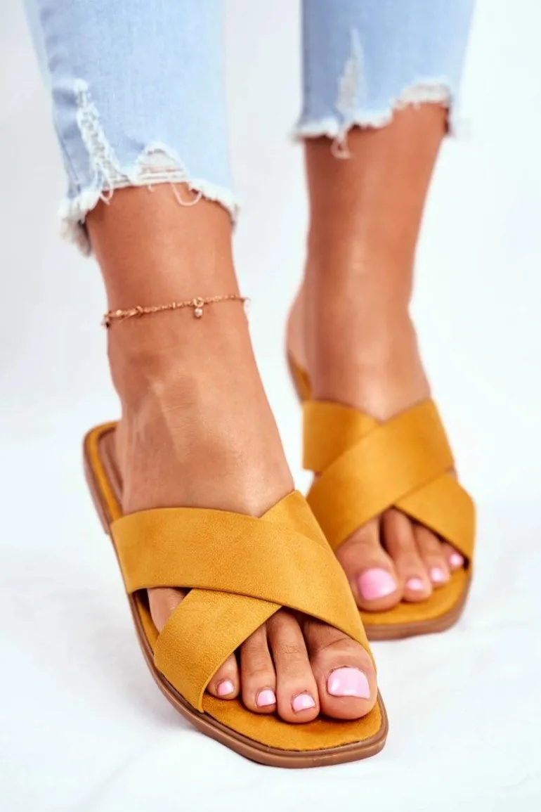 Klapki Damskie Paski na Krzyż Żółte Philippines