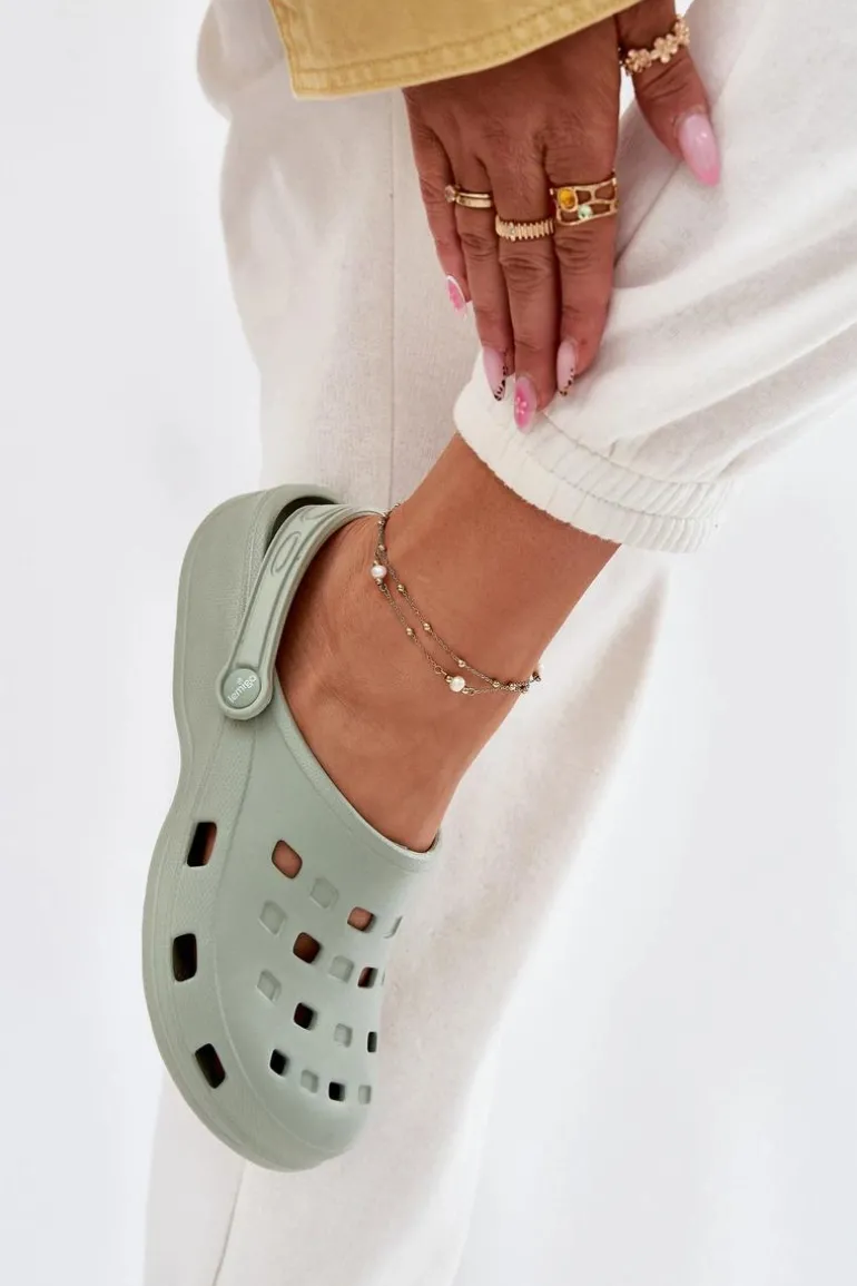 Klapki damskie od marki Lemigo, wykonane z wysokiej jakości tworzywa EVA, to połączenie lekkości i elastyczności, które gwarantuje komfort na każdym kroku. Pasek na piętę zapewnia stabilność, a otwory w klapkach umożliwiają doskonałą cyrkulację powietrza, co podnosi wygodę noszenia. Są łatwe do założenia i proste w utrzymaniu czystości, co czyni je idealnym wyborem na co dzień. Przy wyborze rozmiaru prosimy kierować się tabelą rozmiarów.