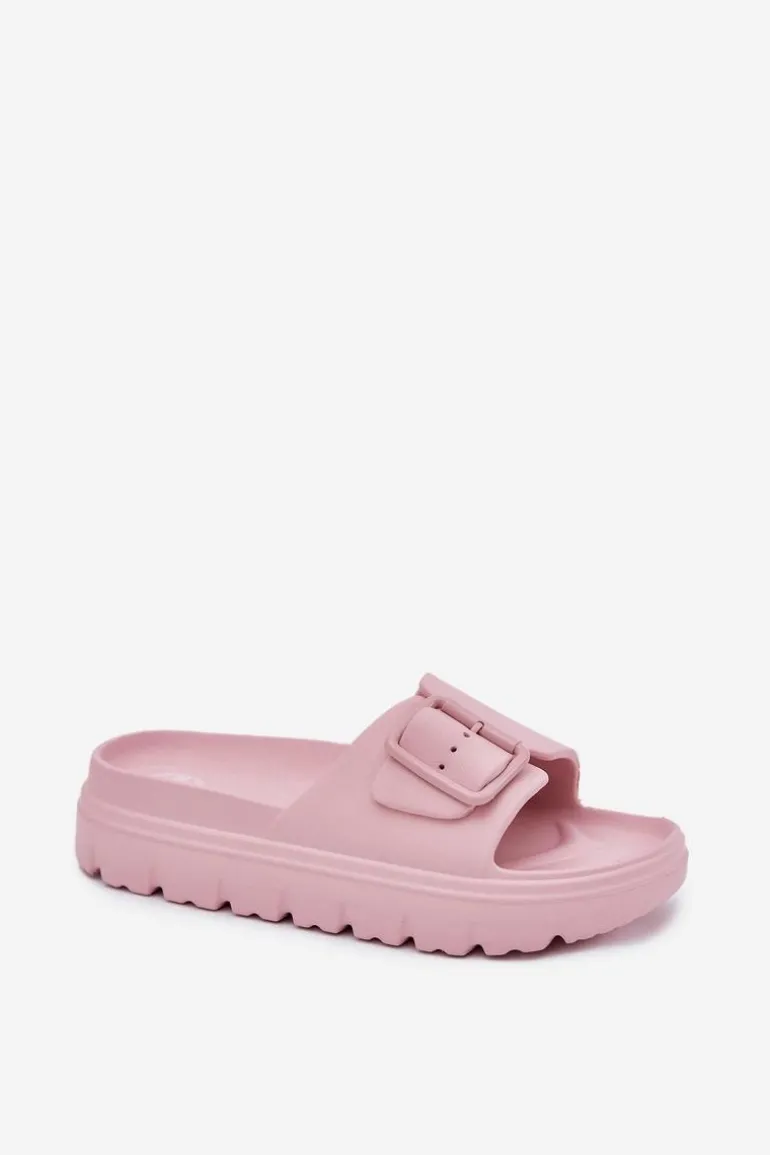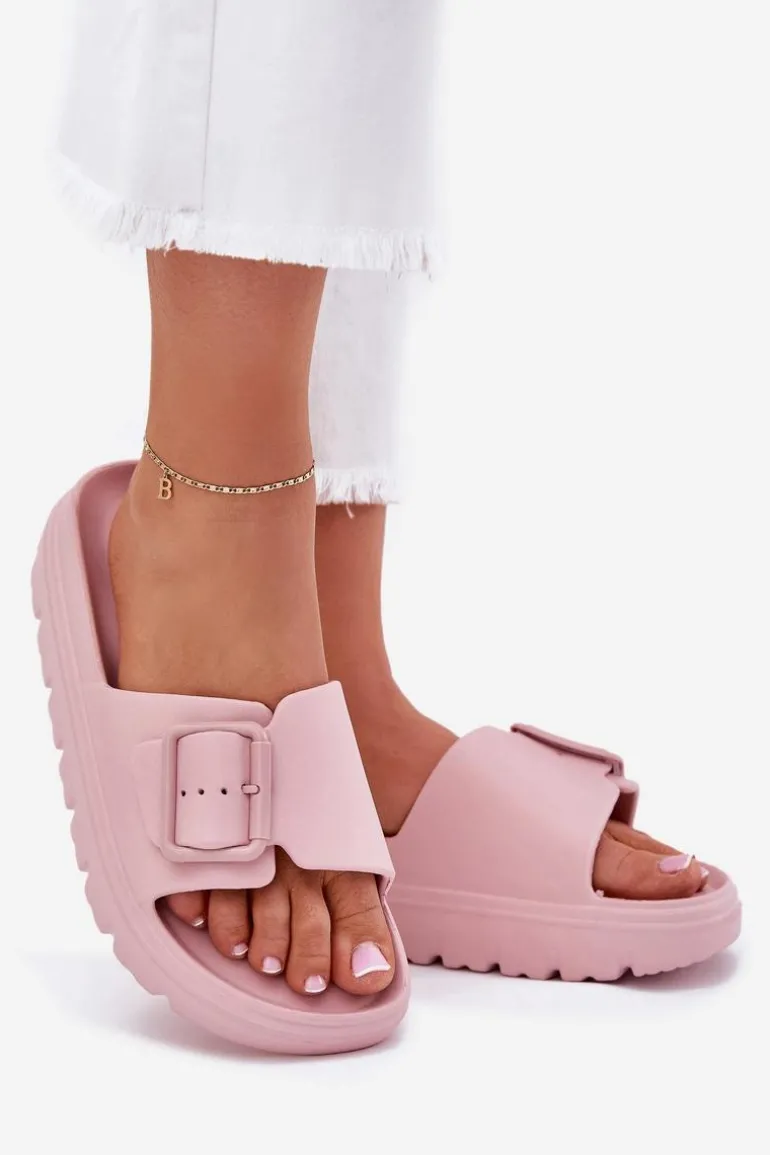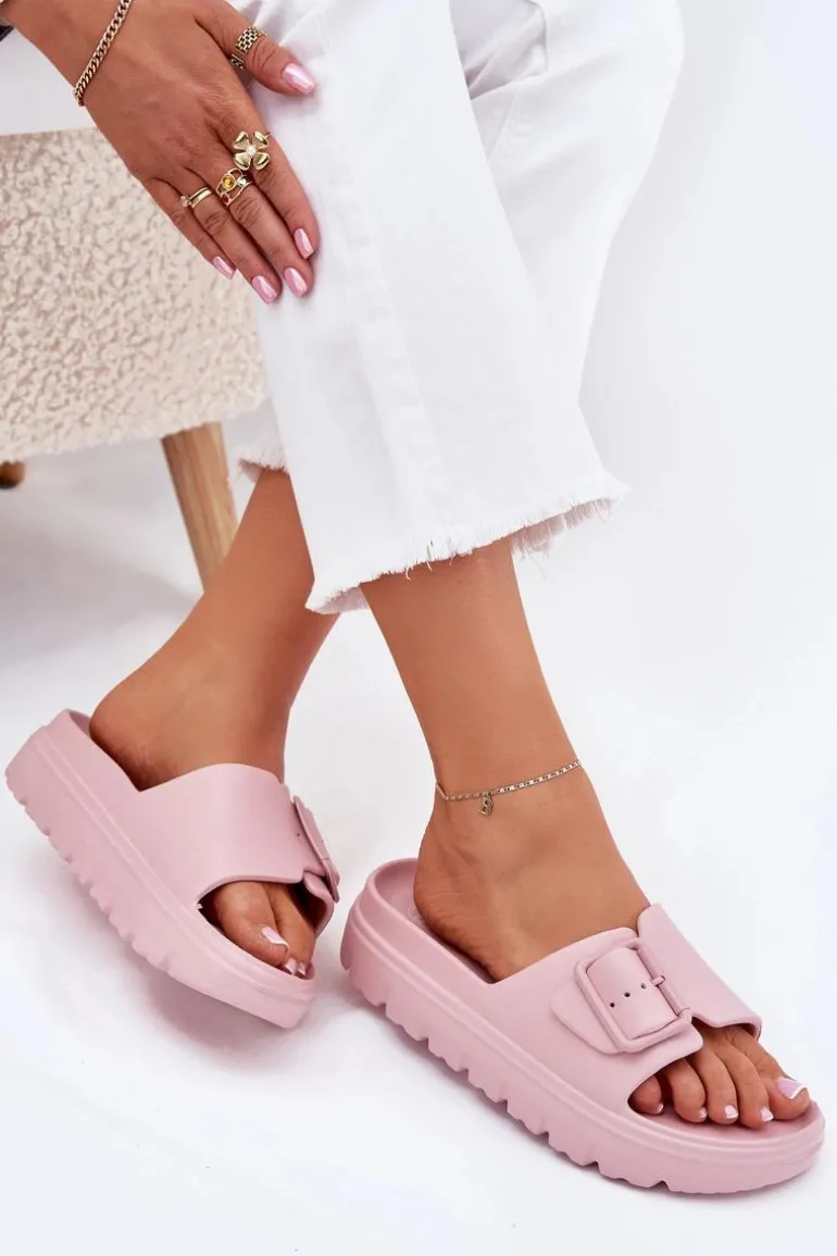 Klapki Damskie Piankowe Na Platformie Z Klamrą Różowe Viasara