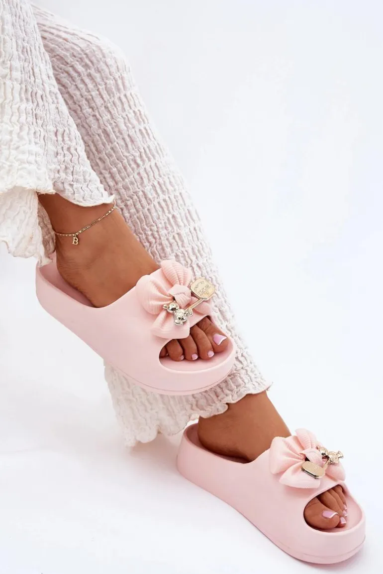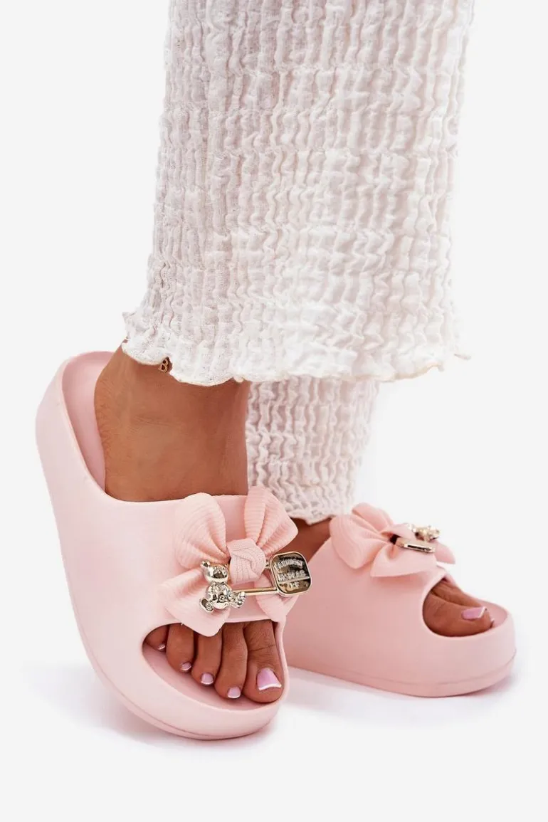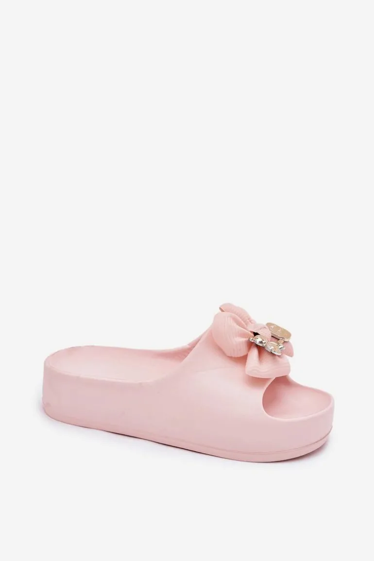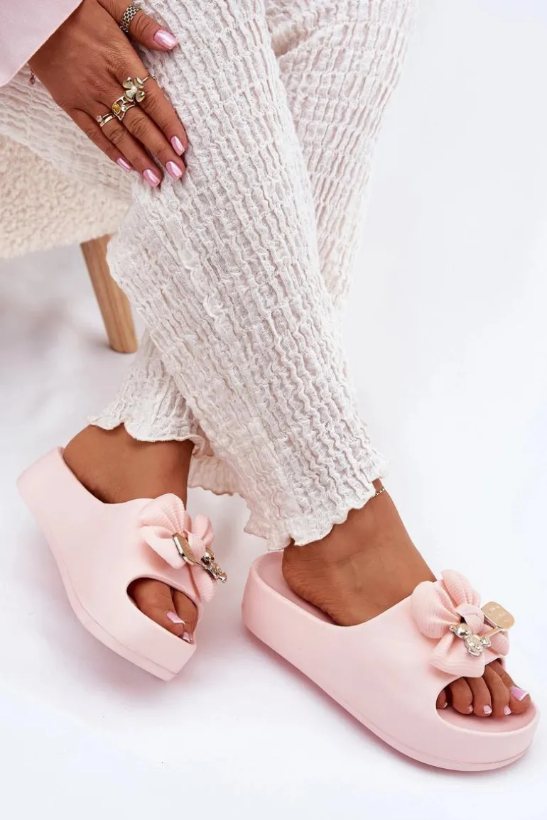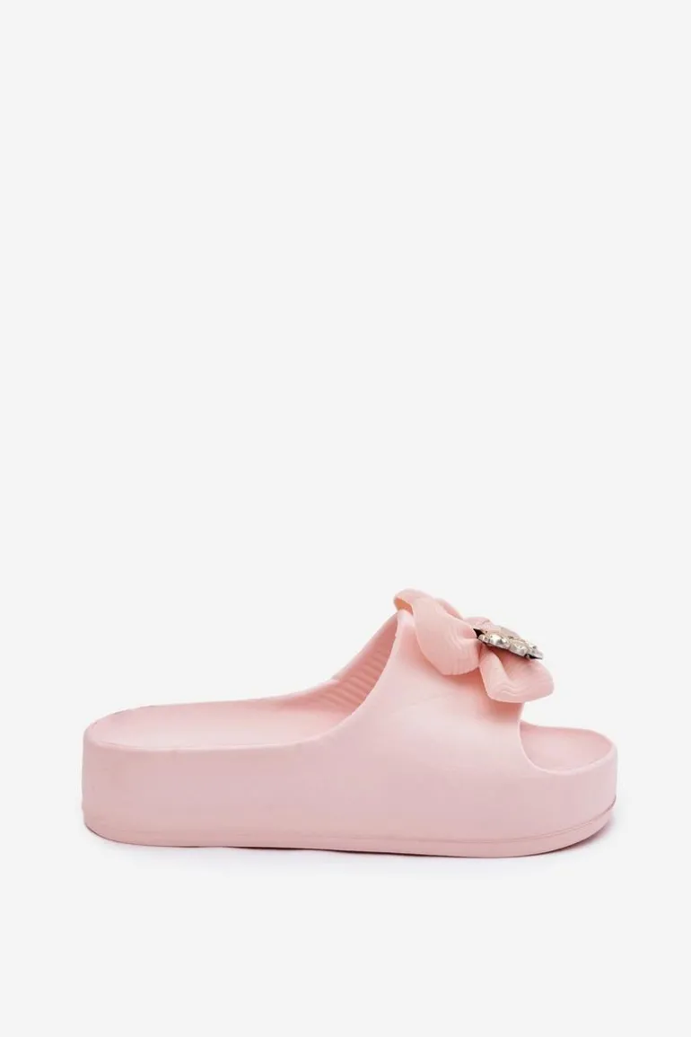 Klapki Damskie Piankowe Na Platformie Z Kokardką I Broszką Różowe Marlize