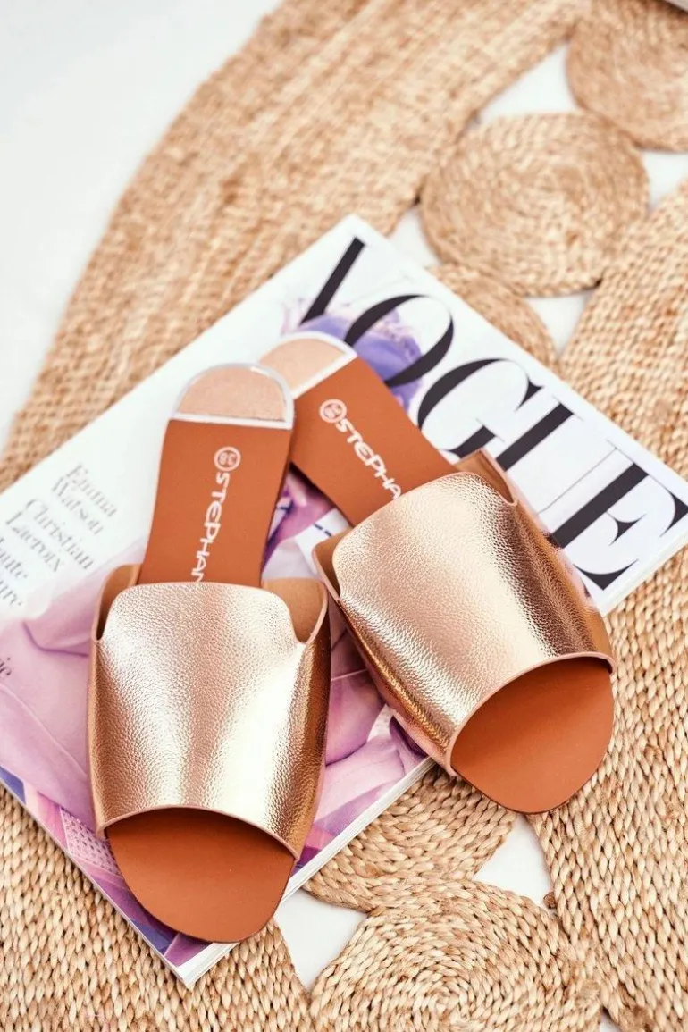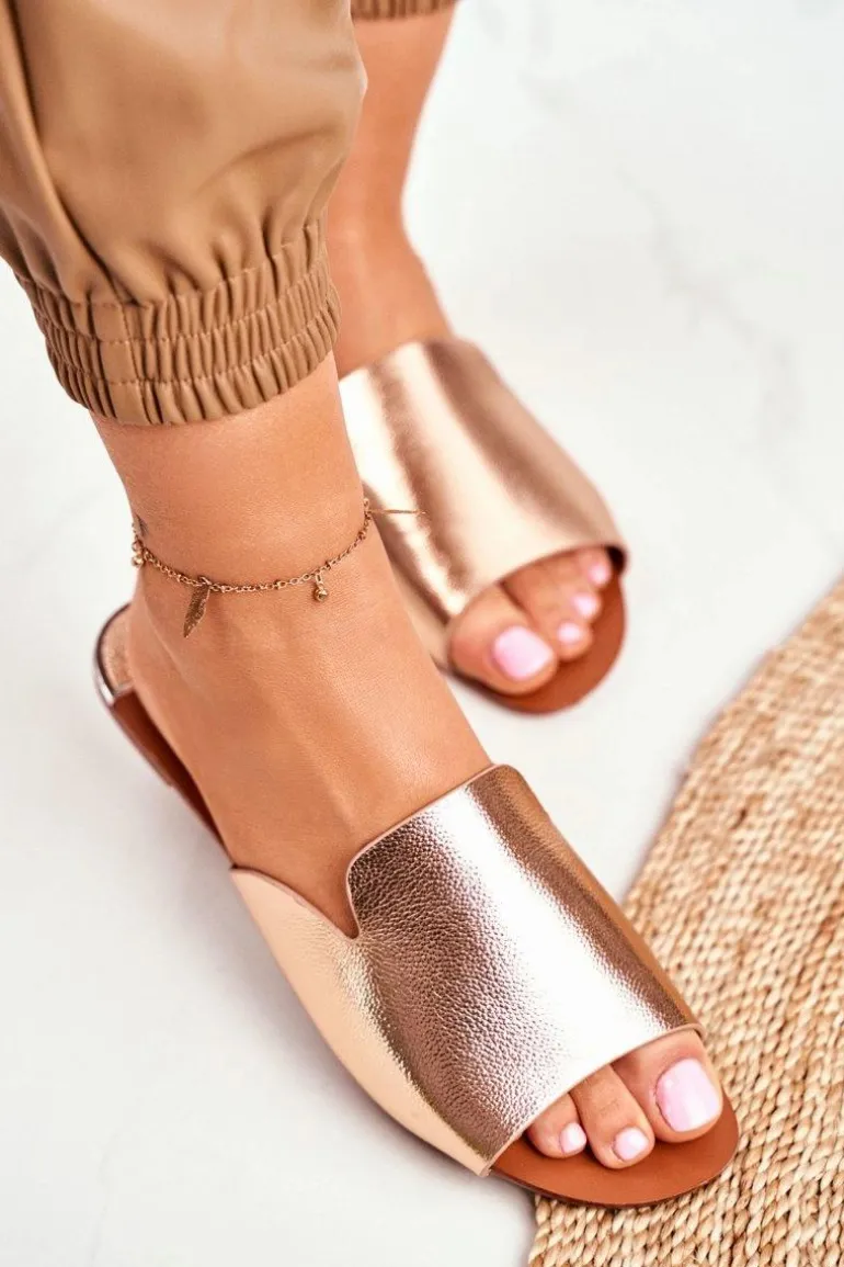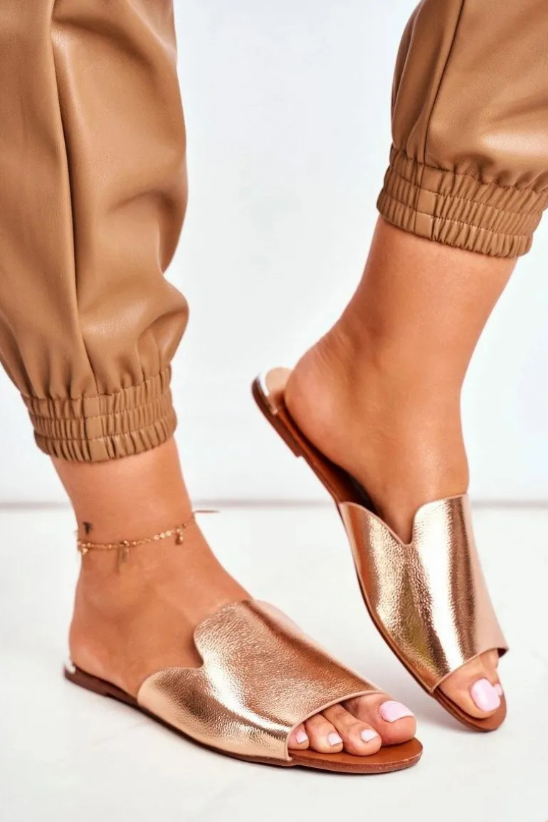 Klapki Damskie Płaskie Różowe Złoto Mimios