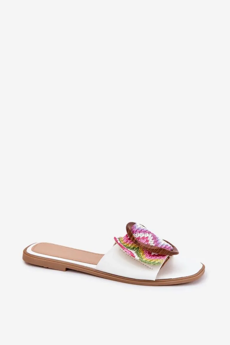 Klapki damskie z eko skóry na płaskim obcasie to stylowa i wygodna opcja na co dzień. Model ten wyróżnia się paskiem z plecionką, który nadaje im subtelnego uroku, oraz ozdobną klamrą, która przyciąga wzrok. Idealne do letnich stylizacji! Przy wyborze rozmiaru prosimy sugerować się tabelą rozmiarów.