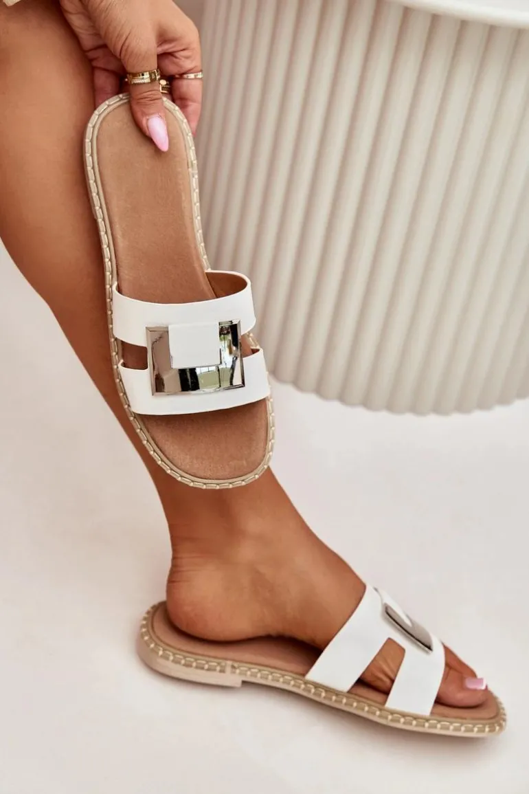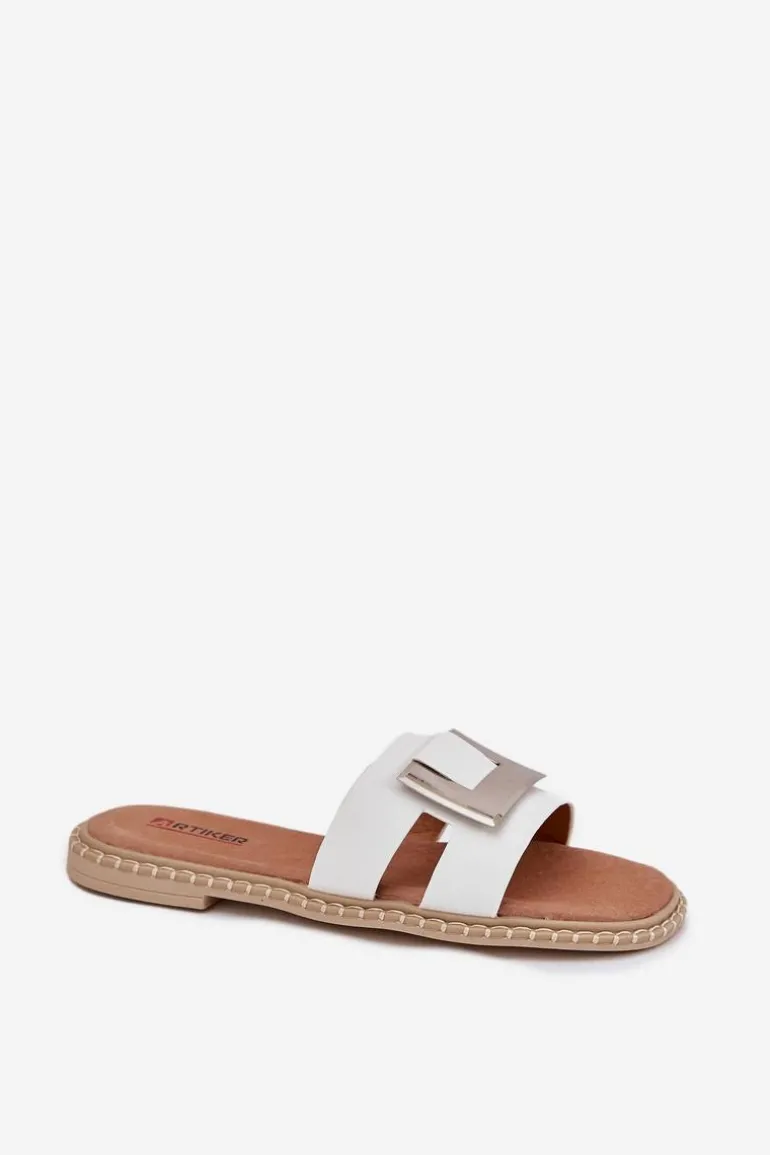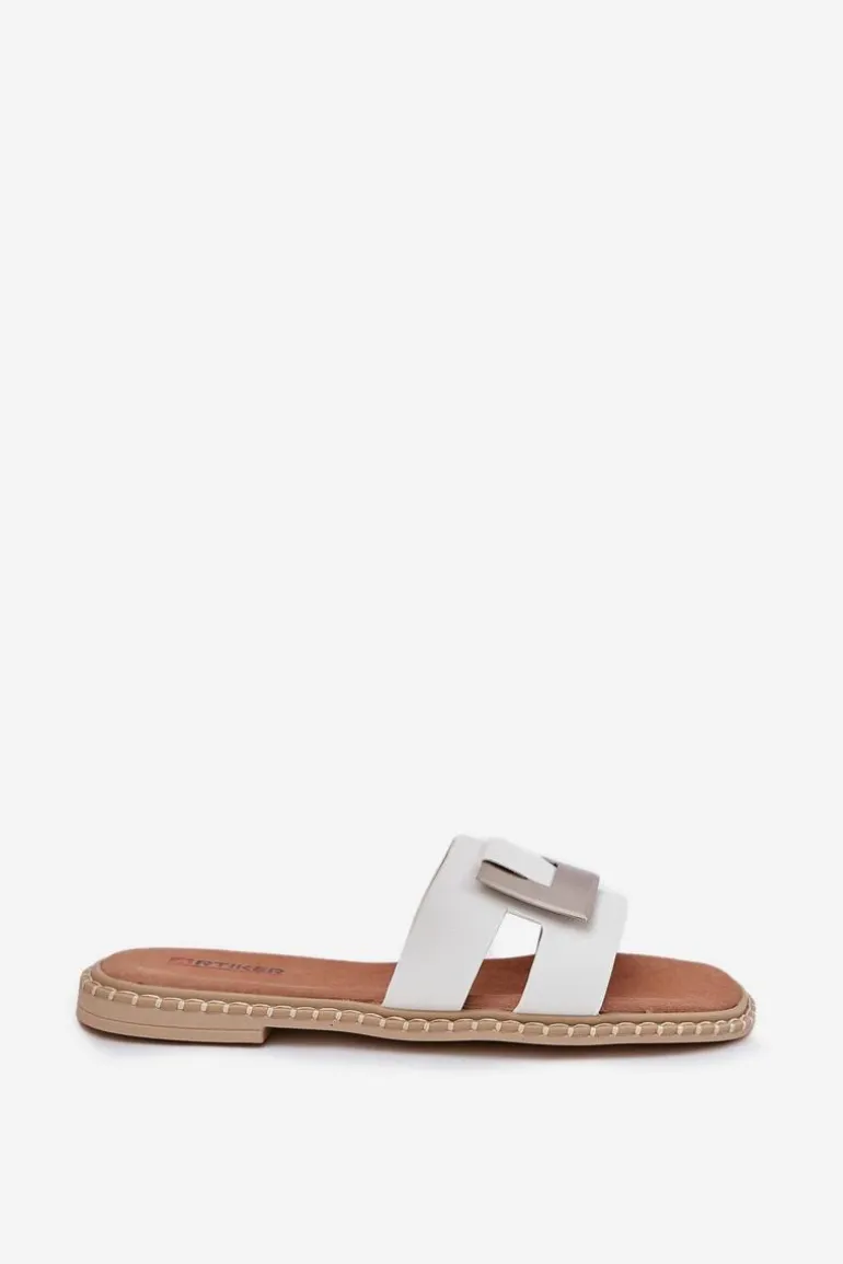 Klapki Damskie Płaskie Z Ozdobnym Detalem Artiker 56C1334 Białe