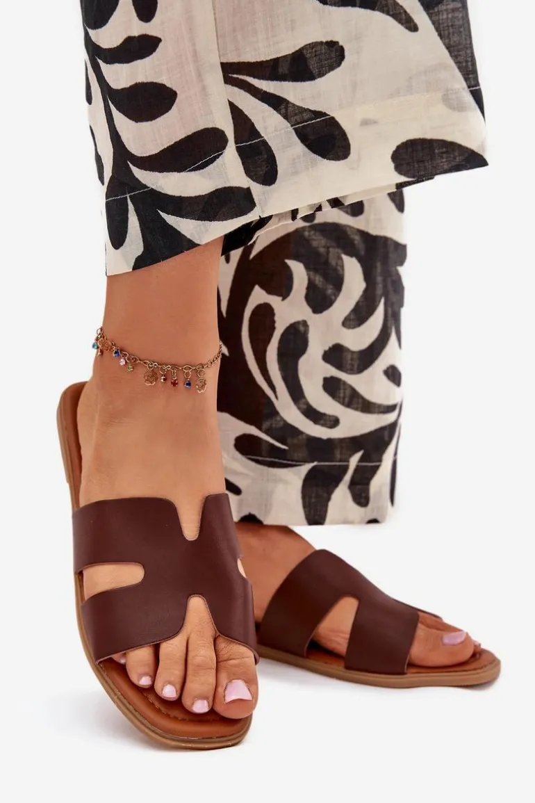 Klapki damskie z eko skóry, osadzone na płaskim obcasie, to połączenie prostoty i elegancji. Pasek z wycięciami dodaje im subtelnego charakteru, a ich klasyczny fason sprawia, że doskonale komponują się z różnorodnymi stylizacjami. Idealne na co dzień, zapewniają komfort i lekkość, dodając letnim outfitom elegancji. Przy wyborze rozmiaru prosimy sugerować się tabelą rozmiarów.
