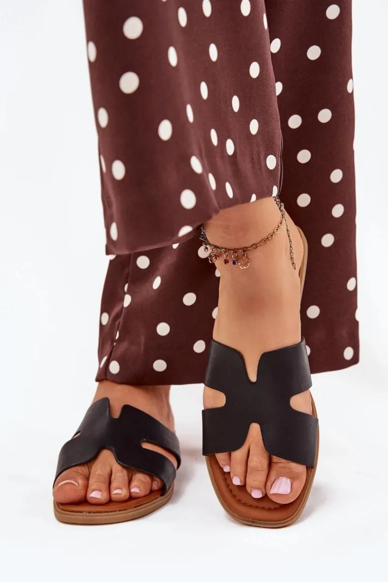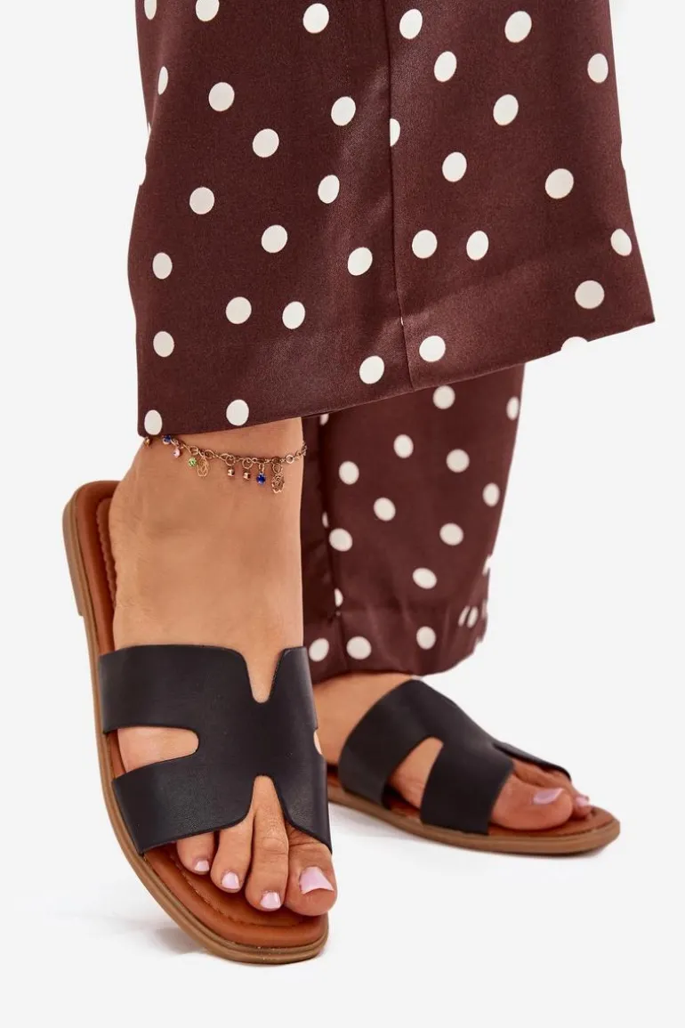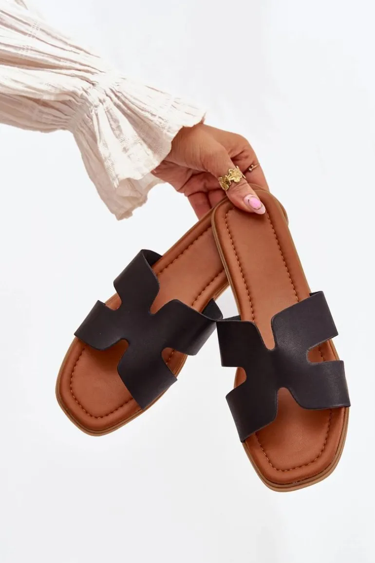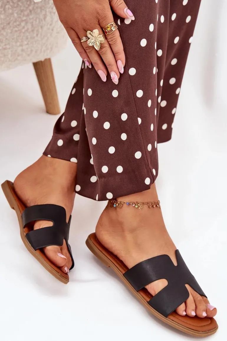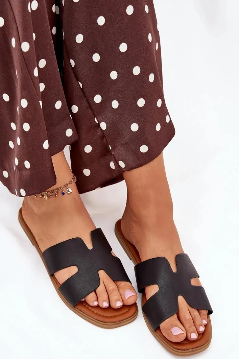 Klapki damskie z eko skóry, osadzone na płaskim obcasie, to połączenie prostoty i elegancji. Pasek z wycięciami dodaje im subtelnego charakteru, a ich klasyczny fason sprawia, że doskonale komponują się z różnorodnymi stylizacjami. Idealne na co dzień, zapewniają komfort i lekkość, dodając letnim outfitom elegancji. Przy wyborze rozmiaru prosimy sugerować się tabelą rozmiarów.