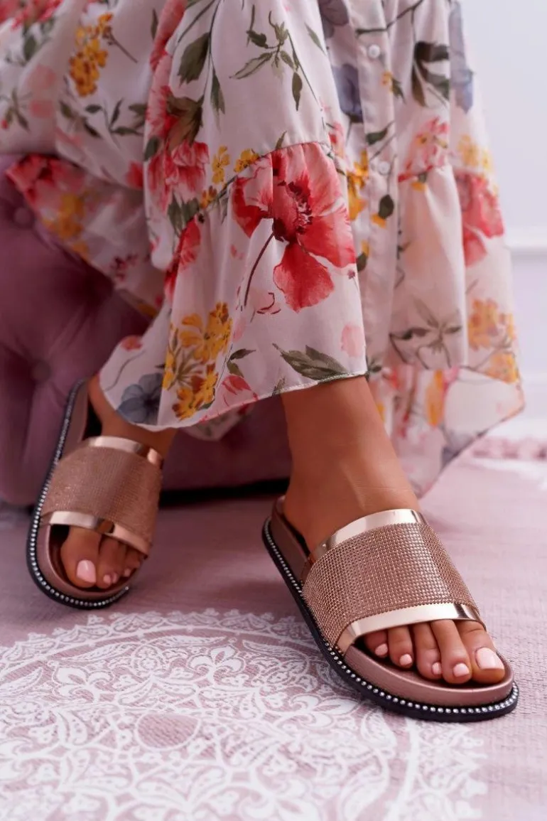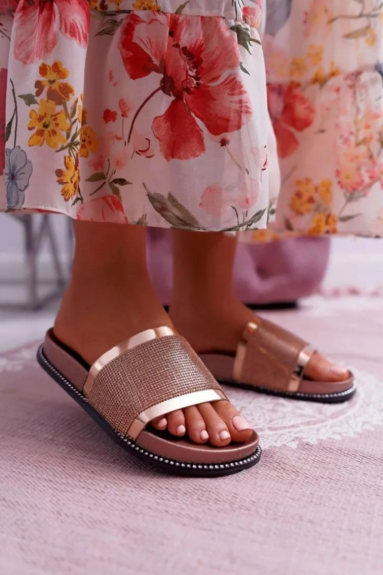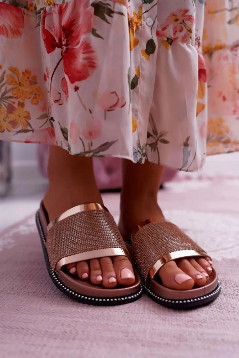 Klapki Damskie Profilowane Z Cyrkoniami Champagne Rentre