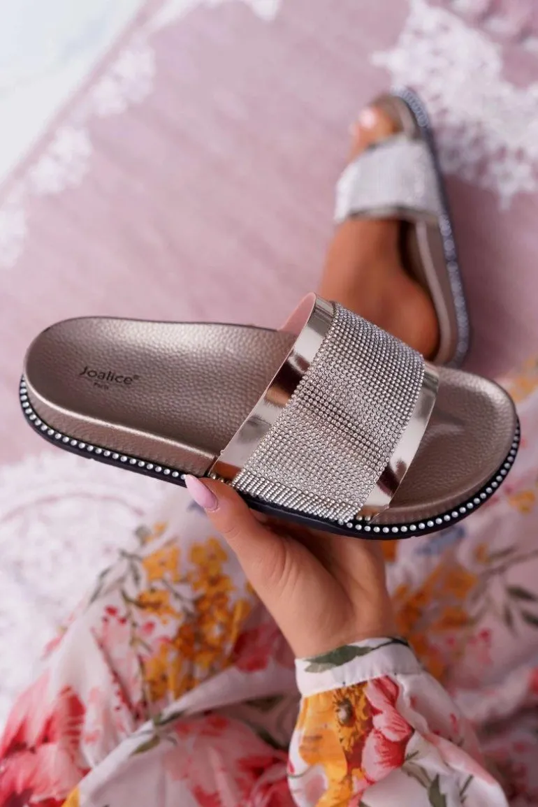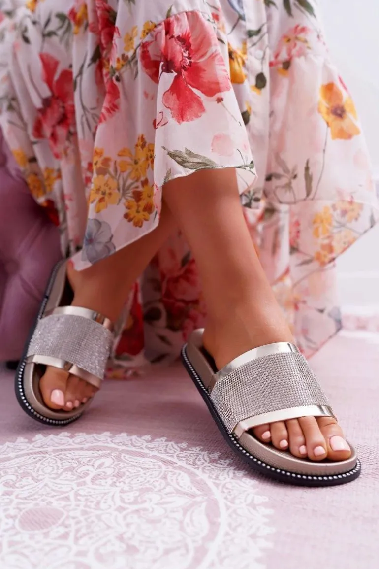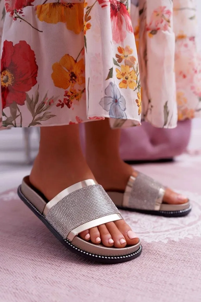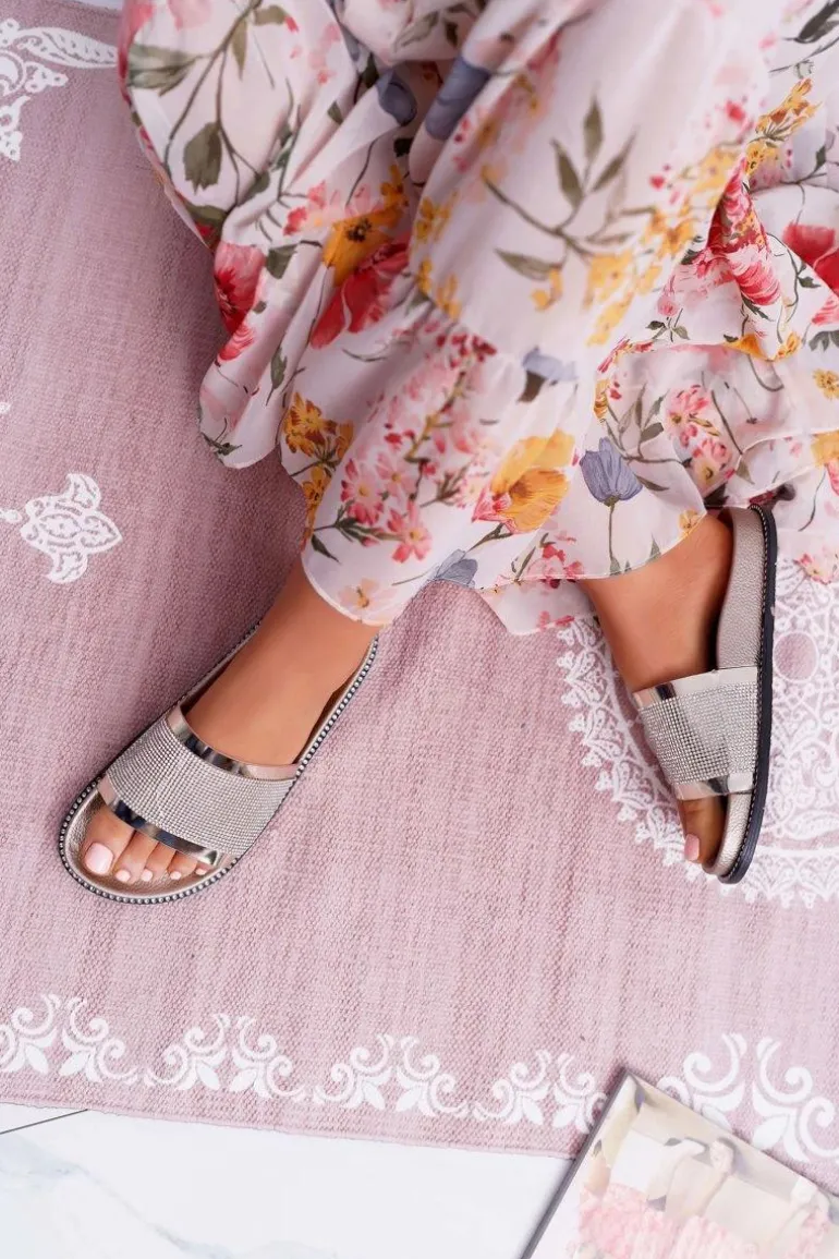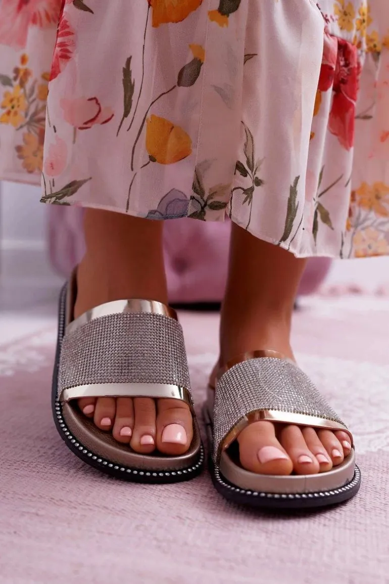Klapki Damskie Profilowane Z Cyrkoniami Złote Rentre