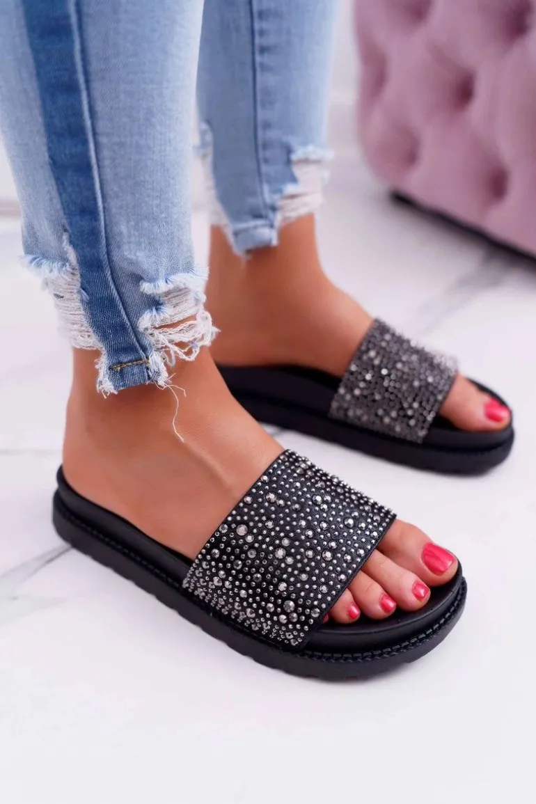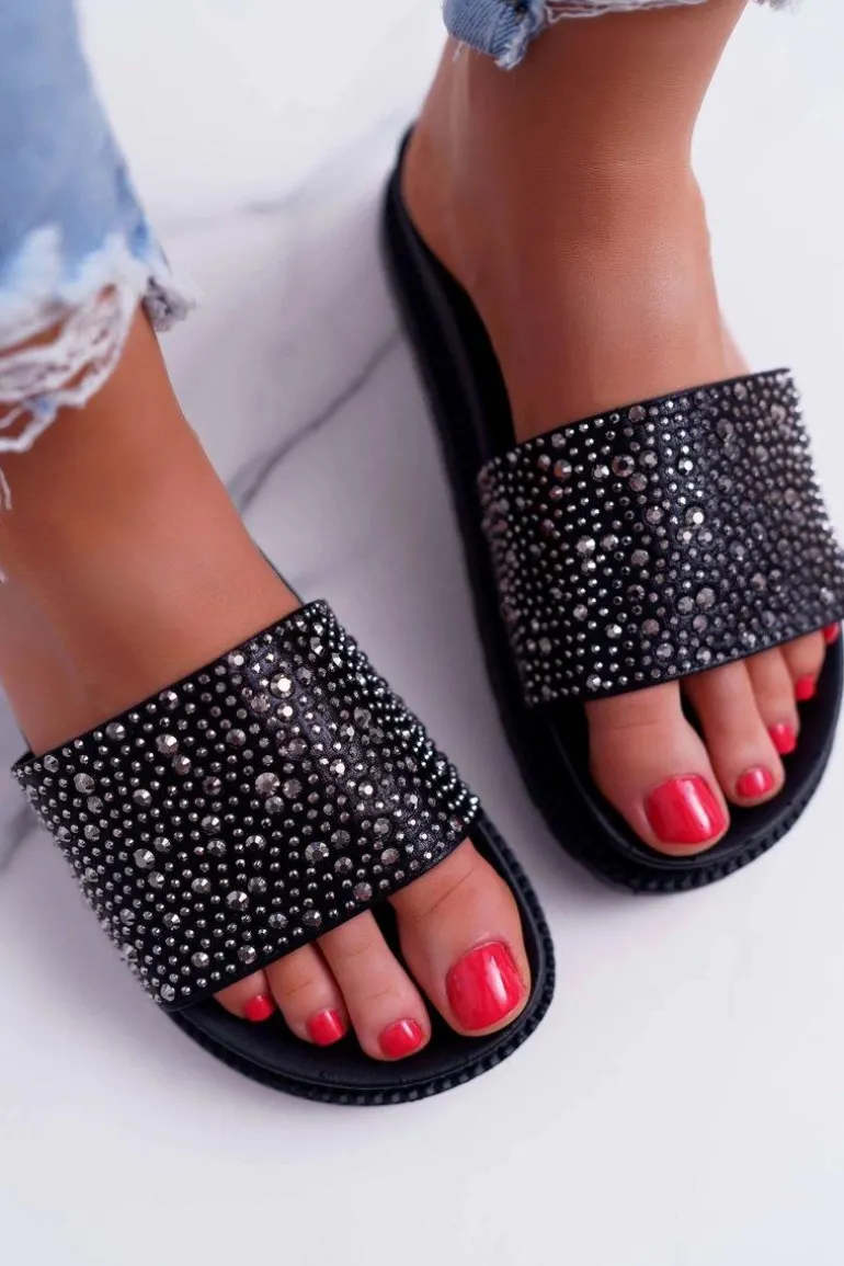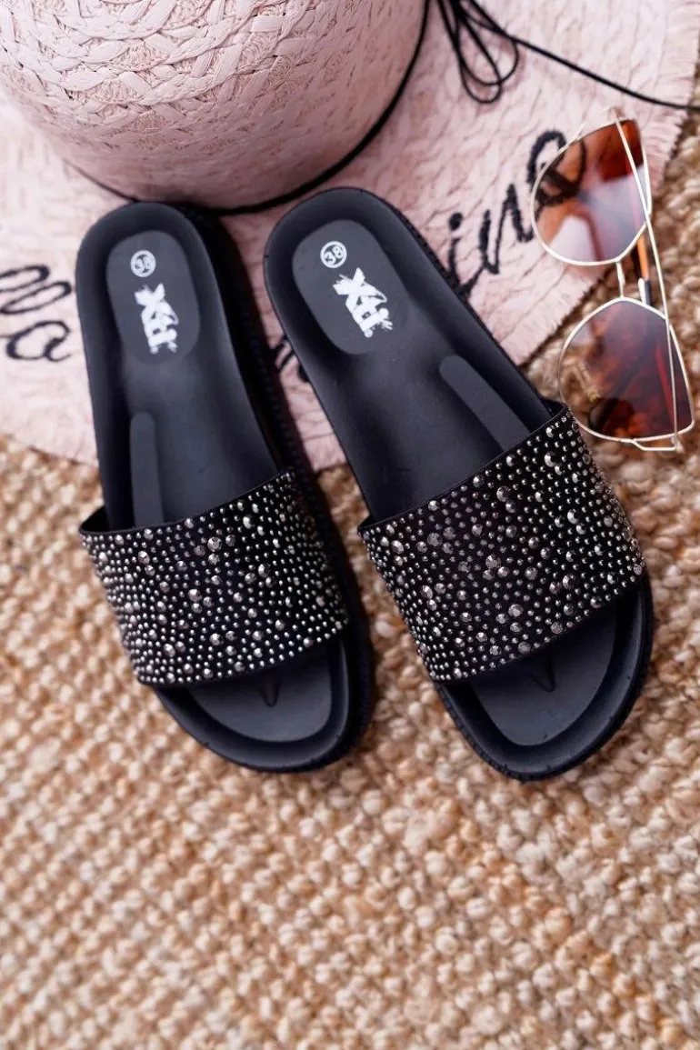 Klapki Damskie Z Cyrkoniami Czarne XTI 48821