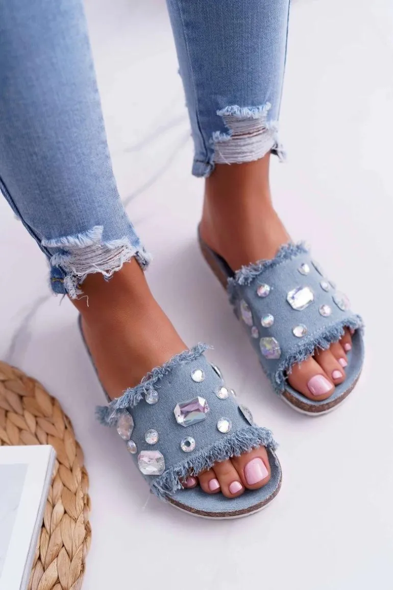 Klapki Damskie z Cyrkoniami Jeans Koko