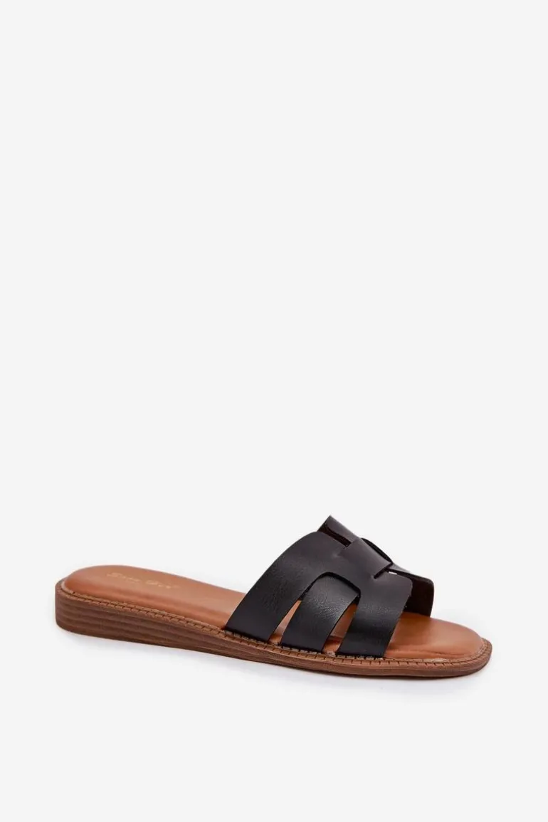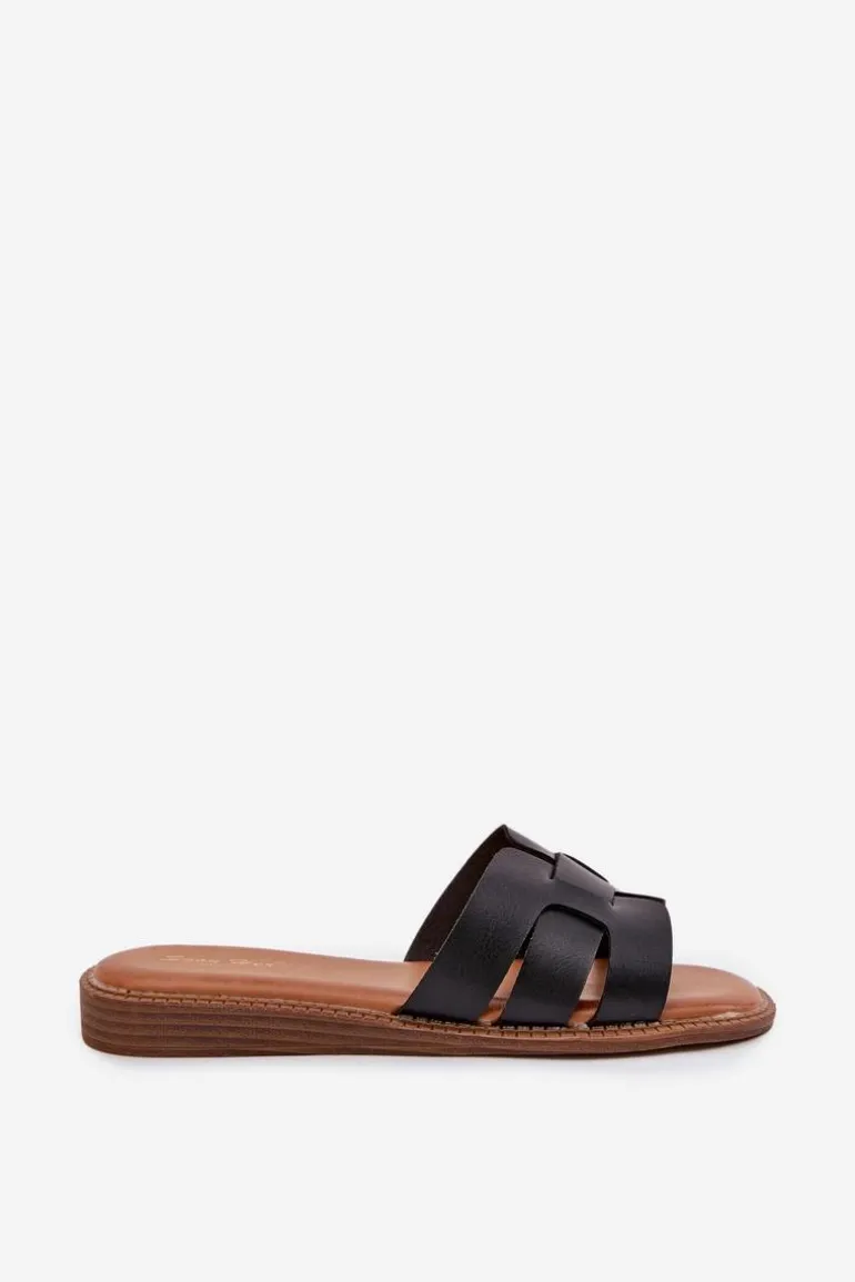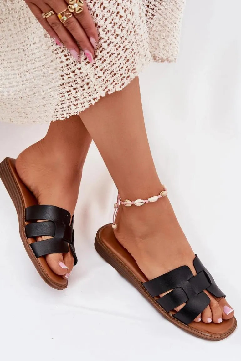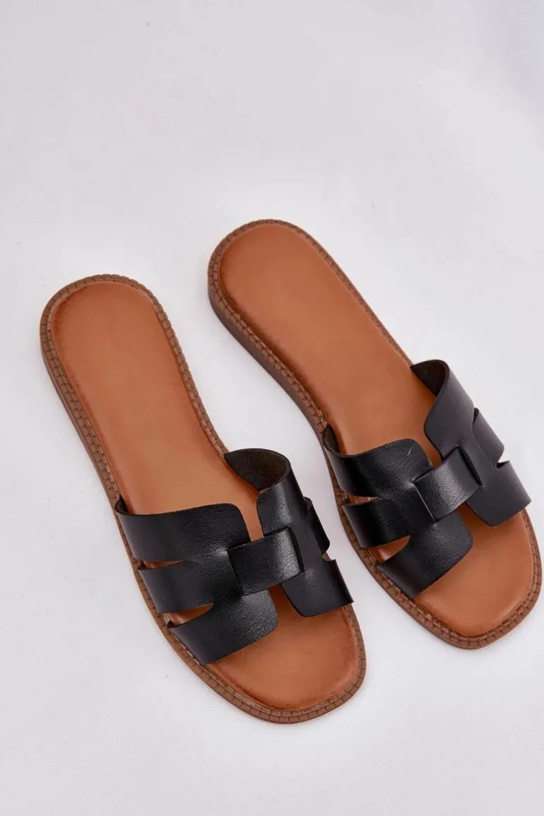 Klapki Damskie Z Eko Skóry Czarne Lisanoria