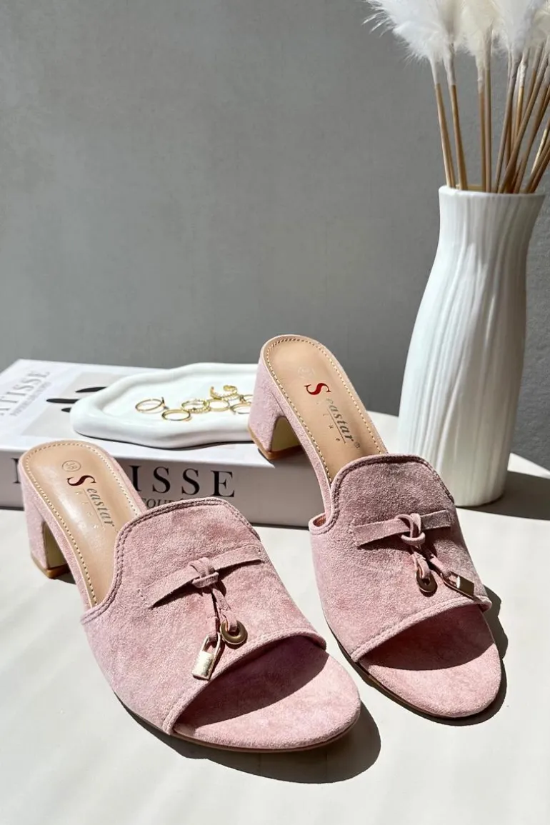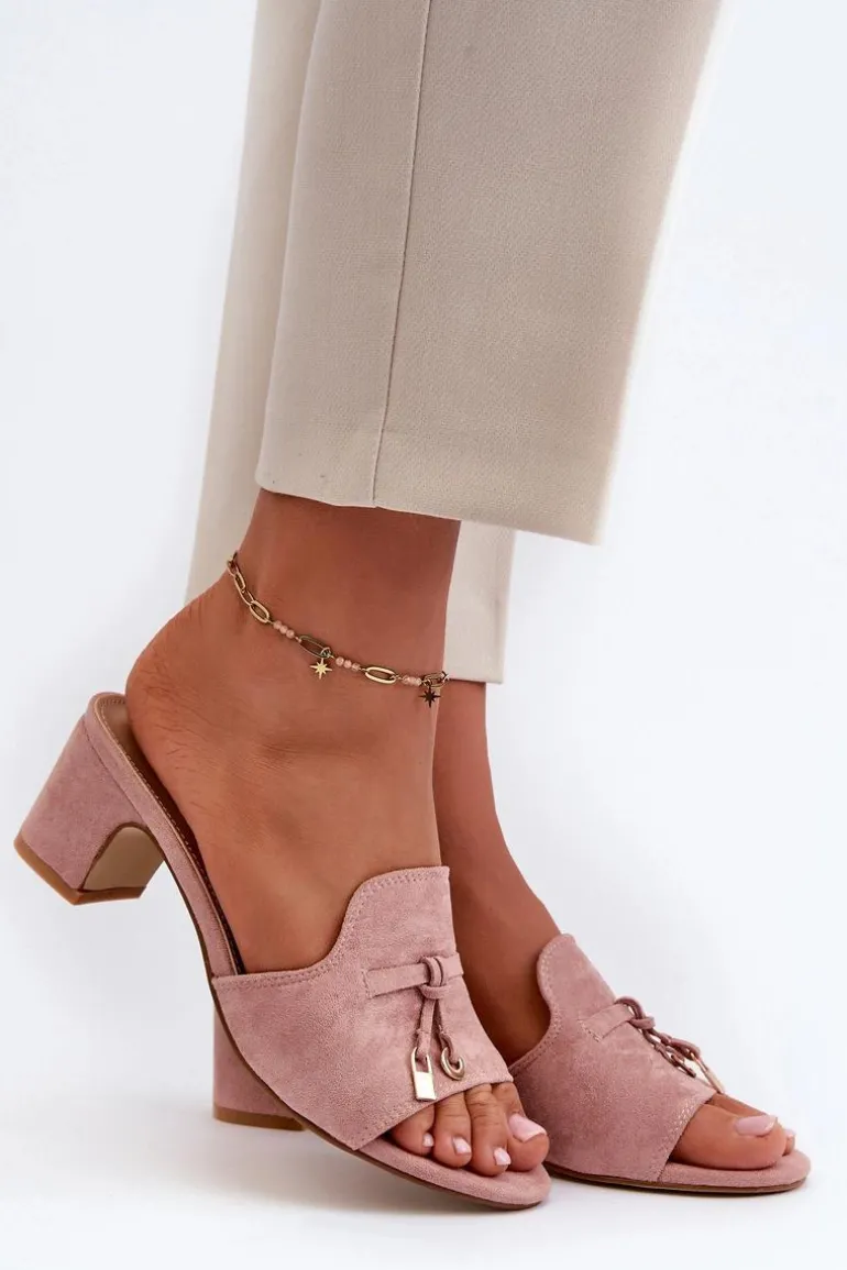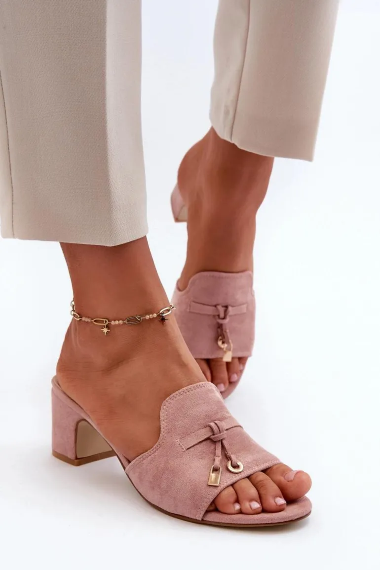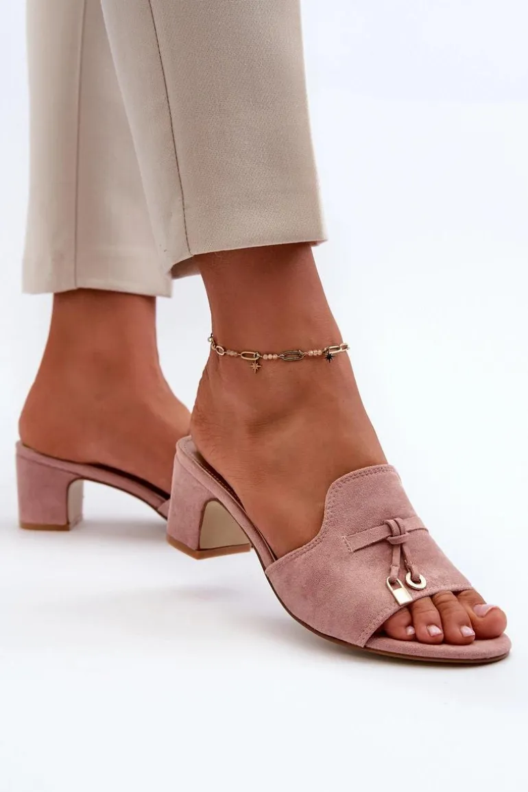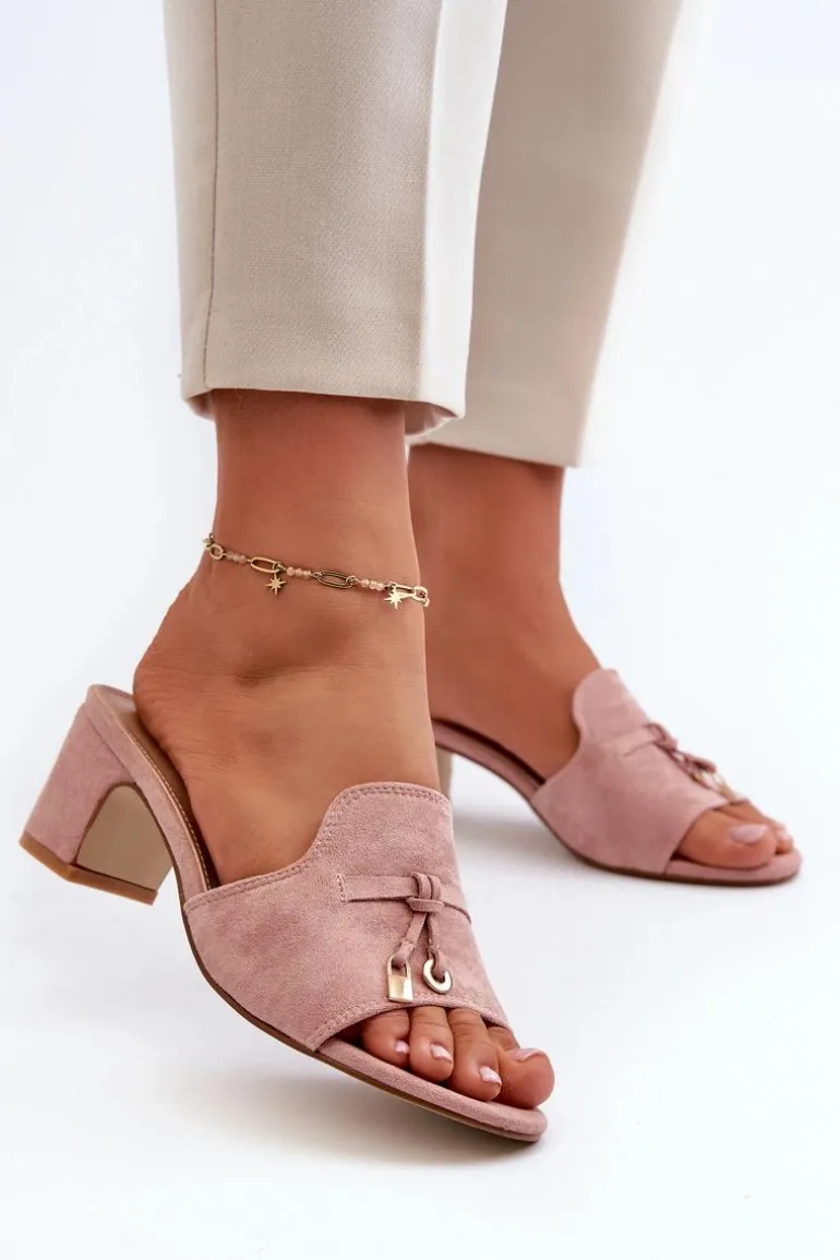 Klapki Damskie Z Eko Zamszu Na Obcasie Różowe Jemenna