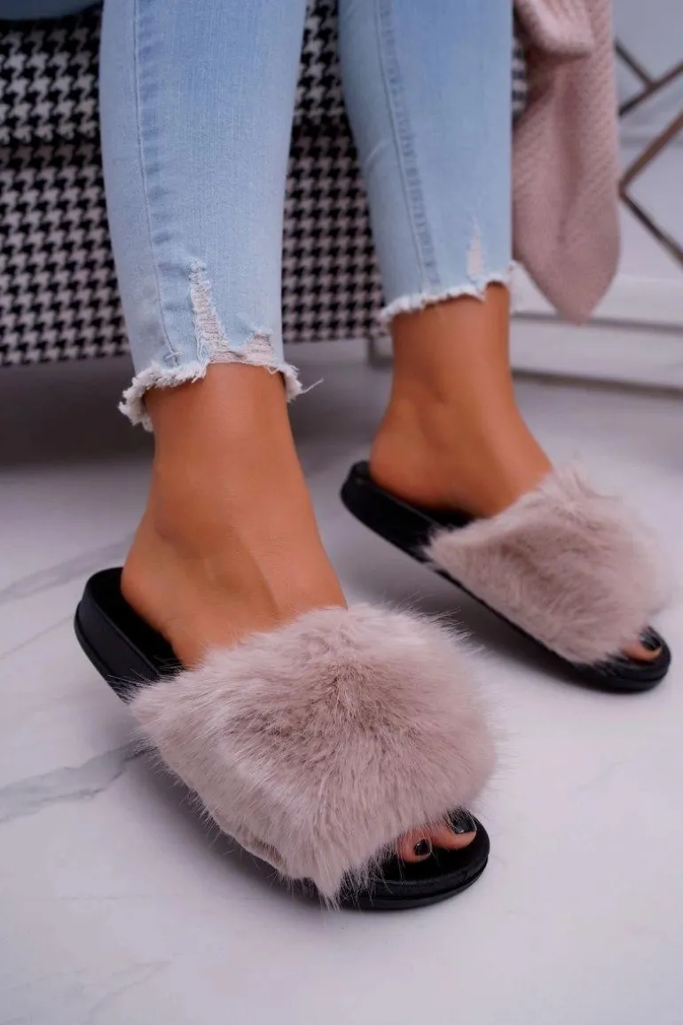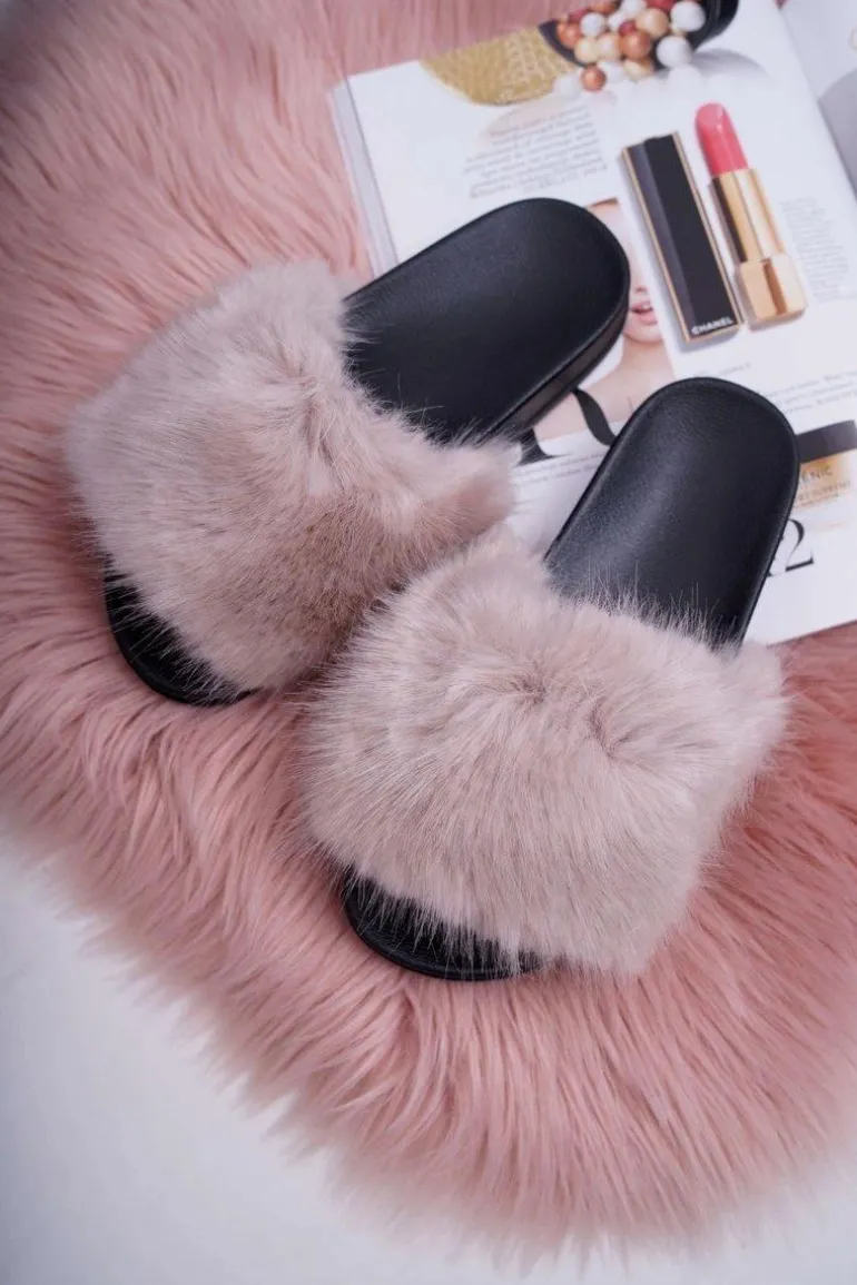 Klapki Damskie z Futerkiem Beżowe NiceFur