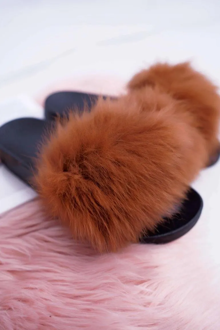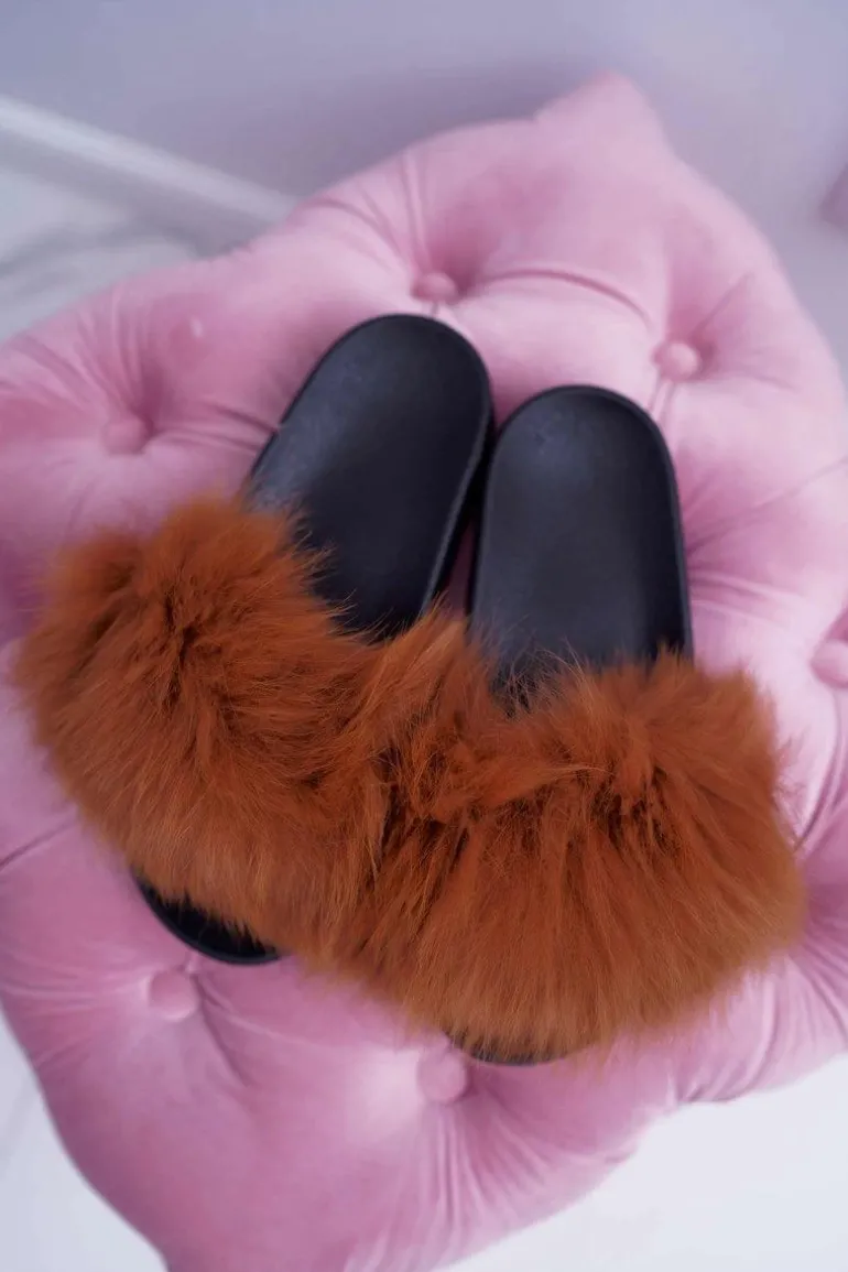 Klapki Damskie Z Futerkiem Camel Mellow