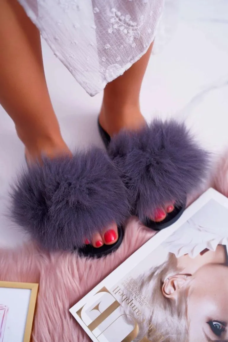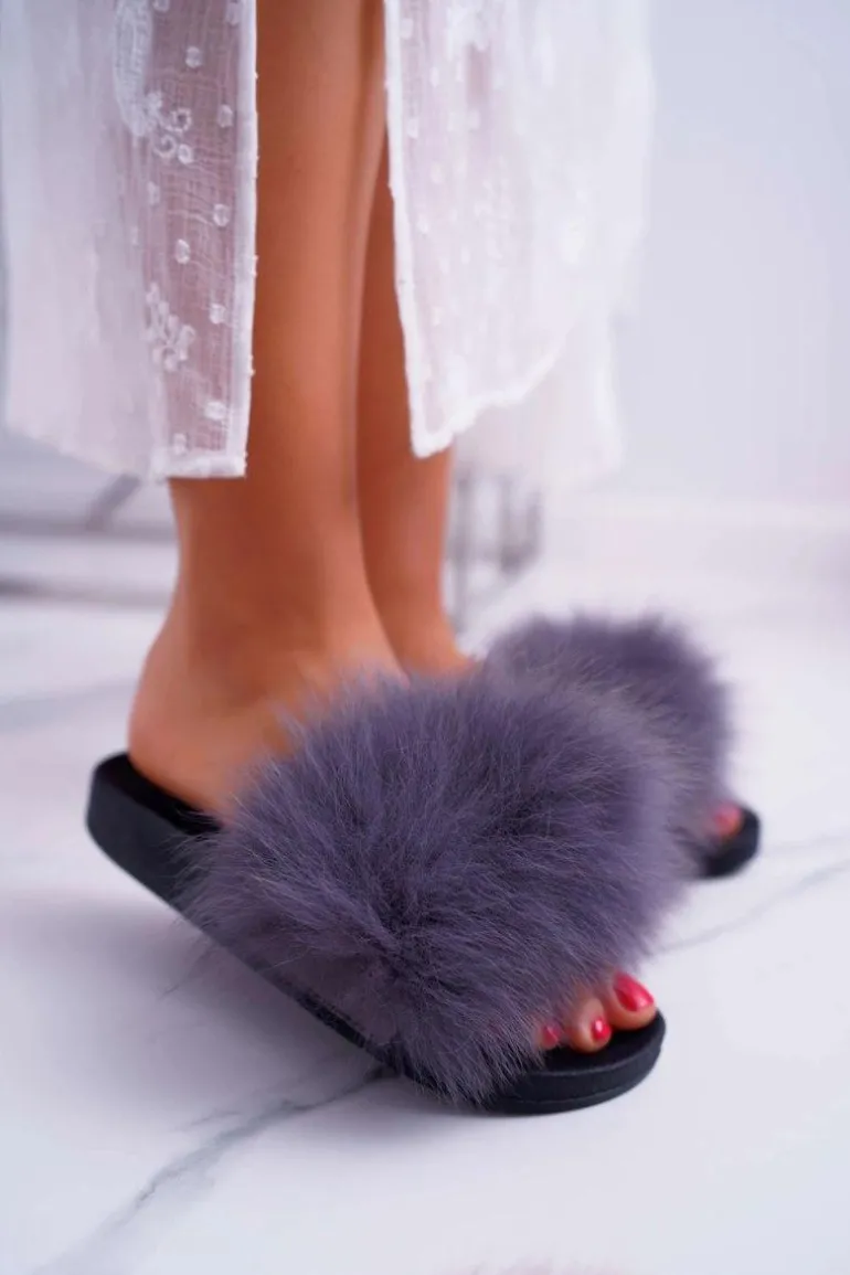 Klapki Damskie Z Futerkiem Szare Mellow