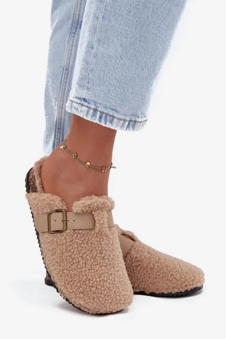 Damskie klapki z futerkiem typu baranek to idealne połączenie wygody i stylu. Zakryte, zaokrąglone noski zapewniają komfort noszenia, a regulowany pasek z klamrą pozwala dopasować obuwie do stopy. Miękka wyściółka sprawia, że klapki są wyjątkowo przyjemne w użytkowaniu – świetnie sprawdzą się zarówno w domu, jak i w casualowych, codziennych stylizacjach. Przy wyborze rozmiaru prosimy sugerować się tabelą rozmiarów.