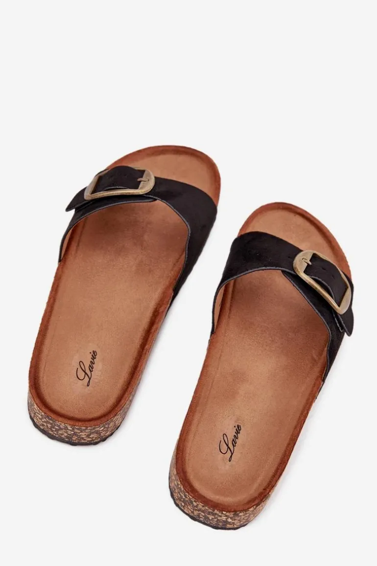 Klapki Damskie Z Klamrą Na Korkowej Platformie Czarne Zavira