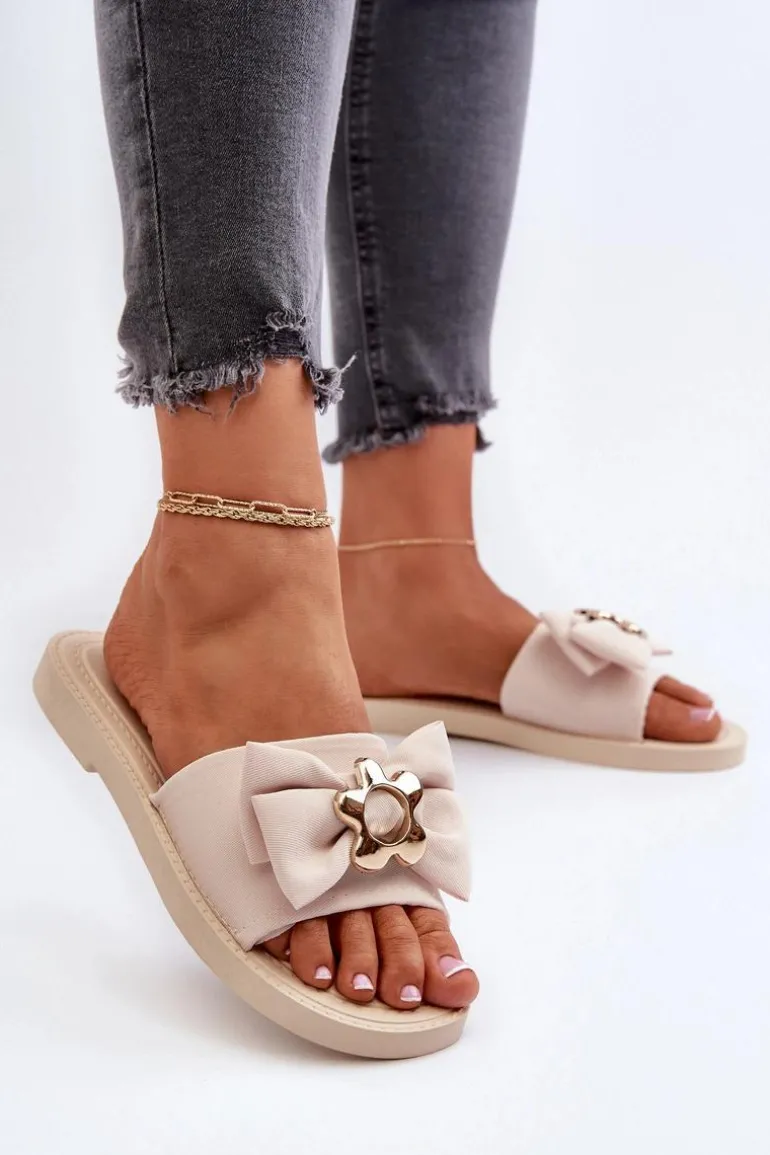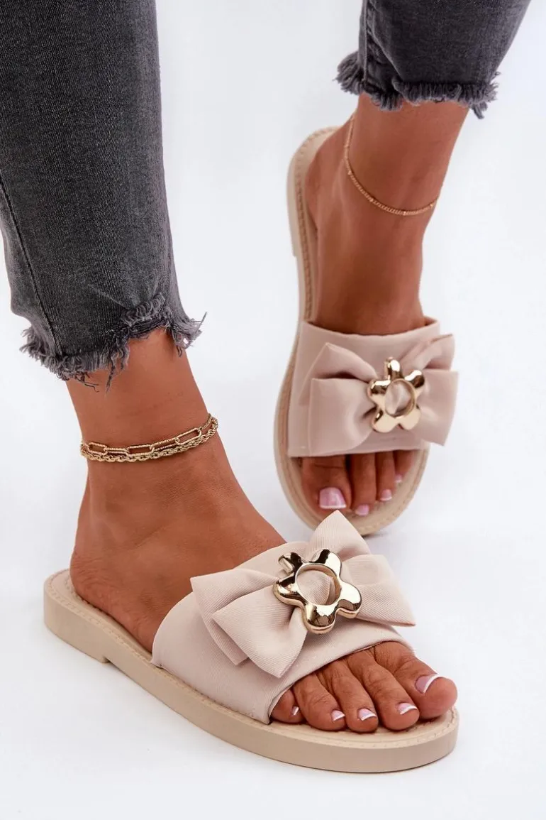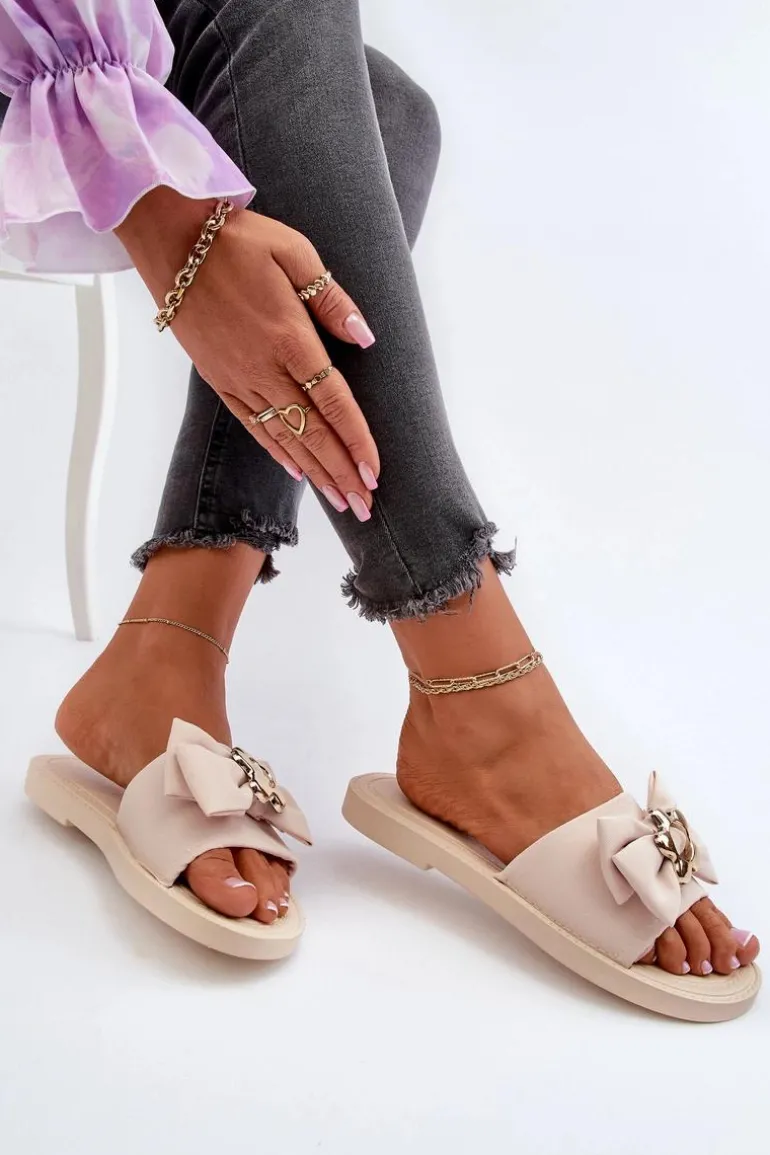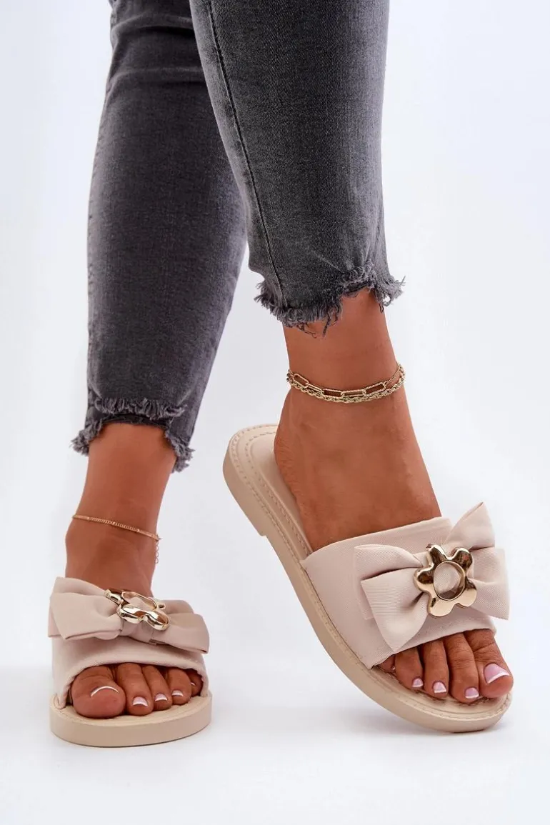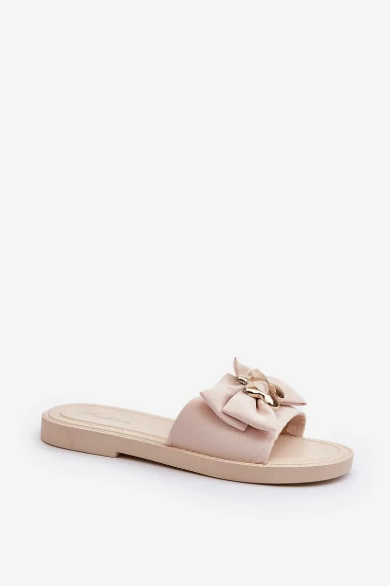 Klapki damskie na płaskim obcasie. Kokarda umieszczona z przodu nadaje im dziewczęcy i urokliwy wygląd. Wkładka oraz podeszwa zostały wykonane z gumowego tworzywa. Klapki są wygodne w użytkowaniu, a także elastyczne. Idealne na letnie spacery, wypad na plażę czy spotkania ze znajomymi. Przy wyborze rozmiaru prosimy sugerować się tabelą rozmiarów.