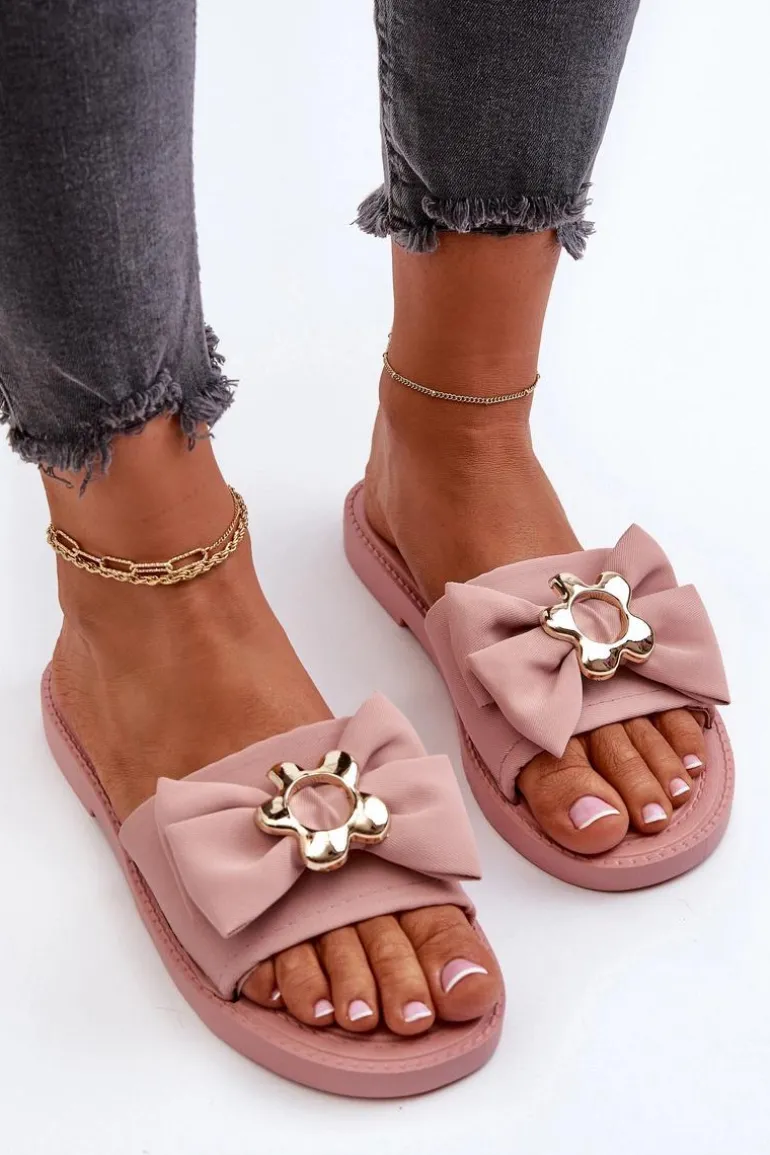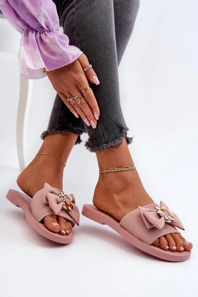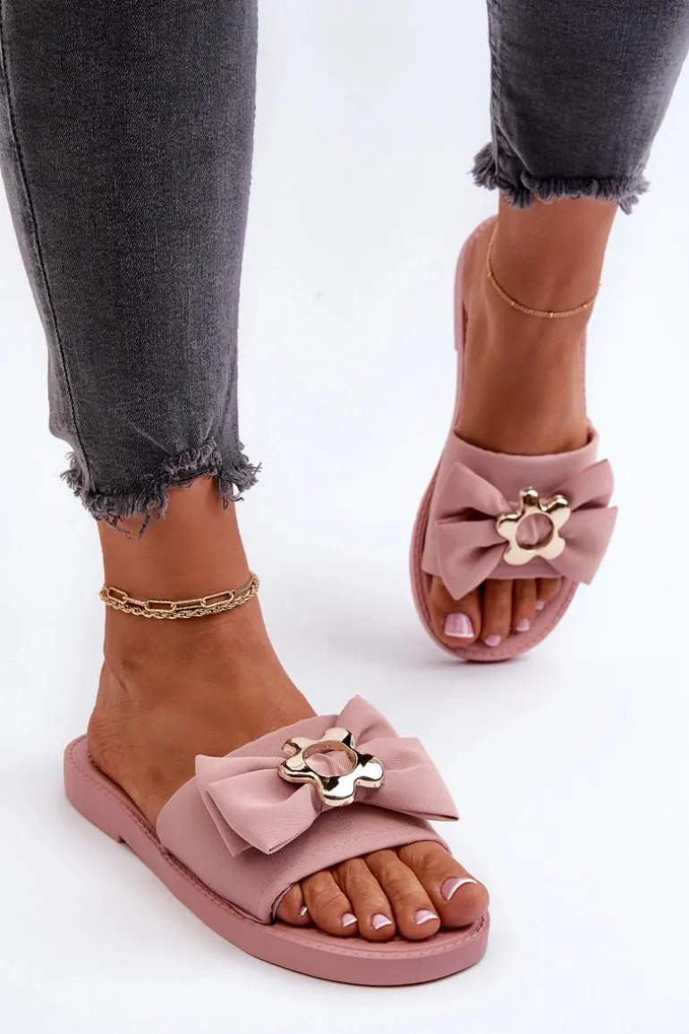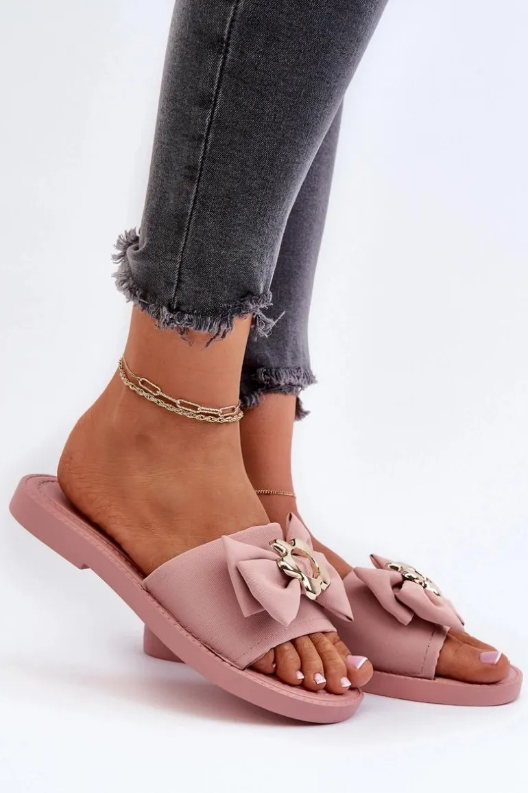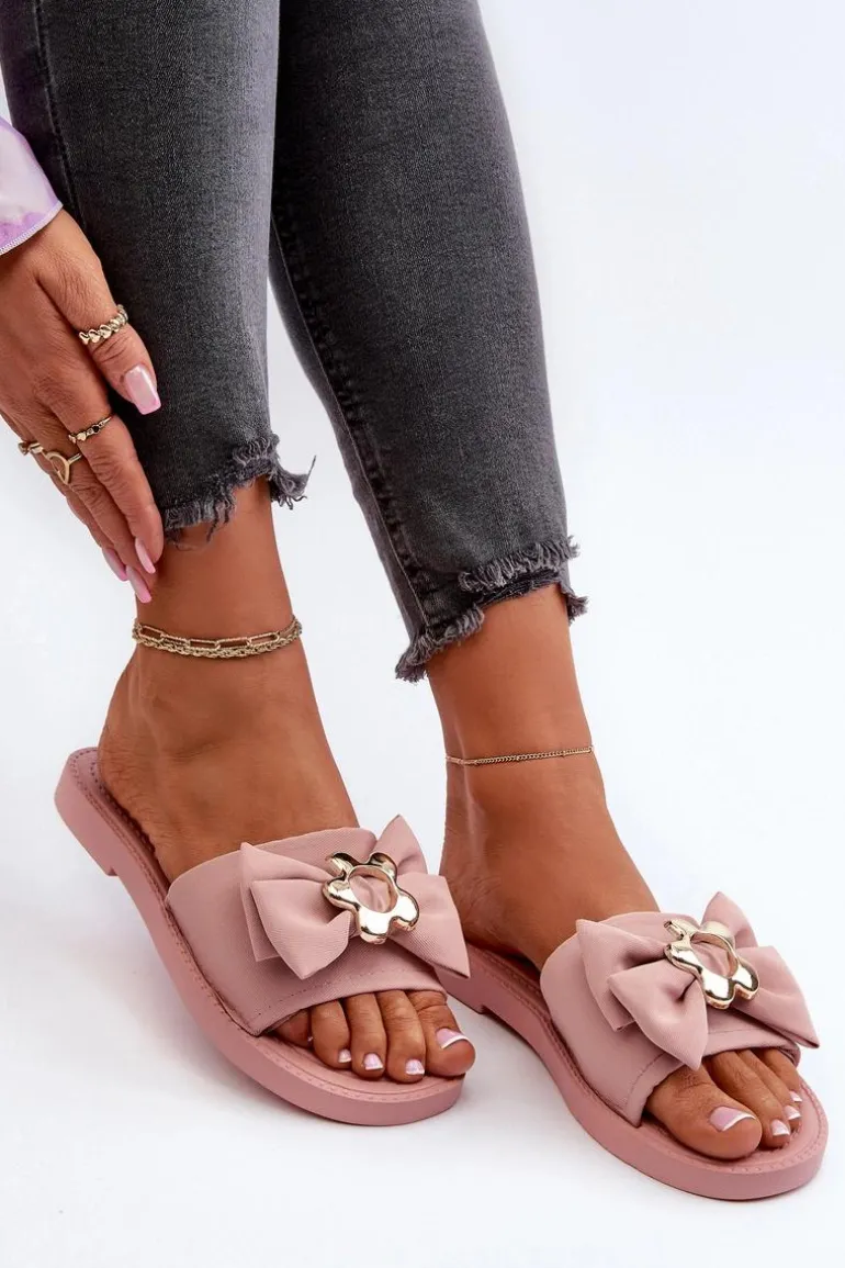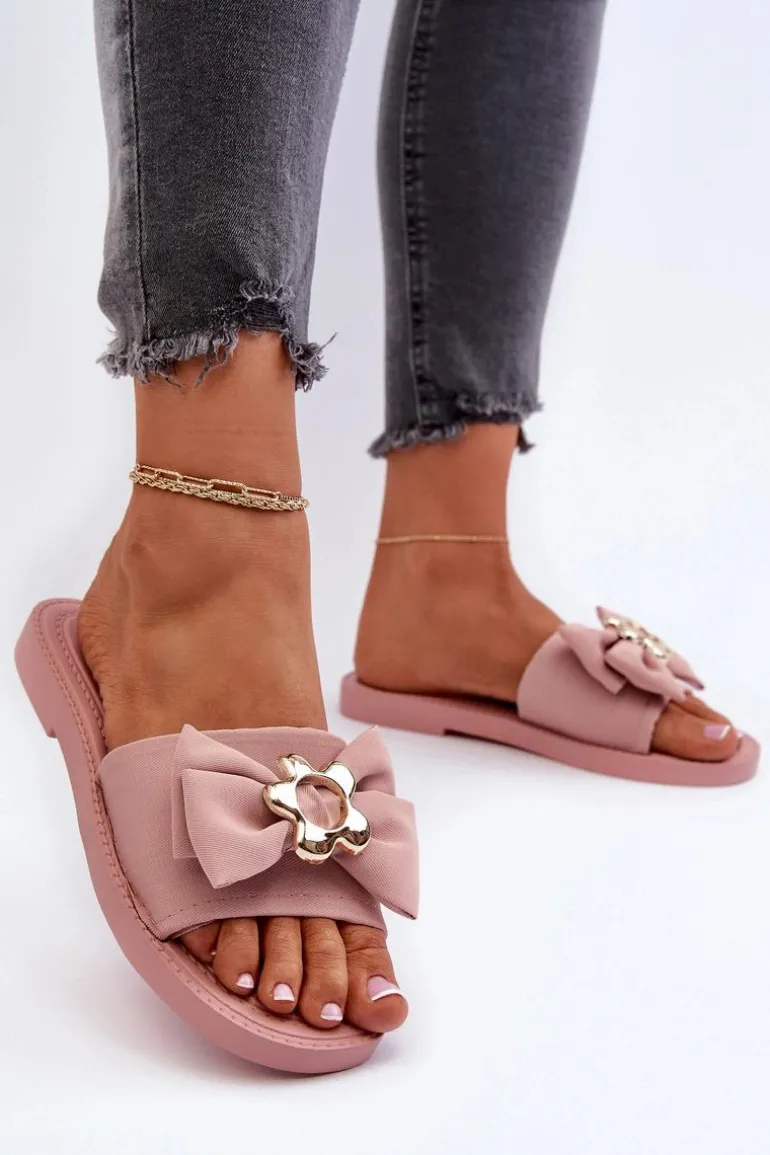 Klapki Damskie Z Kokardą Różowe Arsicada