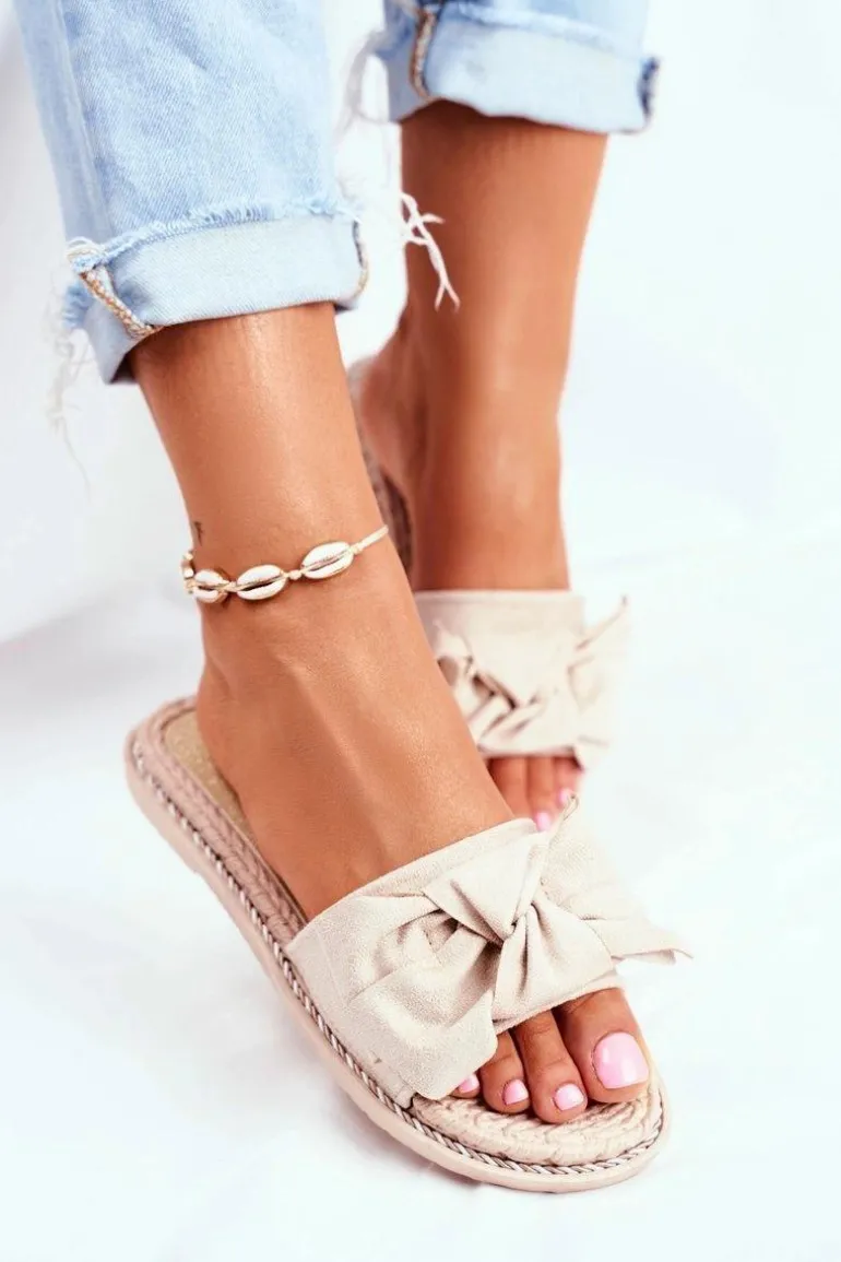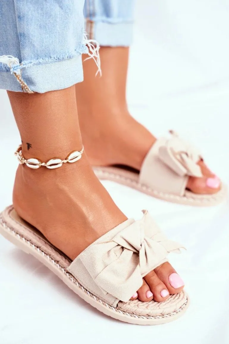 Klapki Damskie Z Kokardką Beżowe Happiness