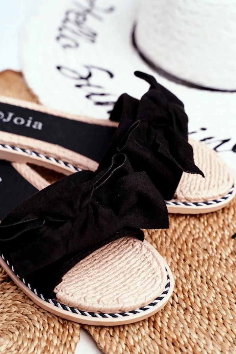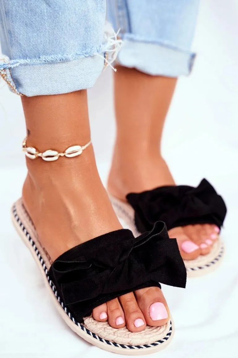 Klapki Damskie Z Kokardką Czarne Happiness