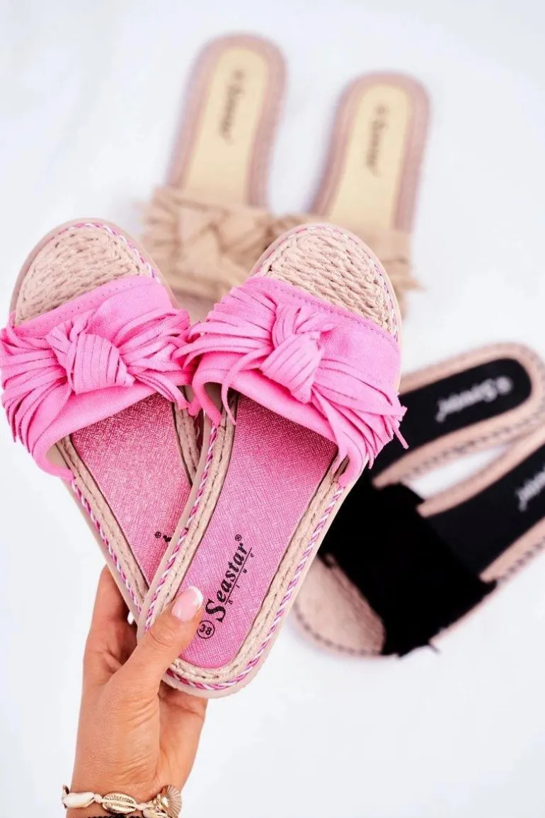 Klapki Damskie Z Kokardką Fuksja Neon Thailand