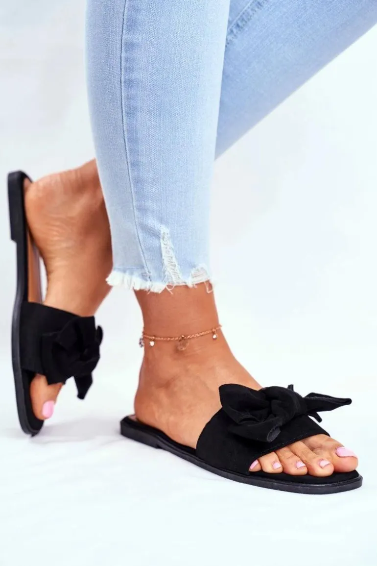Klapki Damskie Z Kokardkami Czarne Malaysia