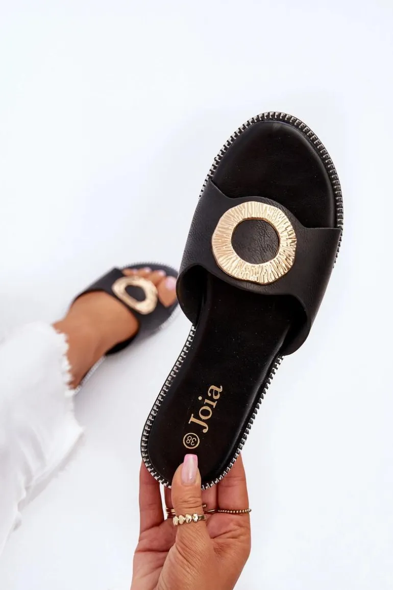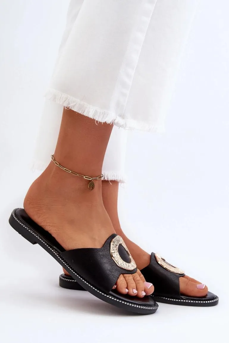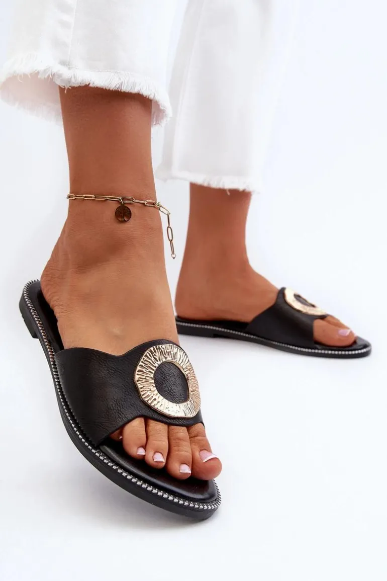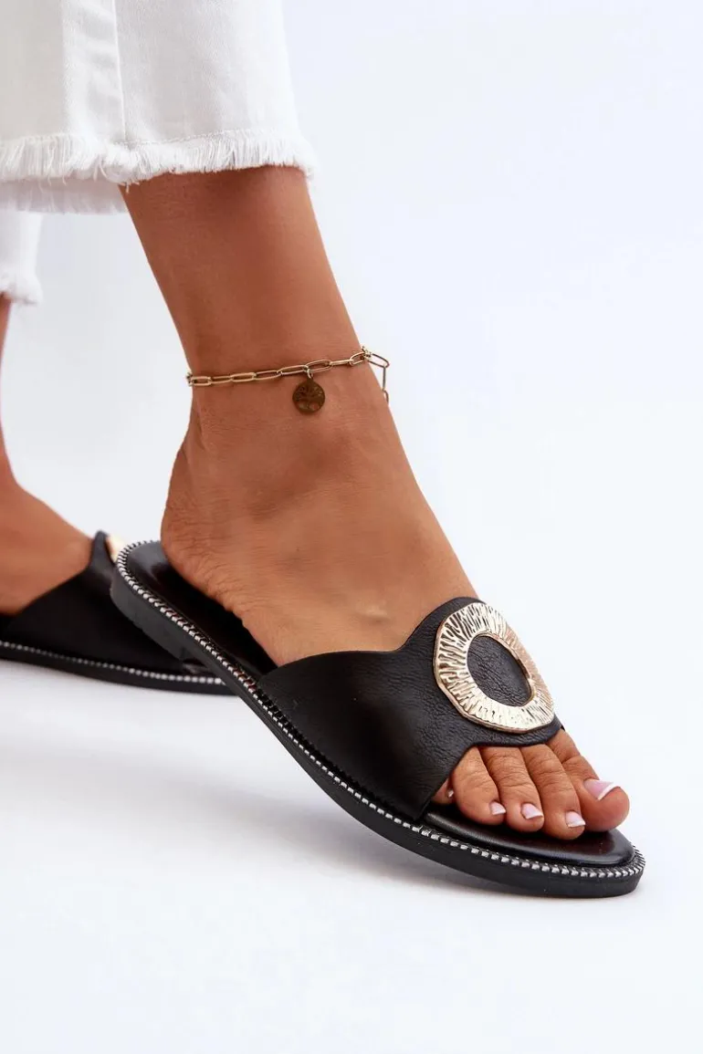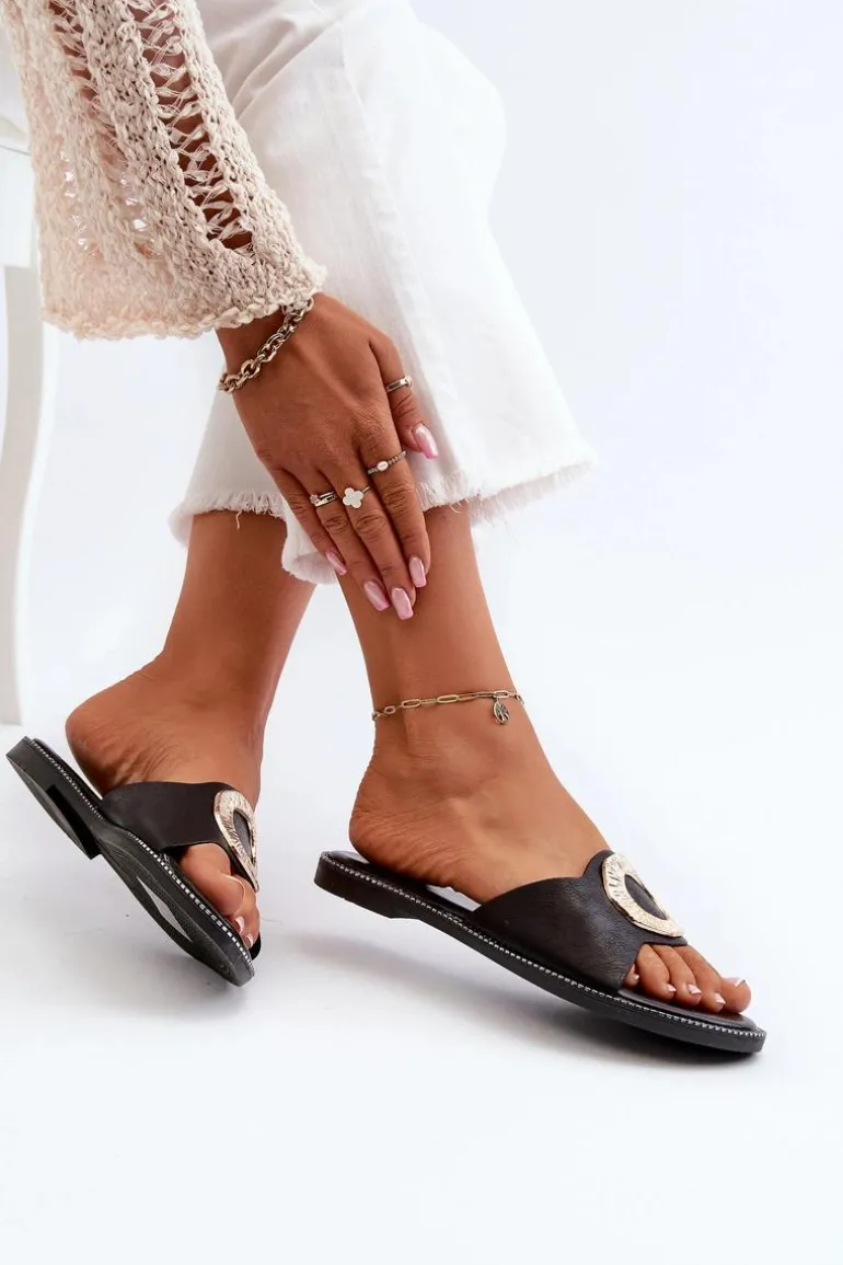 Klapki Damskie Z Ozdobą Czarne Cilima