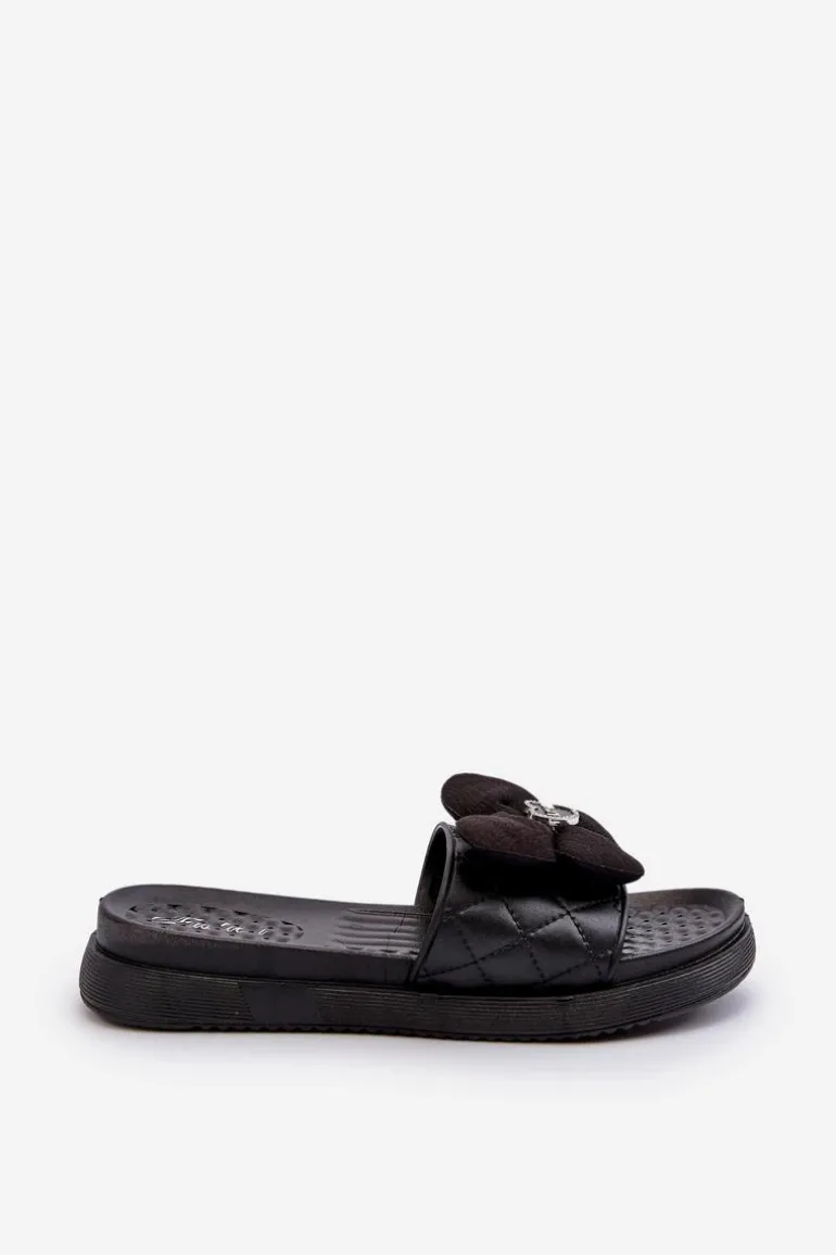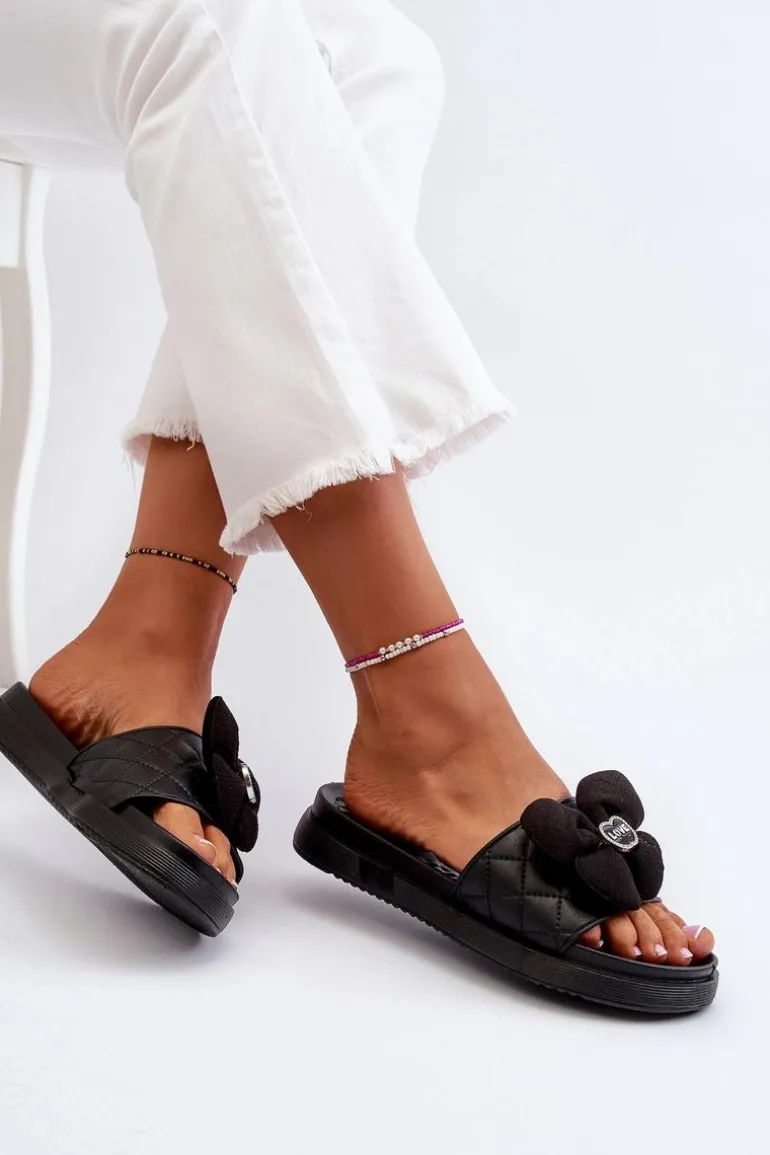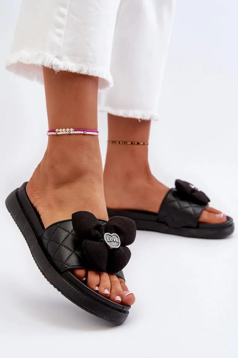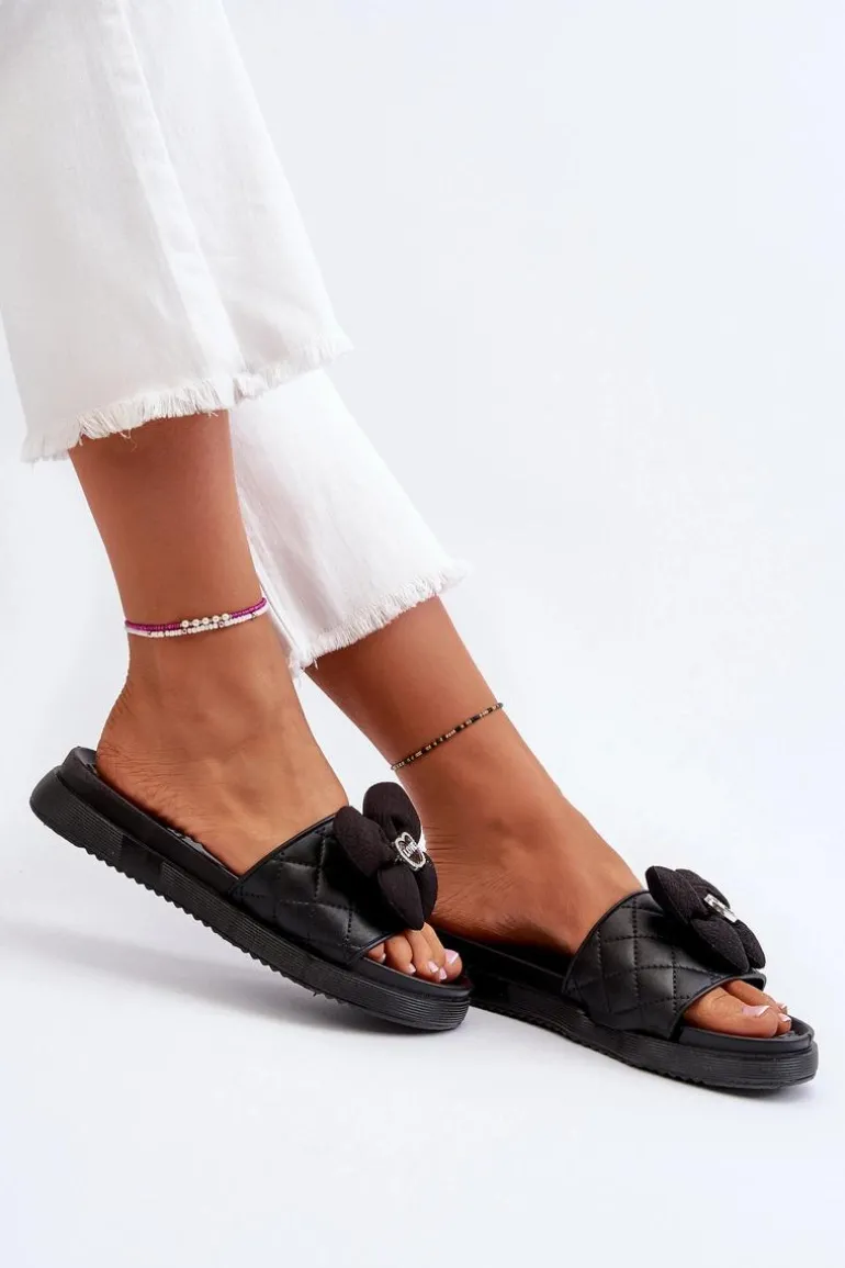 Klapki Damskie Z Ozdobą Na Niskiej Platformie Czarne Cedrella
