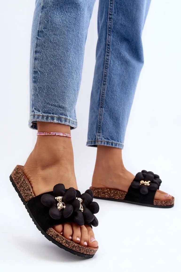 Klasyczne damskie klapki osadzone na masywnej, korkowej platformie. Z przodu ozdoby. Lekko profilowana wkładka jest wygodna w użytkowaniu nawet przez cały dzień. Nie czekaj dłużej i kup już dziś! Koniecznie powinnaś je mieć! Przy wyborze rozmiaru prosimy sugerować się tabelą rozmiarów.